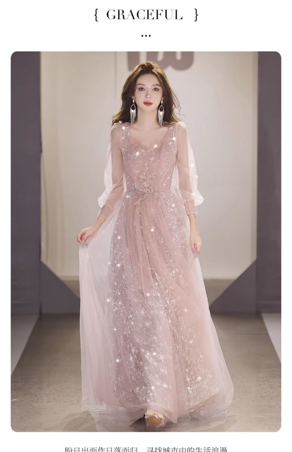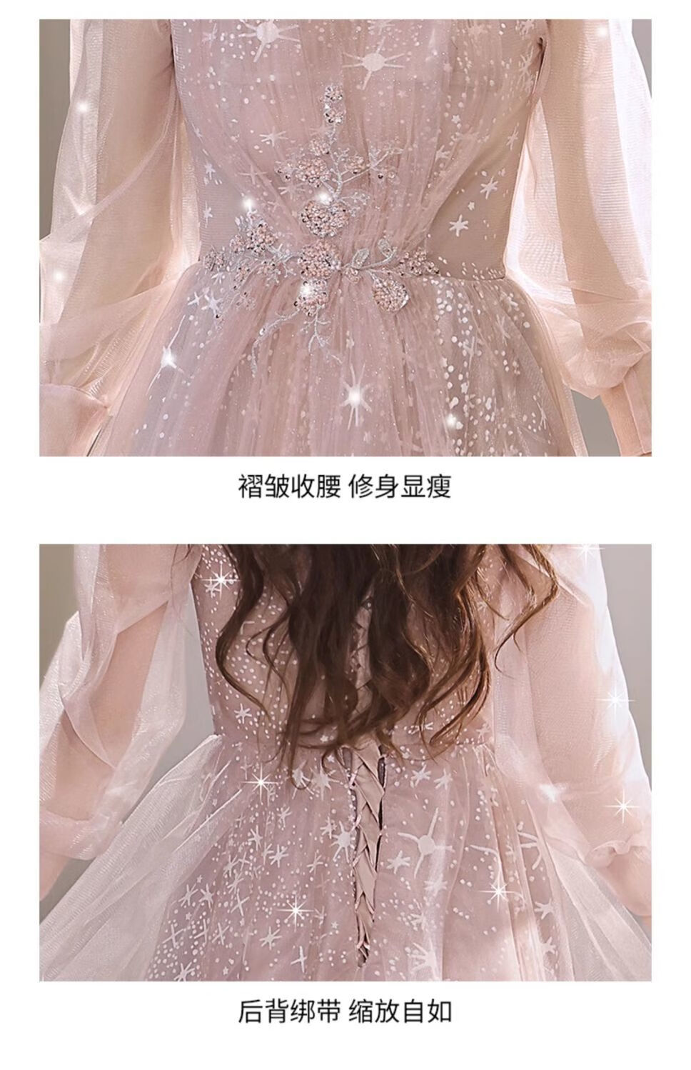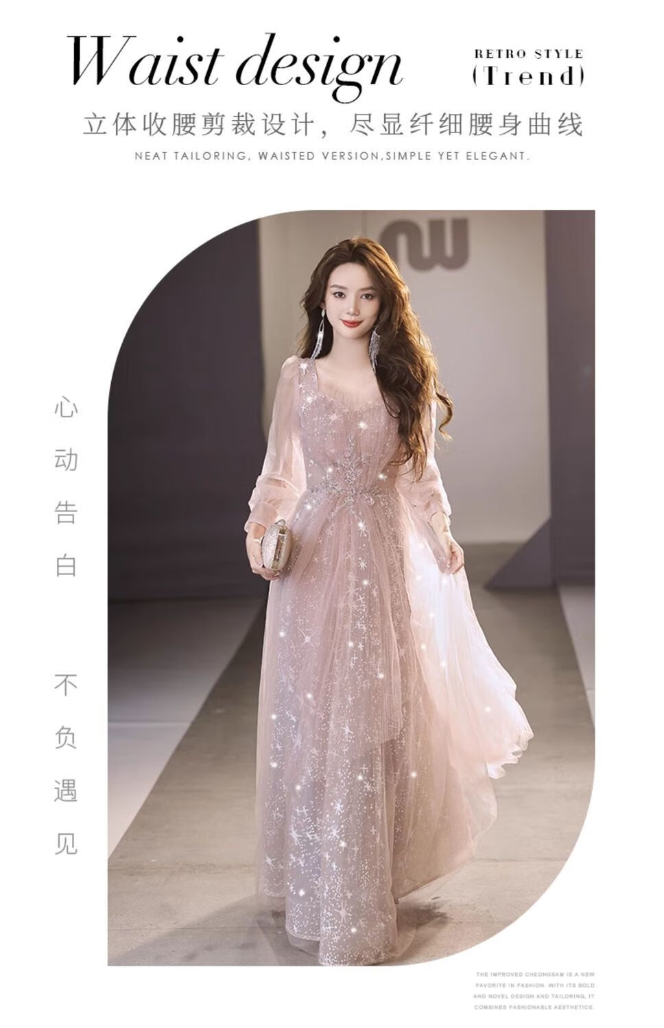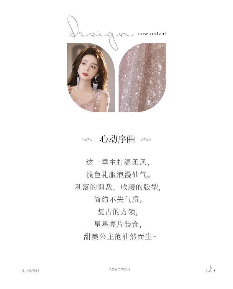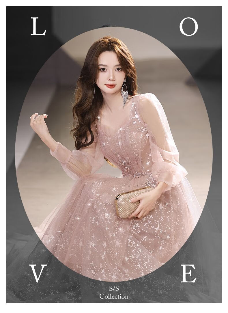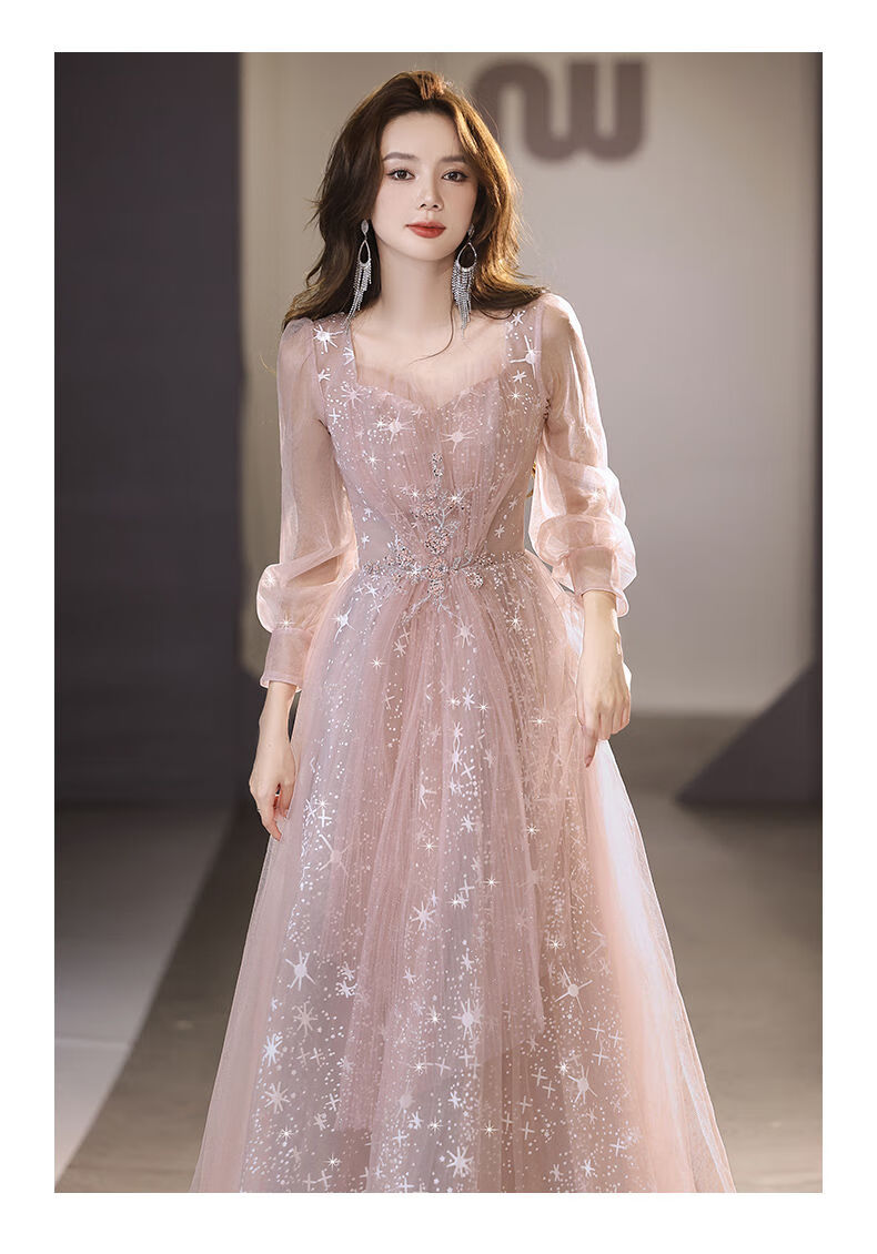 Lingka Qi Banquet Evening Dress Women's Evening Dress Women's Banquet Light Luxury Niche High-end High-end Pink Hosting Annual Meeting Vocal Art Pink Long XL