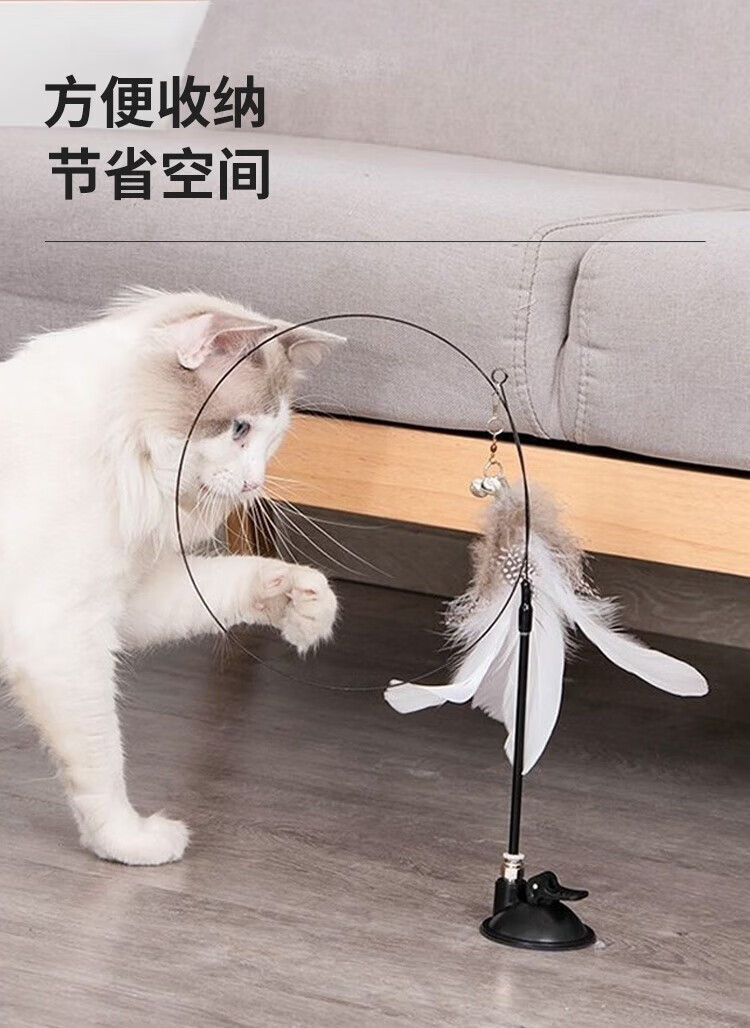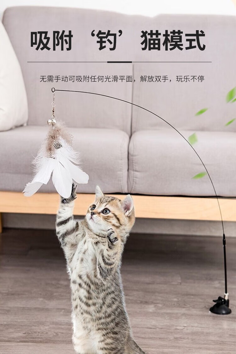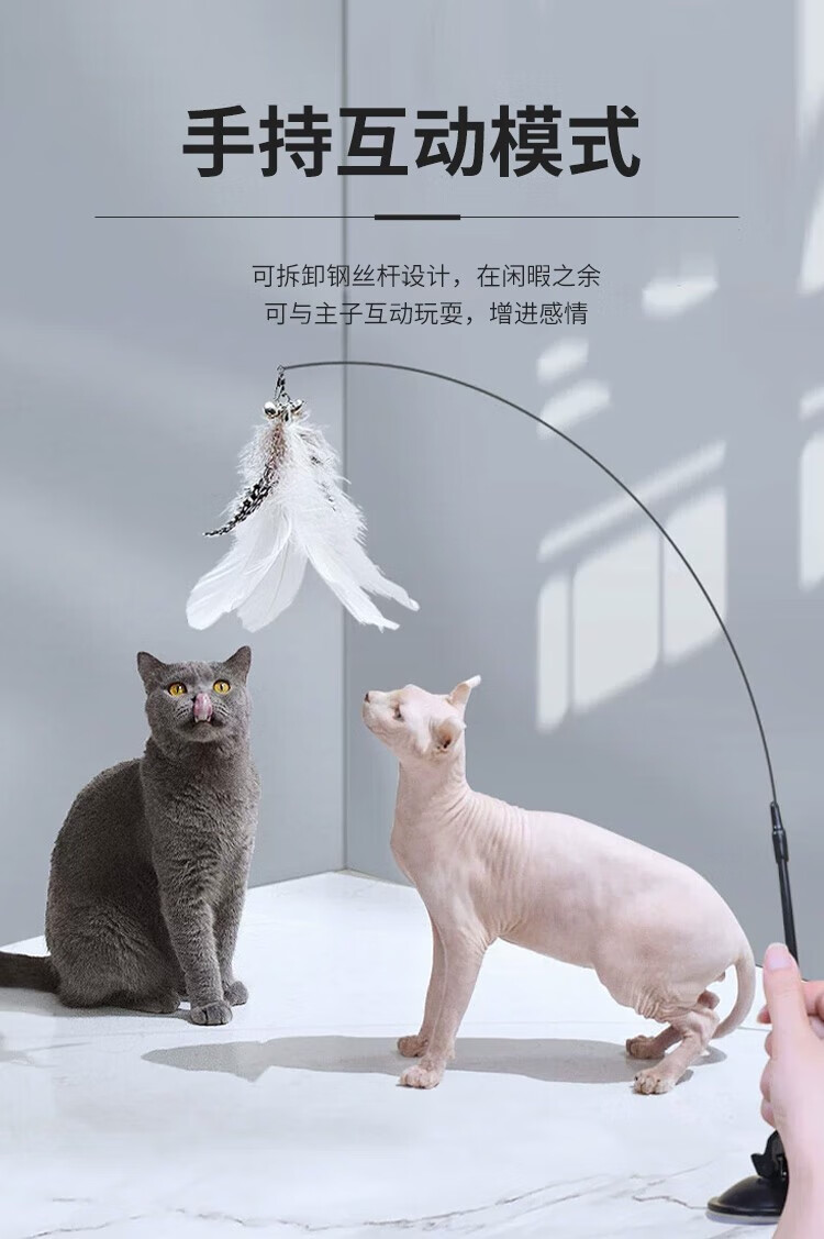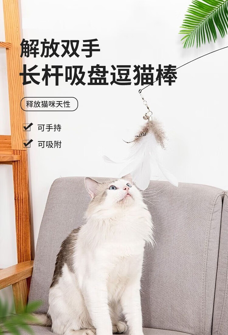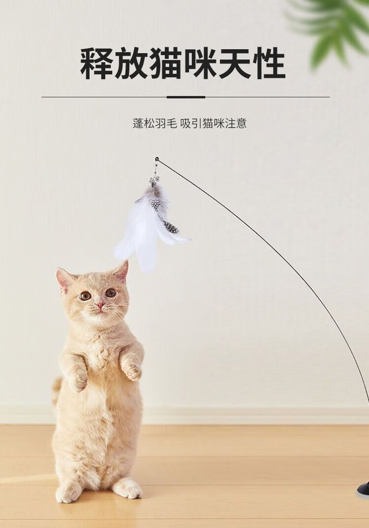 Forest Bird Cat Toy Cat Teasing Stick for Lazy People Automatic Cat Teasing with Bell Feather Suction Cup Cat Self-Happiness and Relief from Boredom White Set Upgraded Powerful Suction Cup