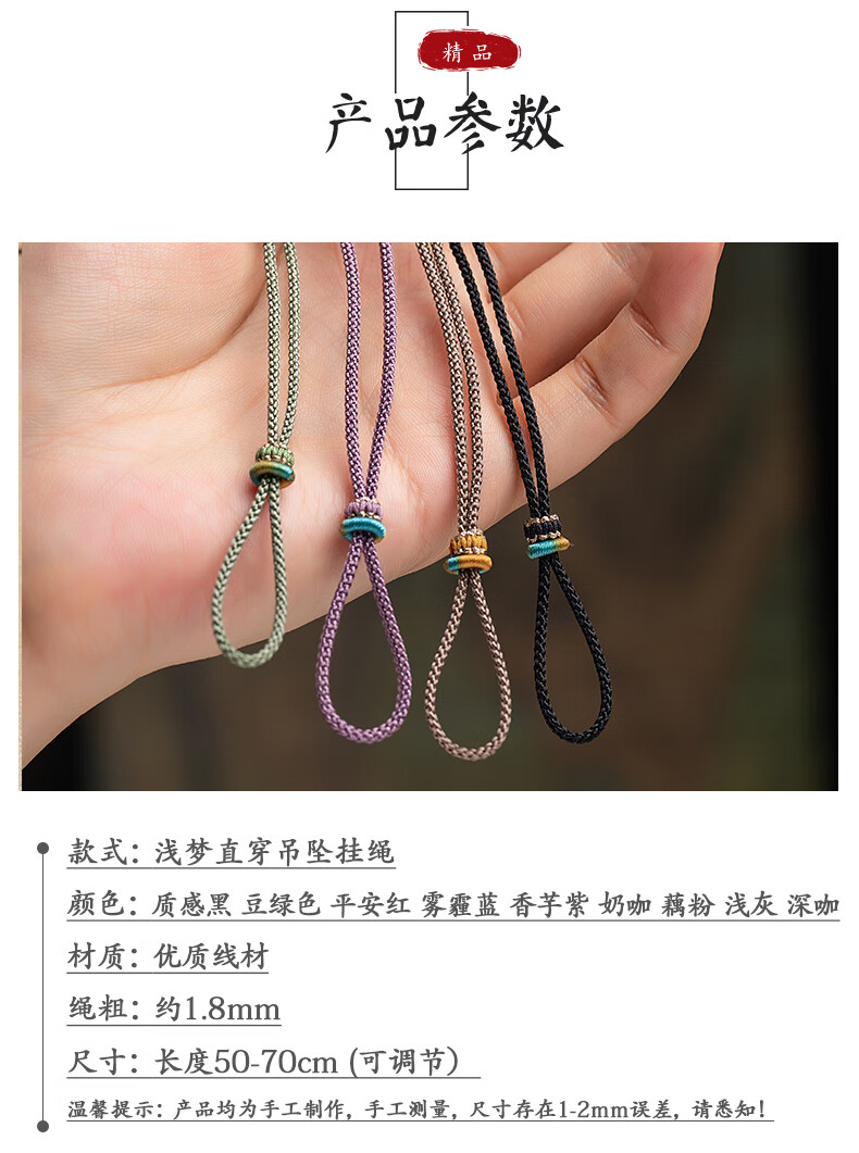 Yikai semi-finished pendant lanyard, special rope, jade pendant, beeswax necklace rope, men's and women's pendant rope, hand-woven rope, dark coffee color, about 1.8 mm thick