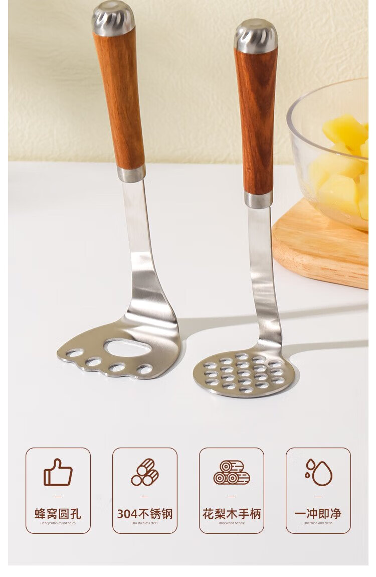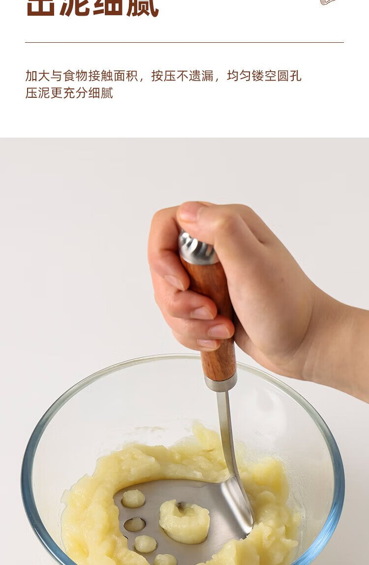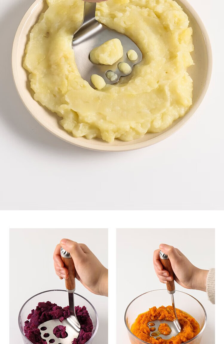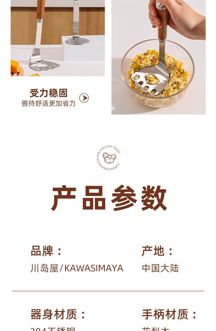 Kawashimaya mashed potato masher, household baby food supplement tool, masher spoon, mashed potato masher, 304 stainless steel masher (round)