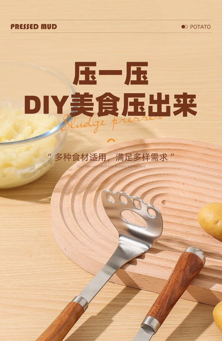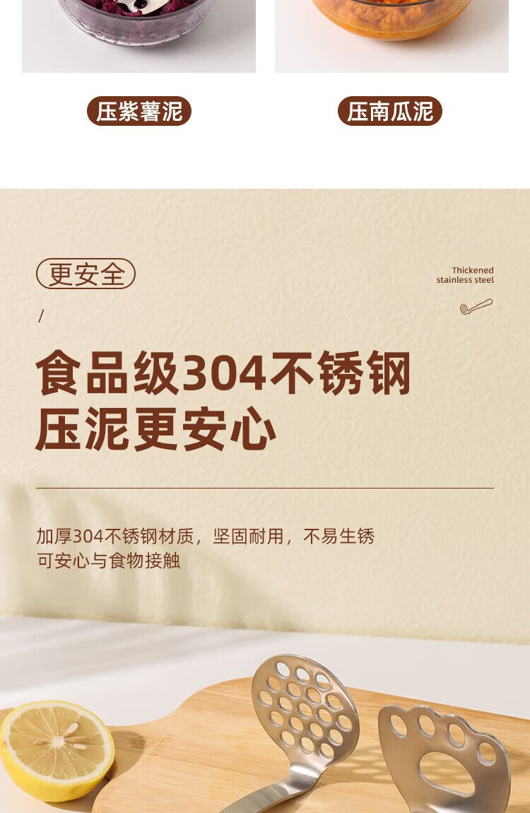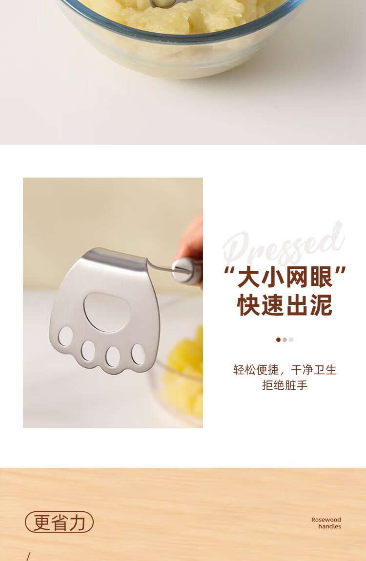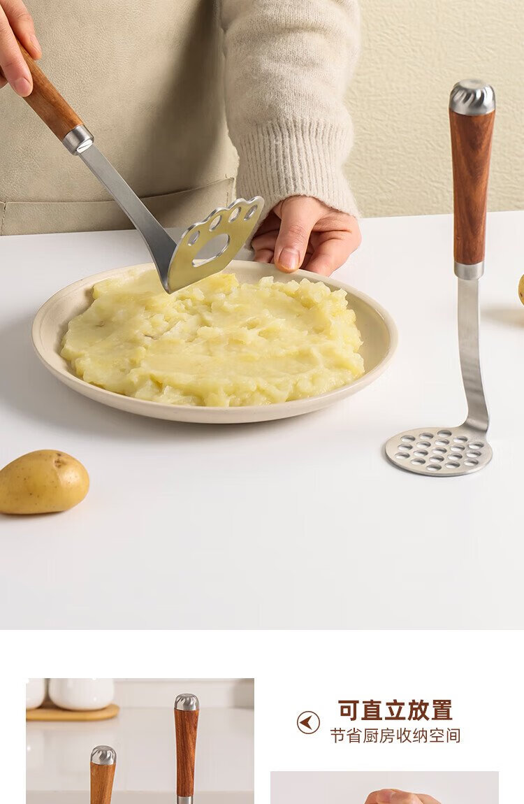 Kawashimaya mashed potato masher, household baby food supplement tool, masher spoon, mashed potato masher, 304 stainless steel masher (round)