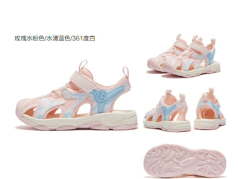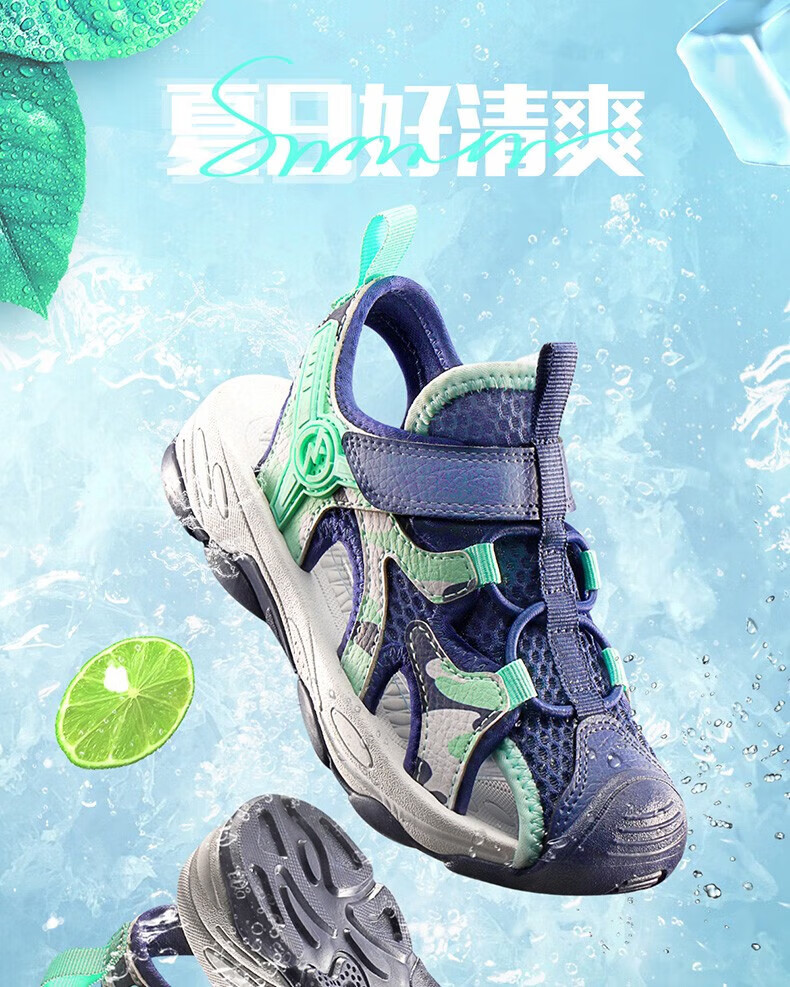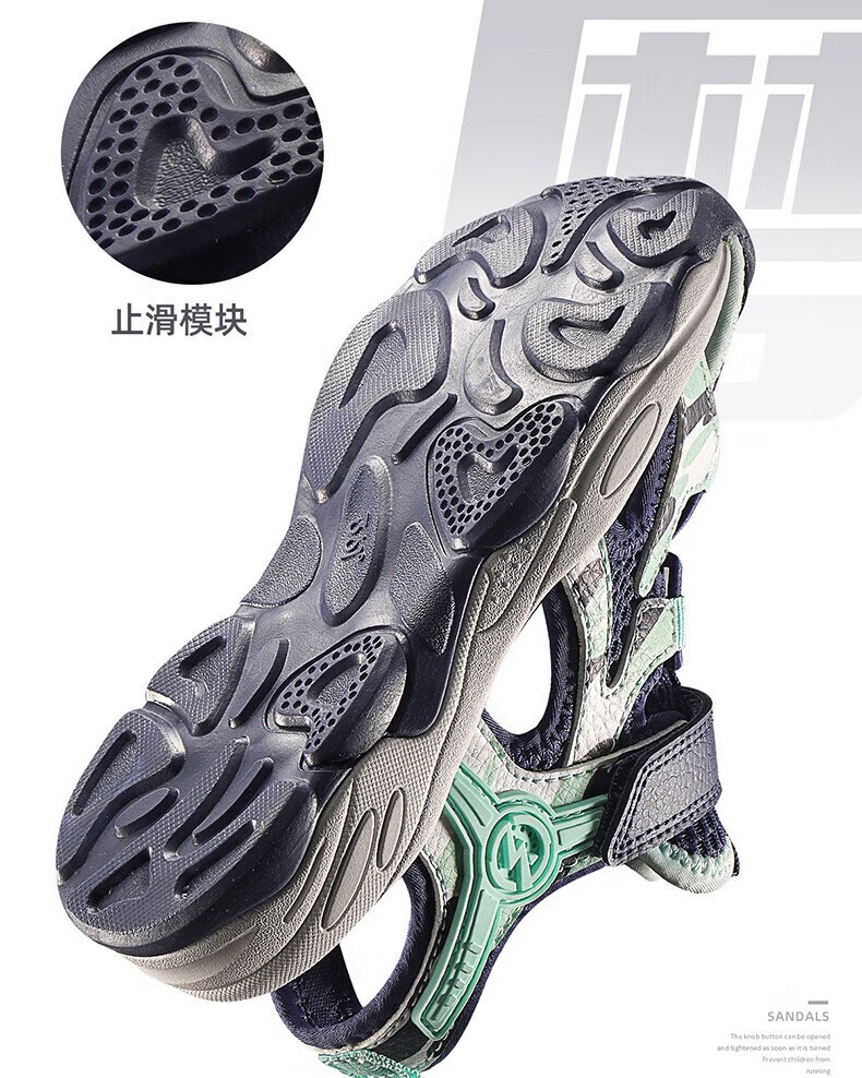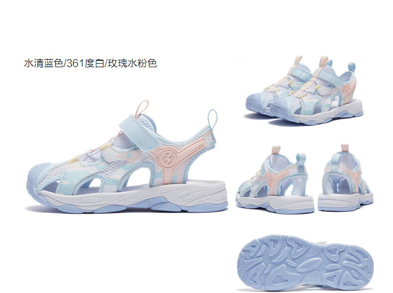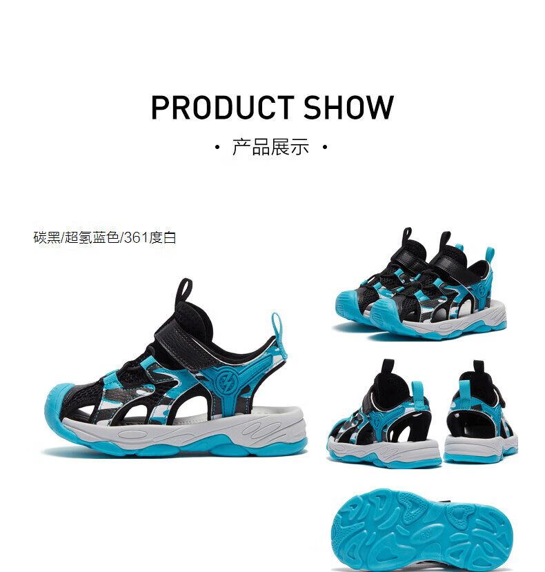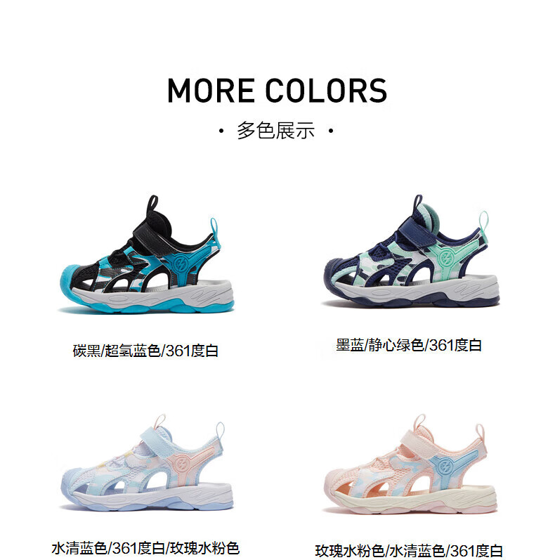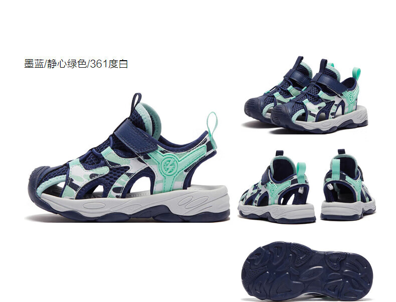 361 Children's toe-cap sandals 2026 summer new style breathable non-slip beach sandals for boys and girls, medium and large children's sports shoes dark blue/meditation green/361 degrees white 36