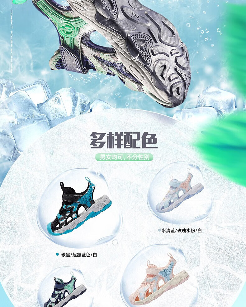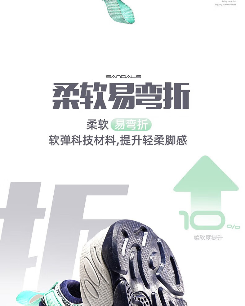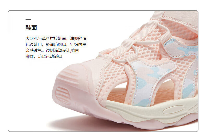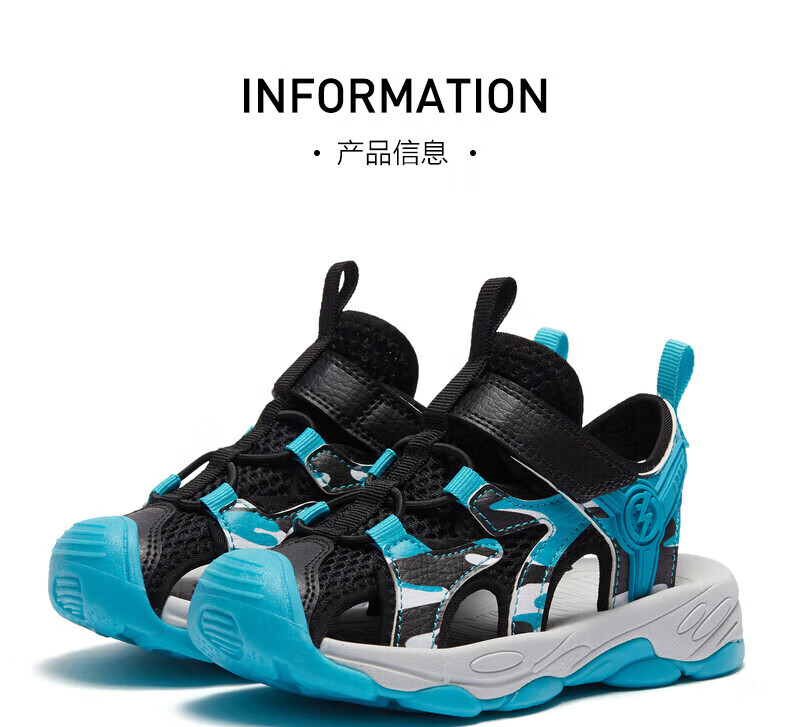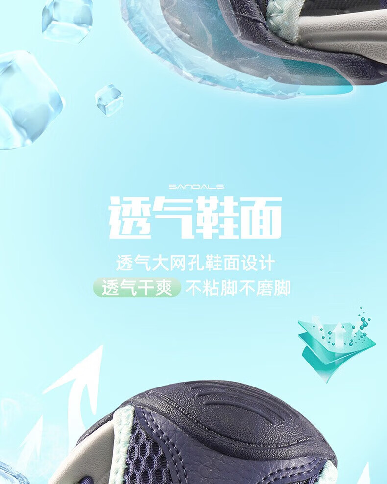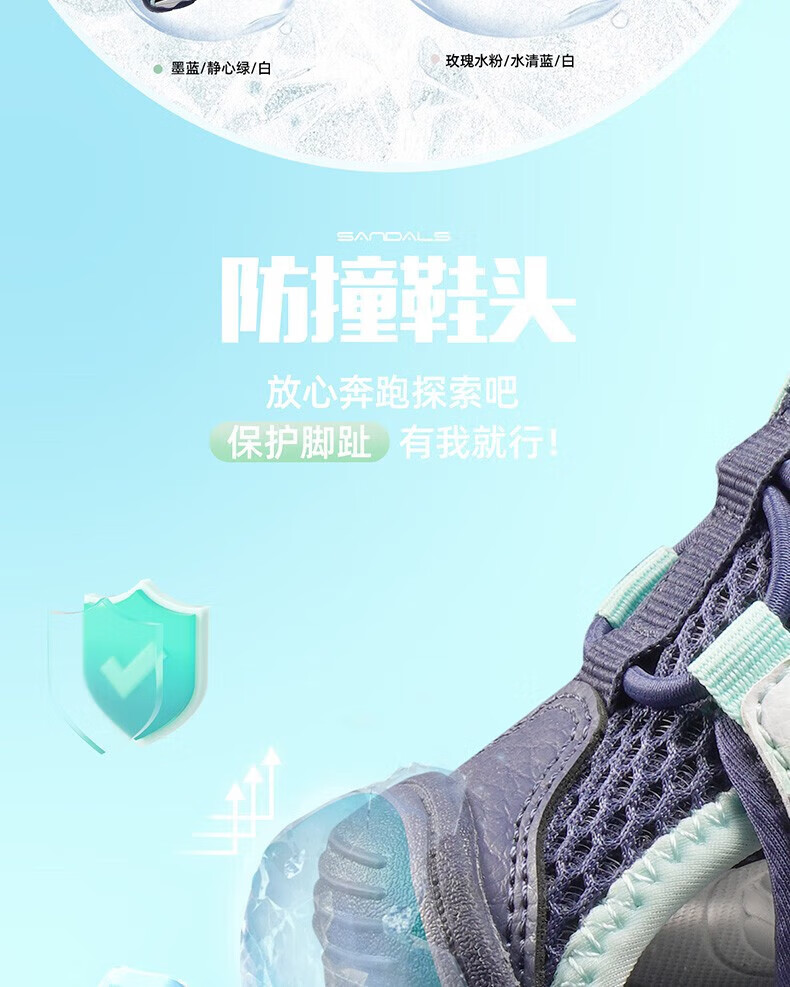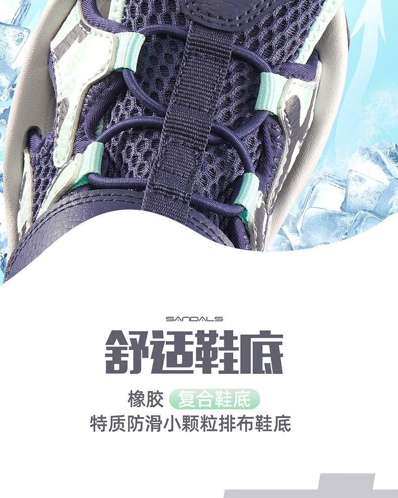 361 Children's toe-cap sandals 2026 summer new style breathable non-slip beach sandals for boys and girls, medium and large children's sports shoes dark blue/meditation green/361 degrees white 36