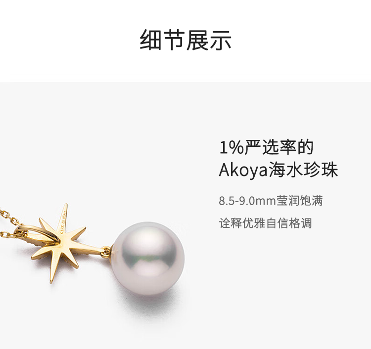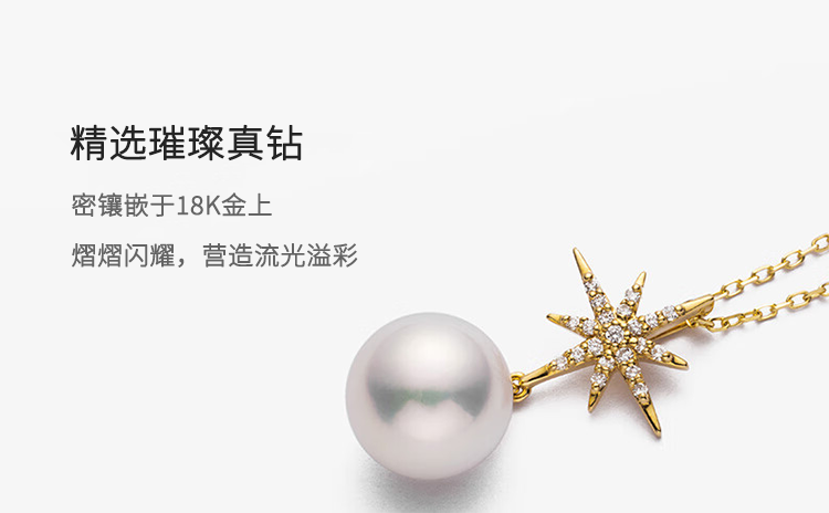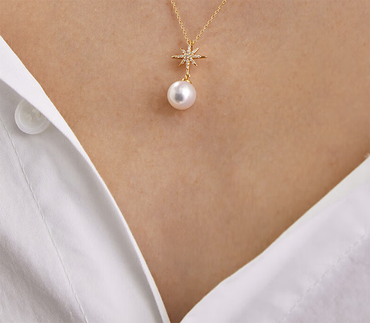 Gold rainbow 18K gold Akoya seawater pearl necklace eight-pointed star necklace design diamond neck jewelry gift for girlfriend S925 silver chain 8.5-9mm