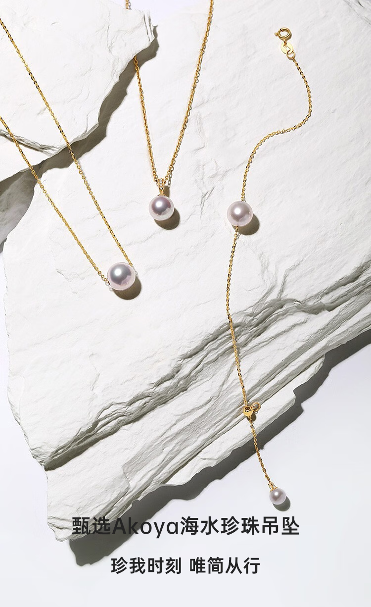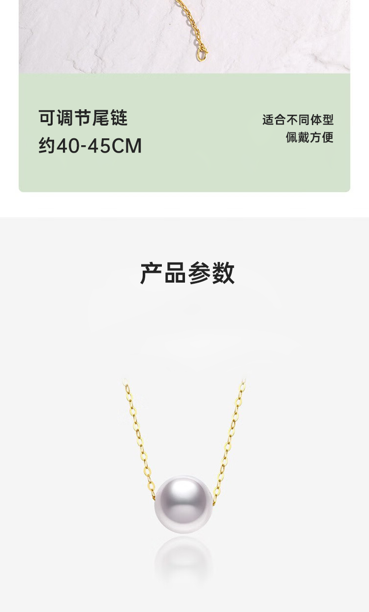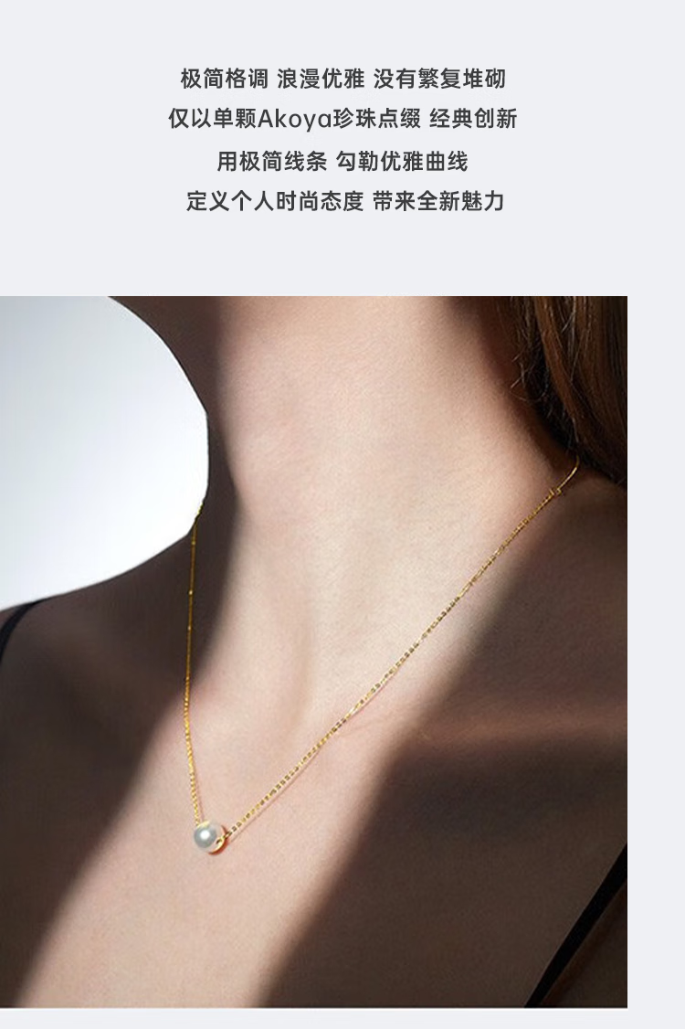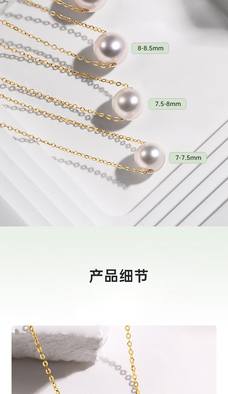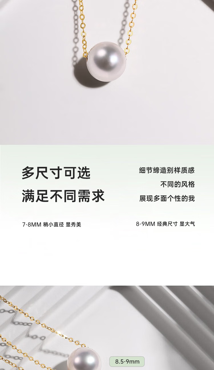 Gold Rainbow 18K Gold Akoya Seawater Pearl Necklace Pendant Single Female Passepartout Clavicle Chain 18K Gold Chain Year of the Dragon Akoya 8.5-9mm