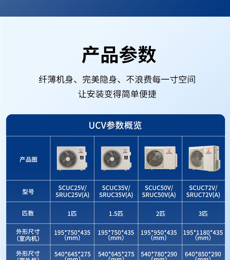 Mitsubishi Heavy Industries central air-conditioning duct machine for one household use Mitsubishi split DC variable frequency heating and cooling comfortable guest restaurant bedroom special unit machine UCV slim body series healthy wind 3 hp pre-sale shipped on February 26