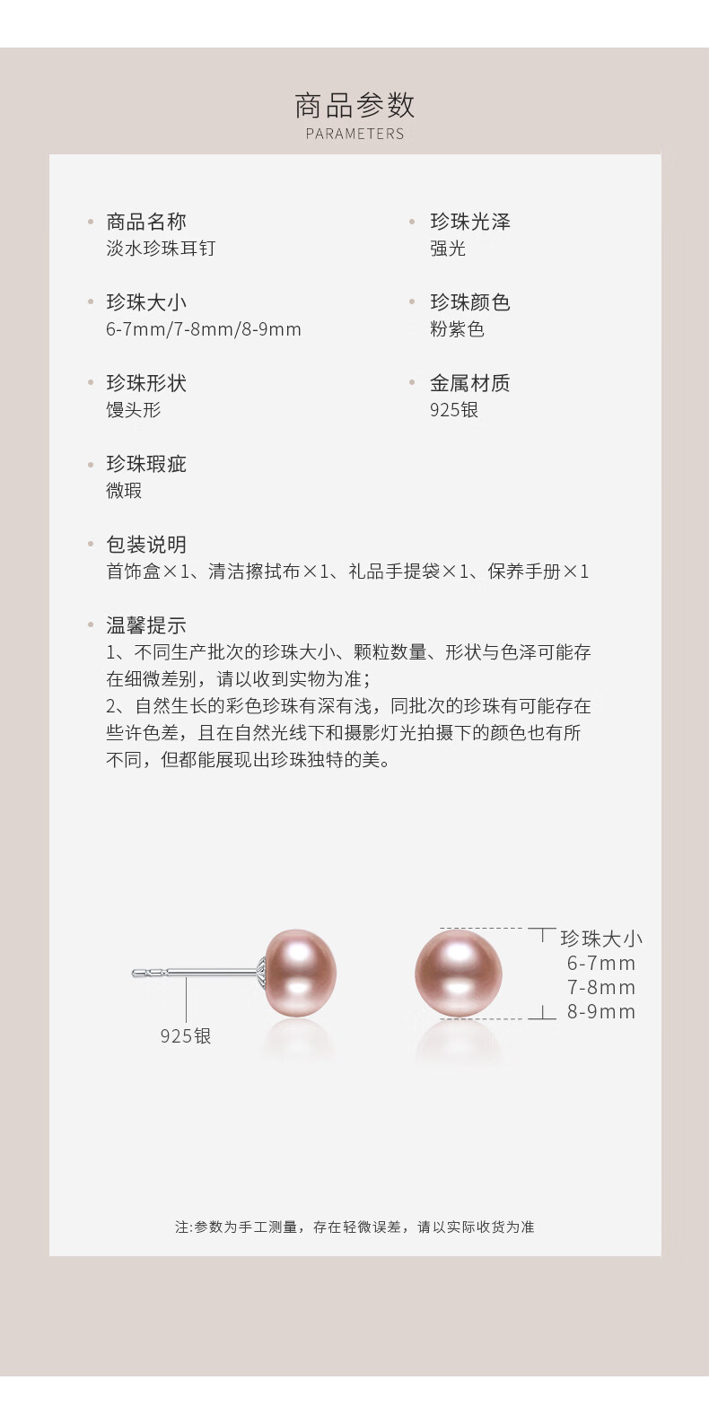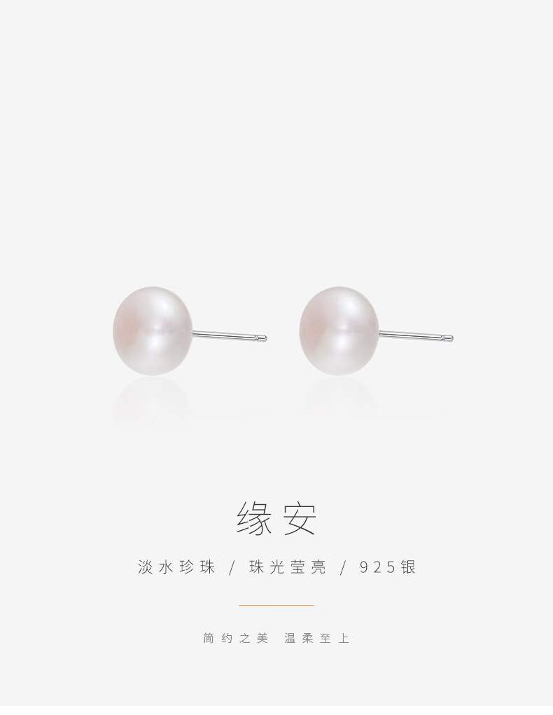 Jingrun Pearl Earrings Yuan'an 925 Silver Freshwater Pearl Earrings Basic Pearl Earrings Birthday Gift 8-9mm White
