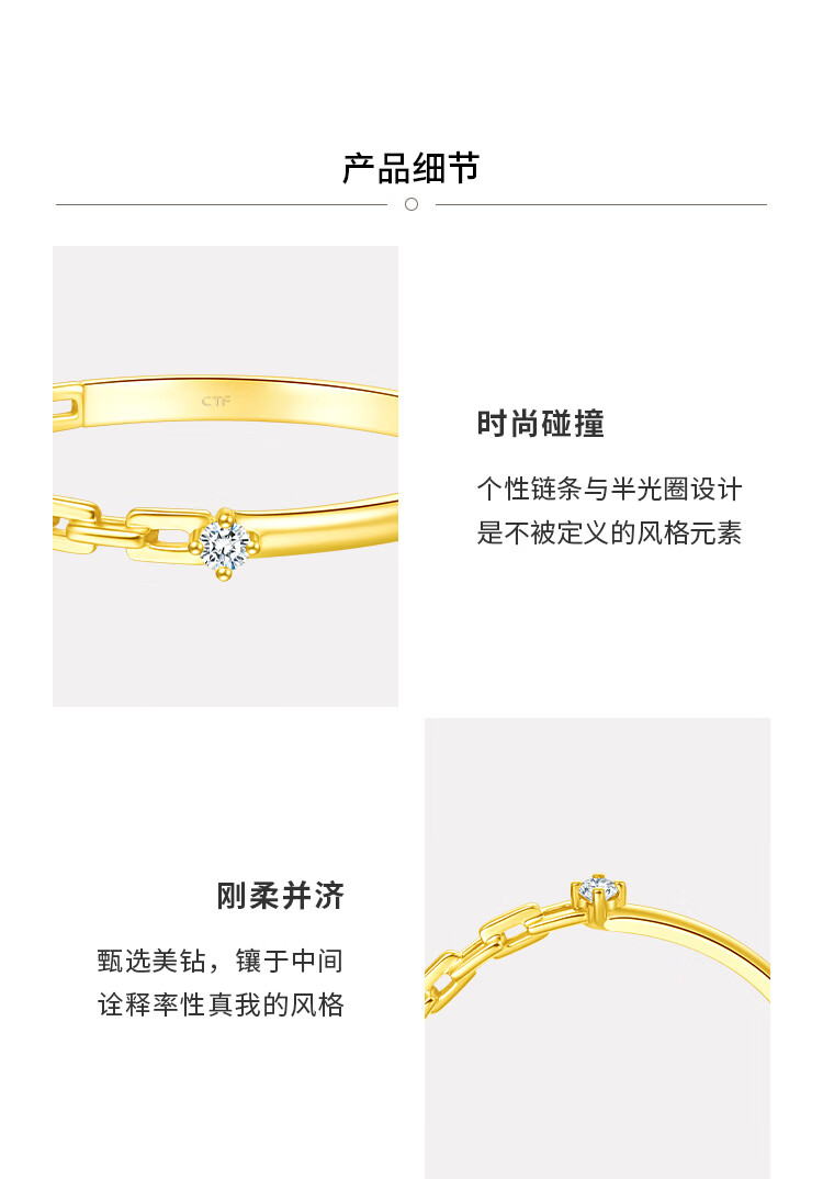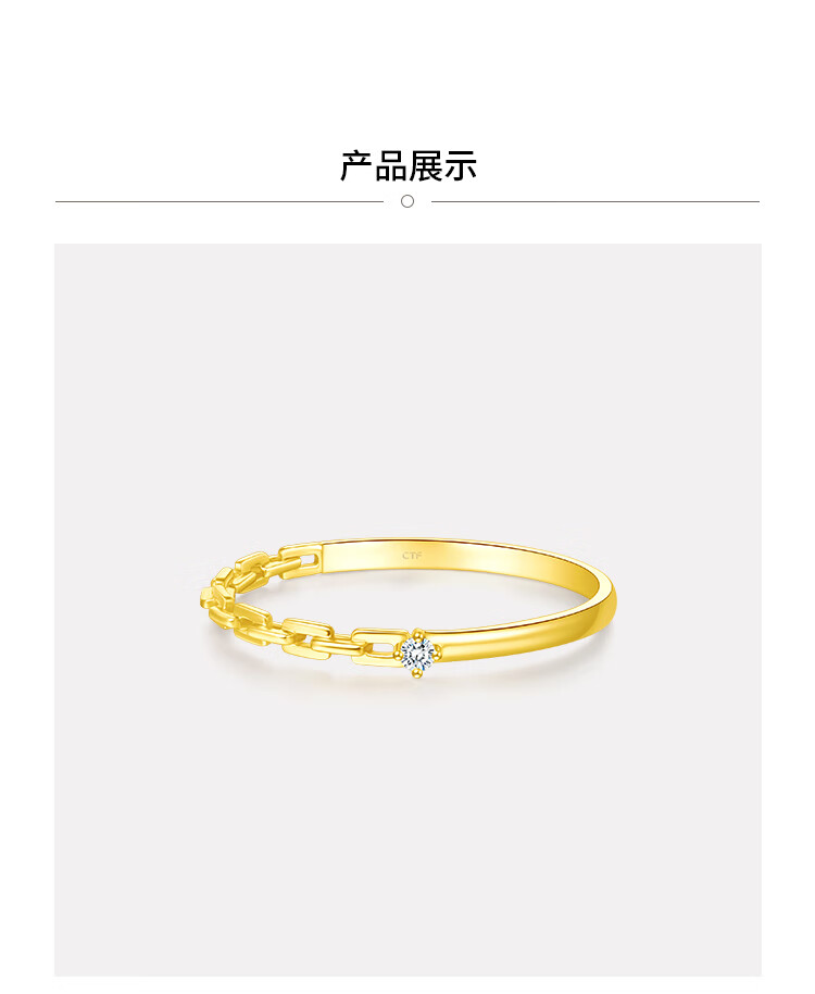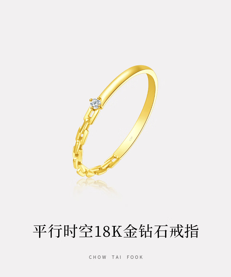 Chow Tai Fook RINGISM series parallel time and space geometric chain chain star track 18K gold inlaid diamond ring NU2635 gift No. 12