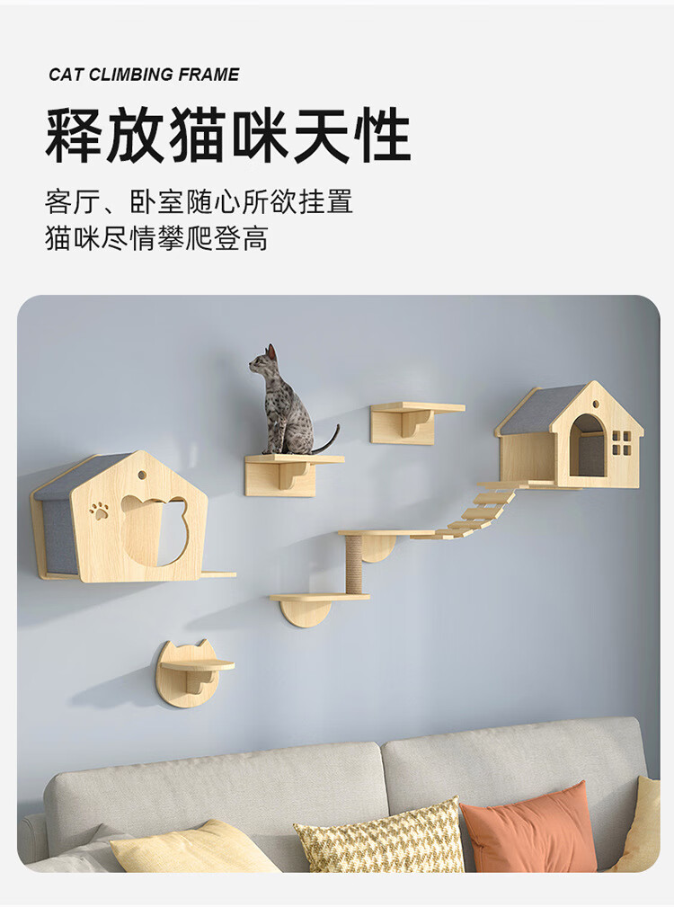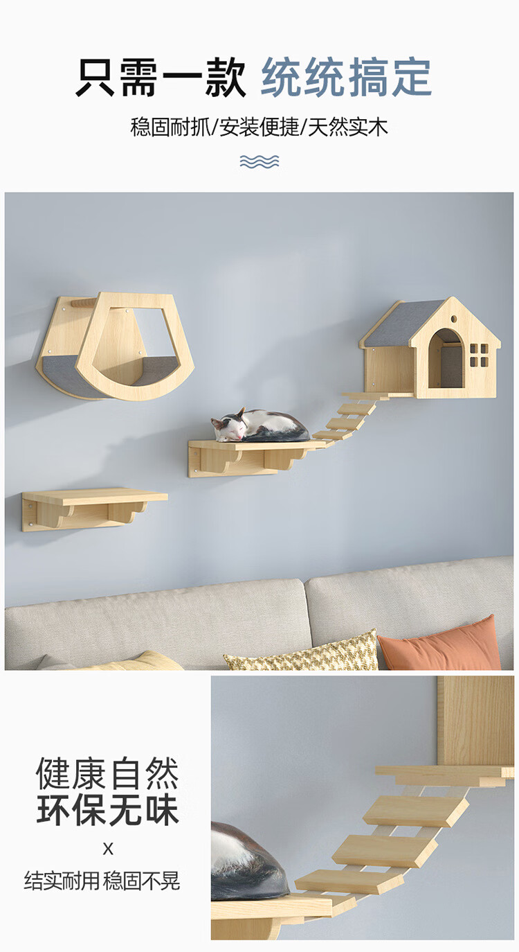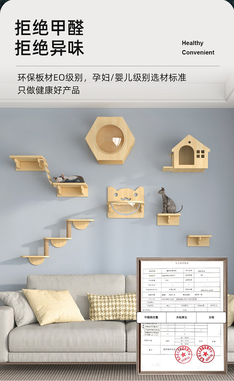 Cat climbing frame wall-mounted solid wood wall-mounted cat jumping platform cat nest space capsule DIY component 40cm 1 layer horizontal space capsule