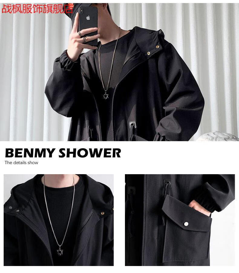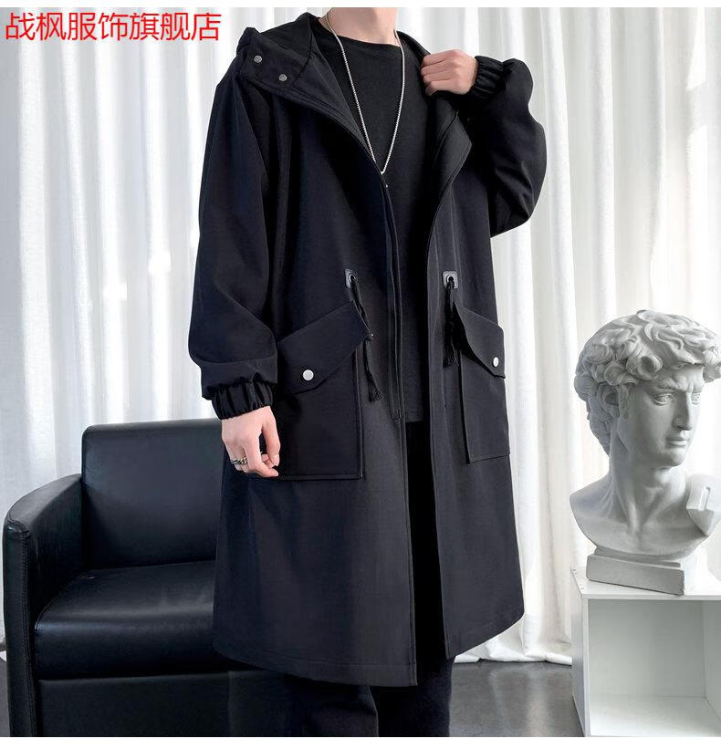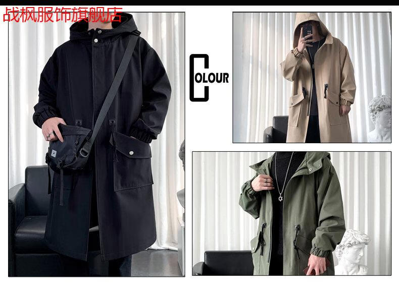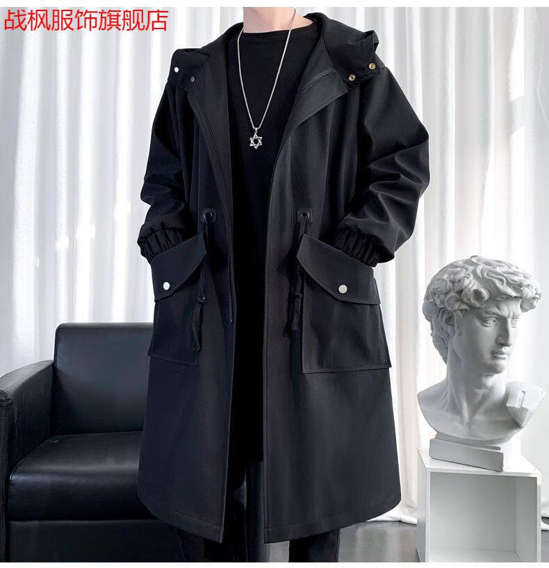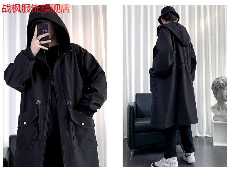 Zhanfeng (zhanfeng) Extra Large Men's Windbreaker Men's Mid-Length Autumn and Winter Trendy and Handsome British Style 300 Jin Jin equals 0.5 kg Coat Versatile Jacket Black Cotton 5XL Recommended 200-220 Jin Jin equals 0.5 kg