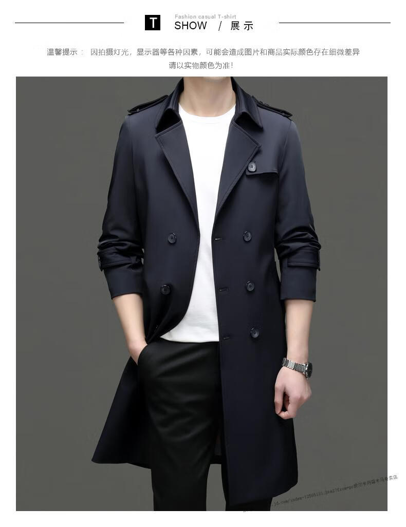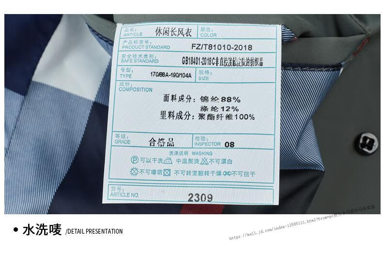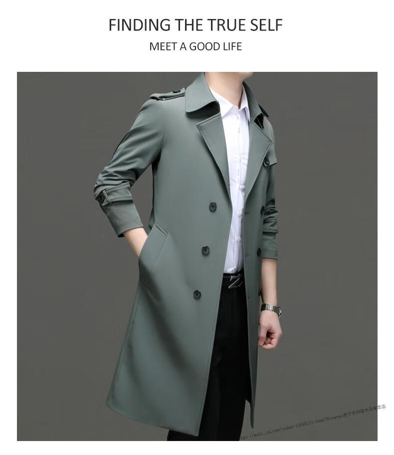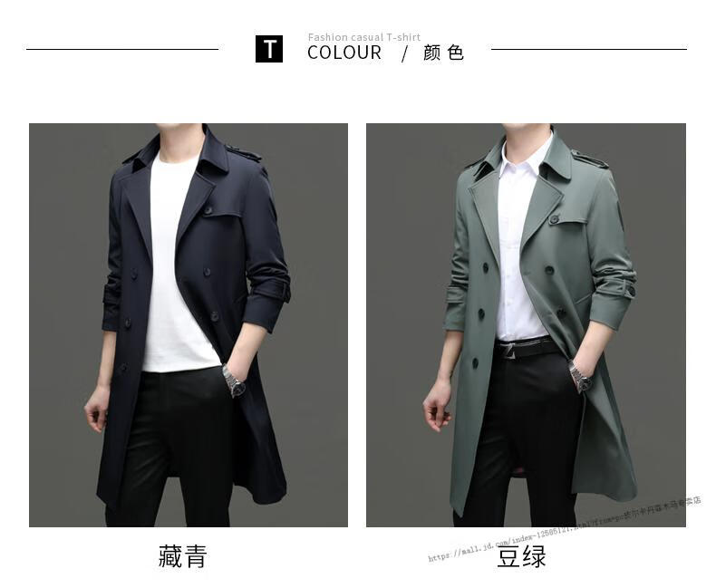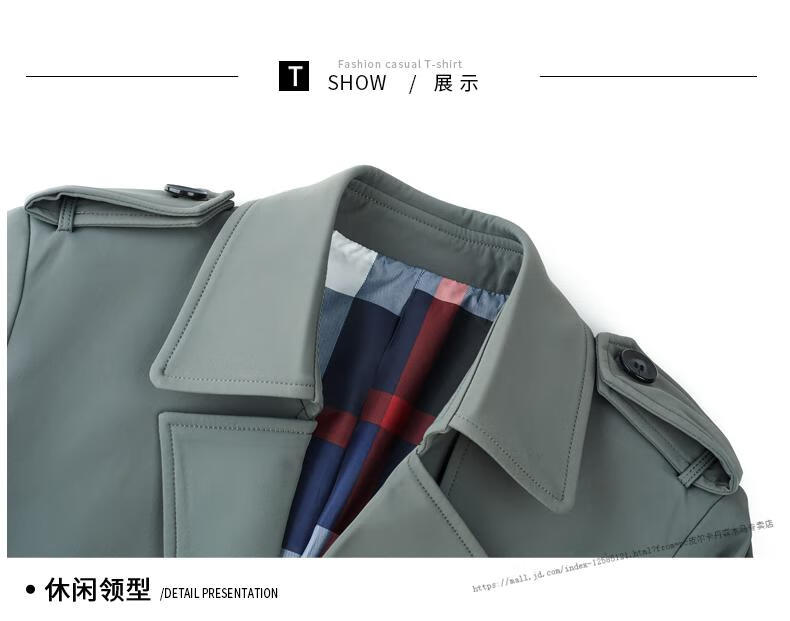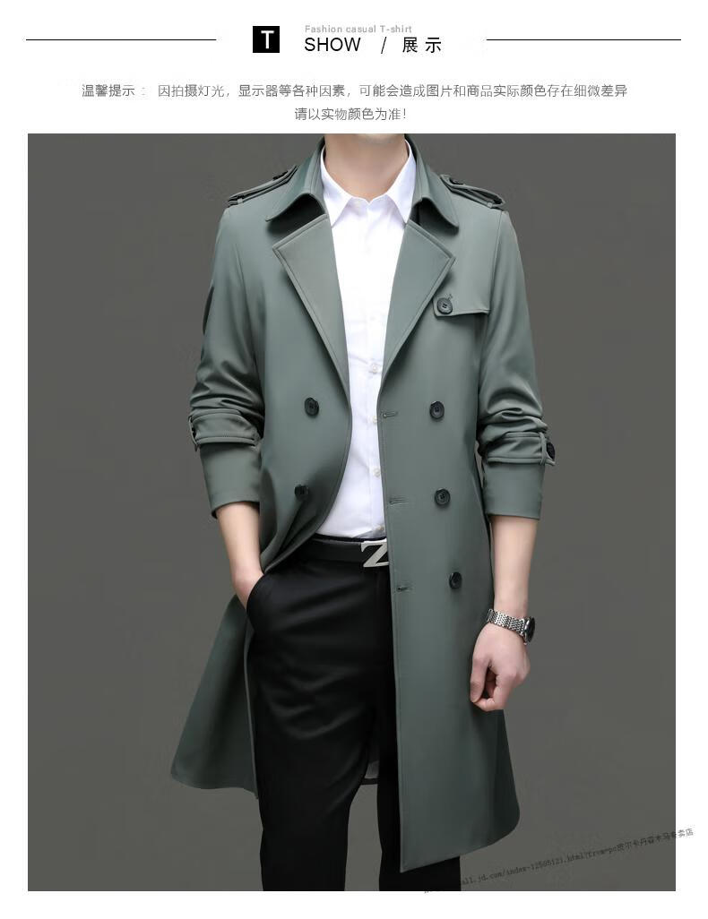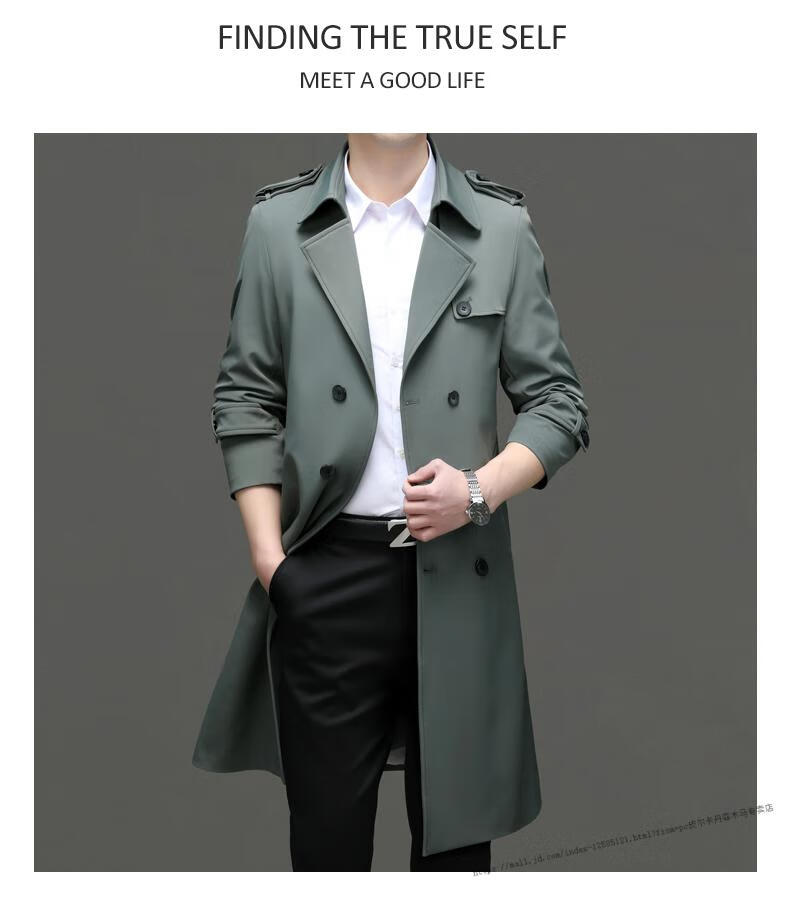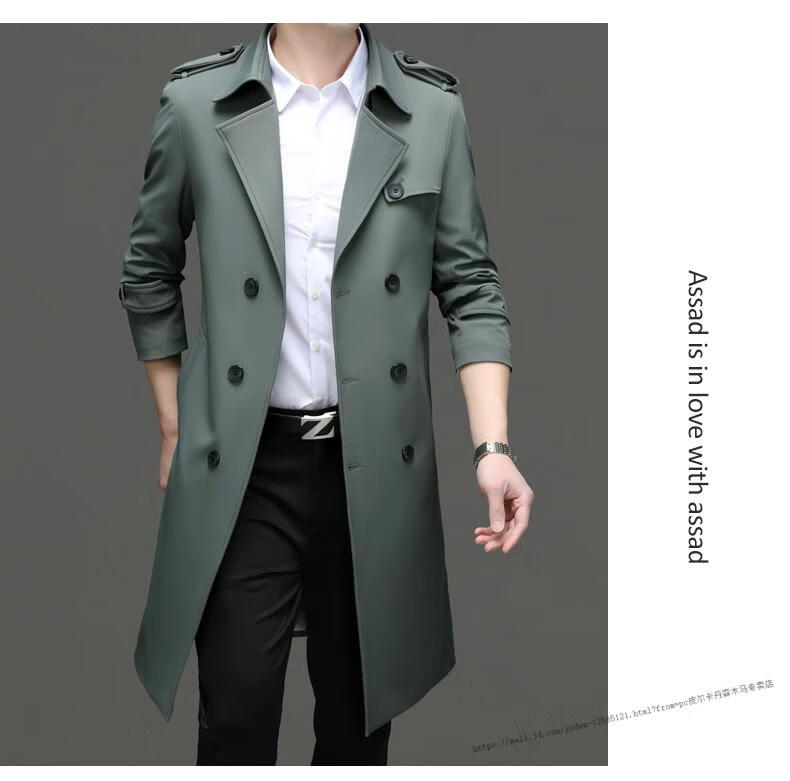 Pierre Cardin windbreaker men's long 2025 spring and autumn business casual suit collar coat British style knee-length coat men's knitted pea green XL 180 Recommendation 145-165Jin Jin equals 0.5 kg