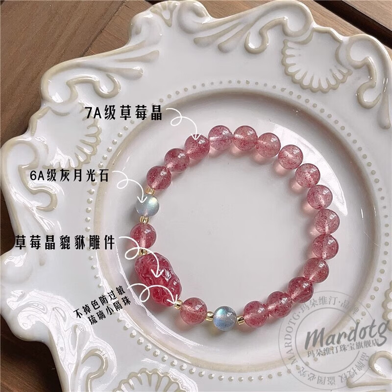 MARDOTG Strawberry Crystal Pixiu Bracelet for Women Pink Crystal Bracelet Girl Birthday Gift 8mm Bead Diameter