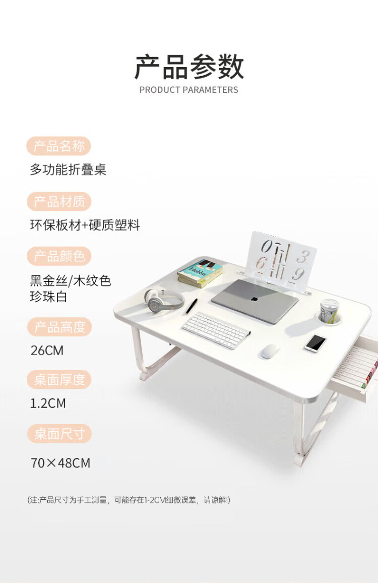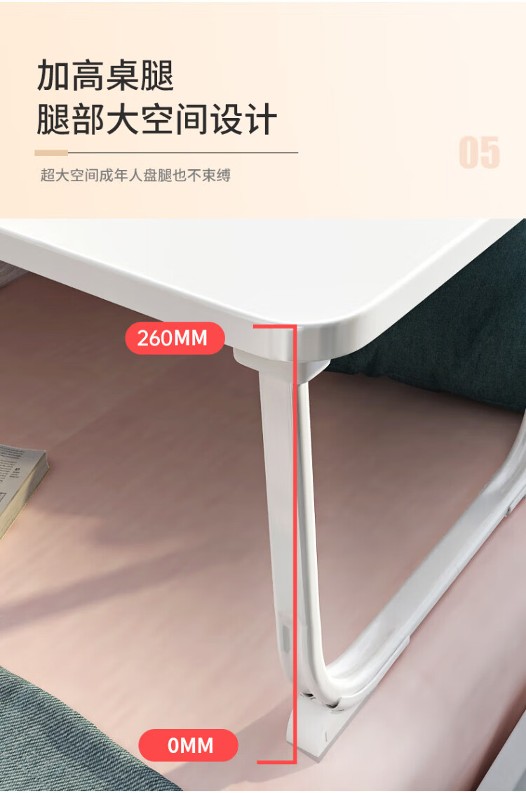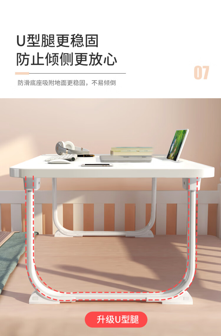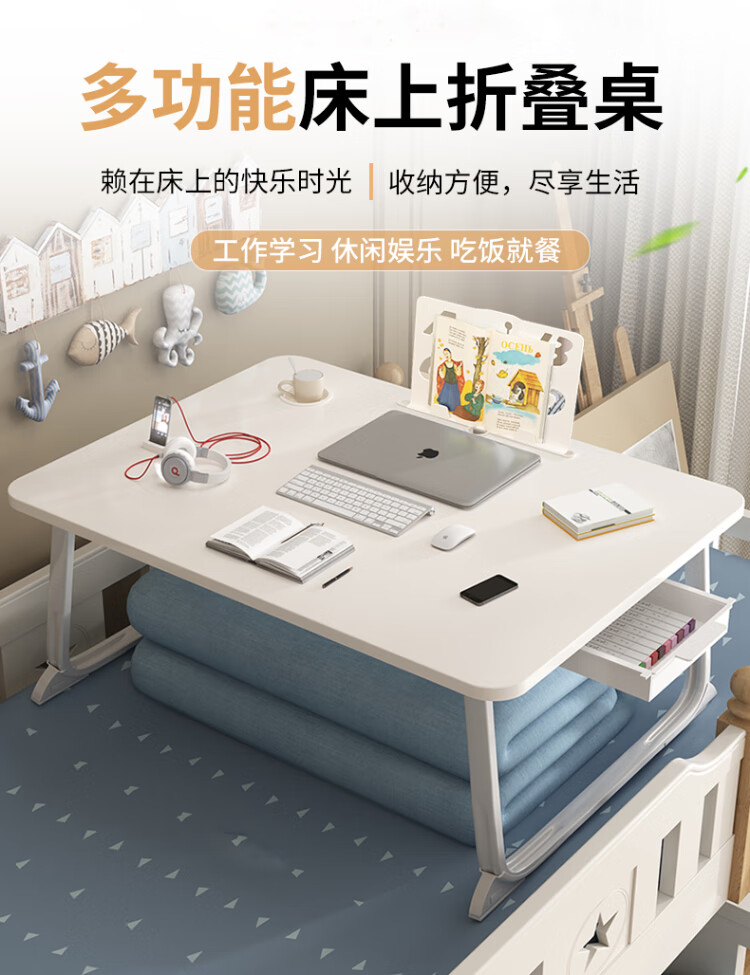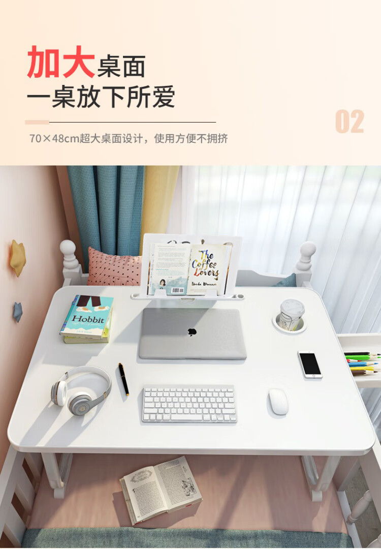 Felinsmann bed computer table bed desk large computer table foldable table bed table dormitory study table Jingsuda Aurora White - upgraded version 70*48*26CM can hold keyboard + play games