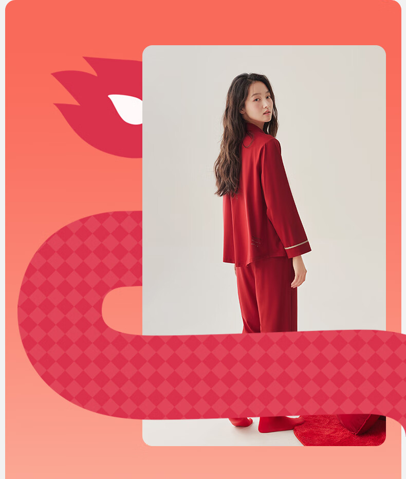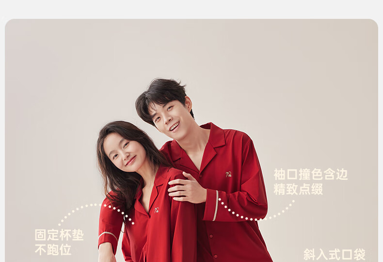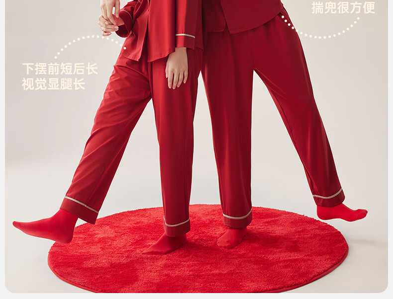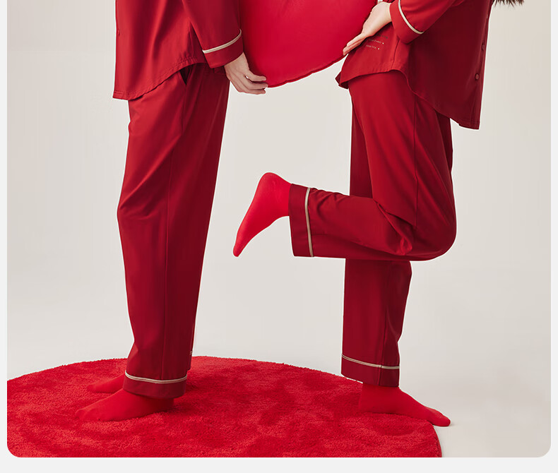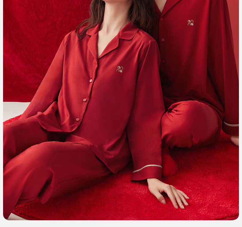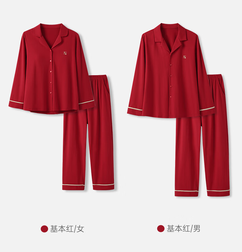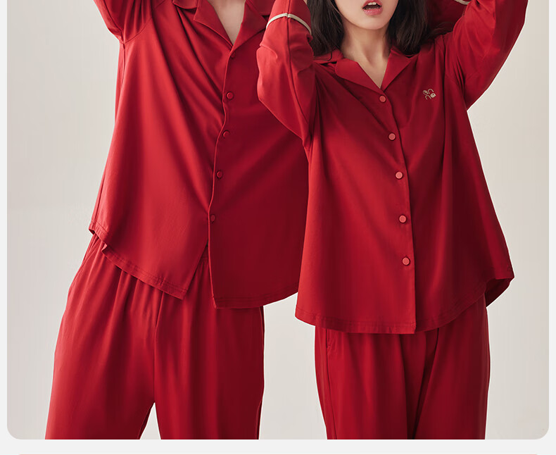 Anzhiban Year of the Snake Red Couple Pajamas Spring and Autumn Modal Long Sleeve Women's Zodiac Year Home Clothes Set with Breast Pad Female - Imperial Concubine Red (White and Breathable) Built-in Breast Pad M