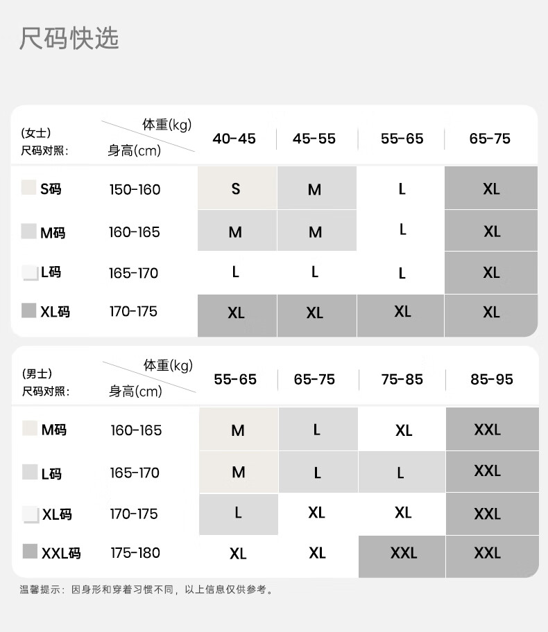 China (cm) 160-165/84-86 165-170 / 88-90 167-172 / 92-96 168-173 / 98-102 170-176 / 106-110