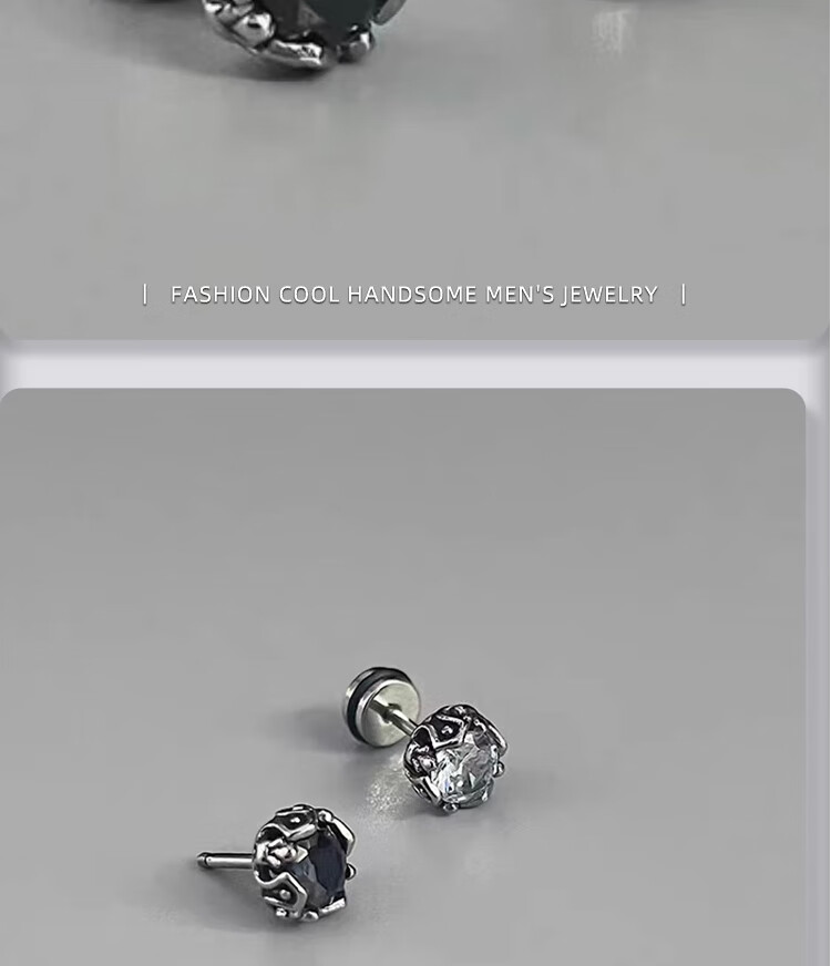Mansheng American retro earrings for men, niche simple and high-end earrings for men, trendy diamond-encrusted earrings, new style for boyfriend, single black