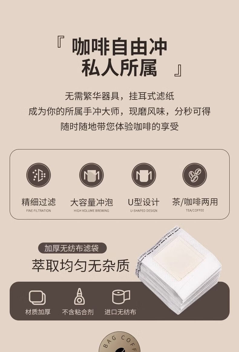 Yuexin ear-hanging coffee filter paper filter bag hand-brewed coffee powder filter drip-type portable V-shaped disposable filter bag upgraded ear-hanging type 50 pieces