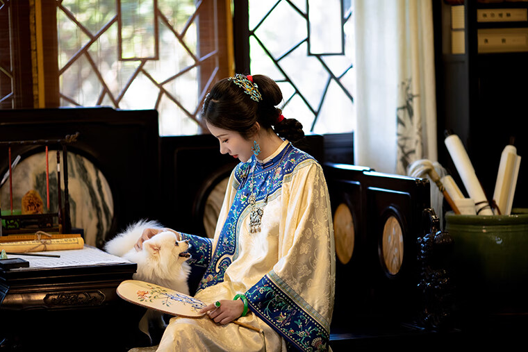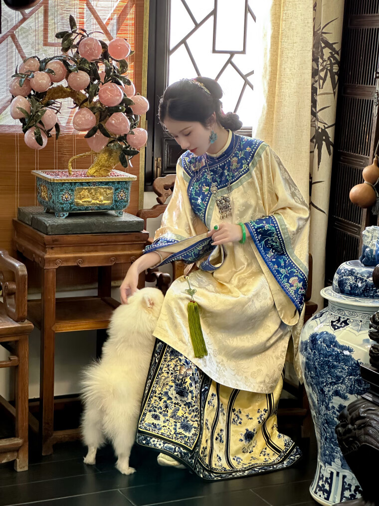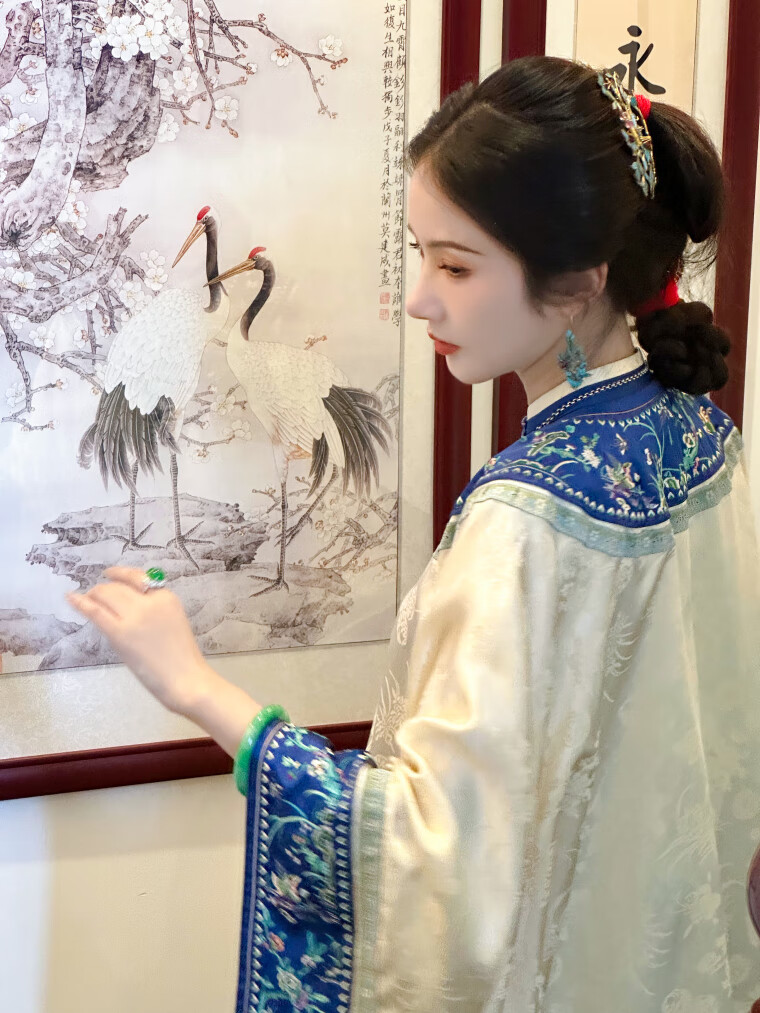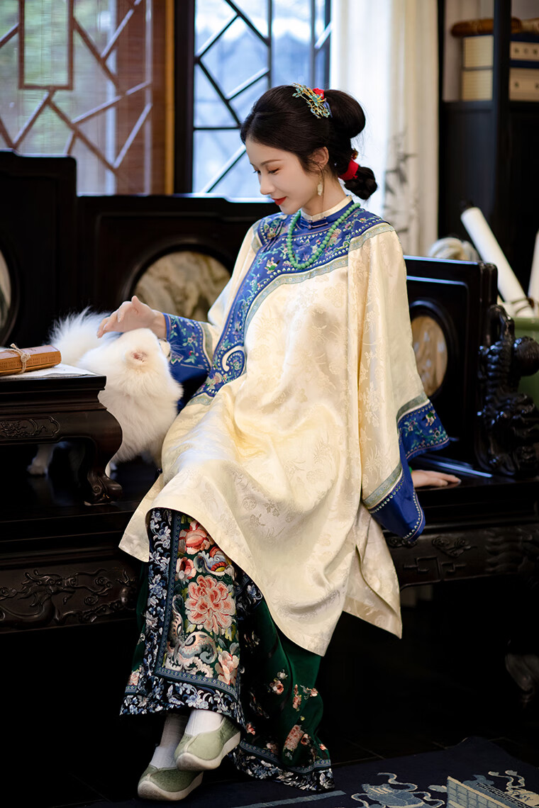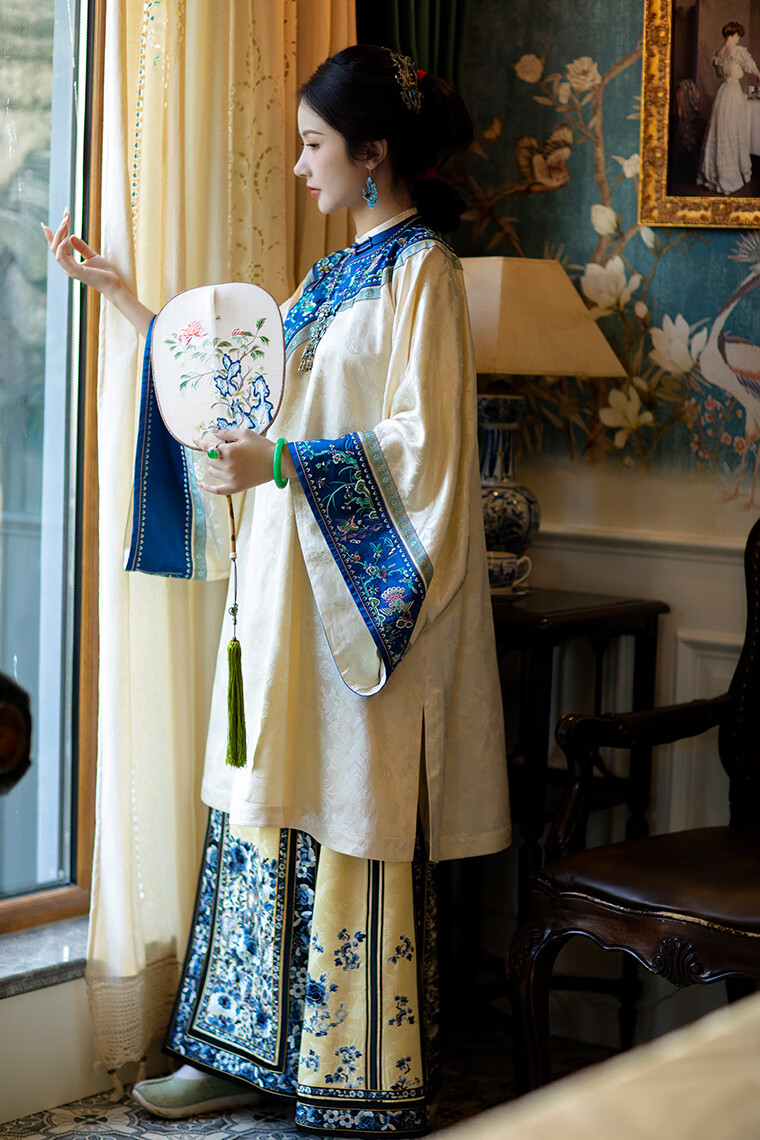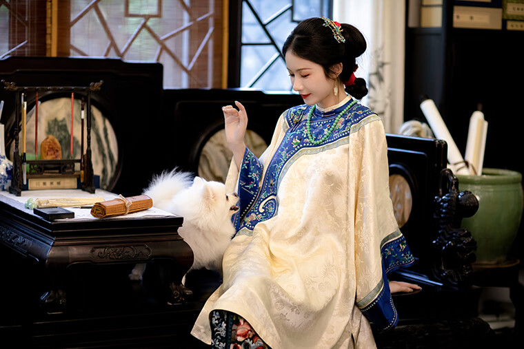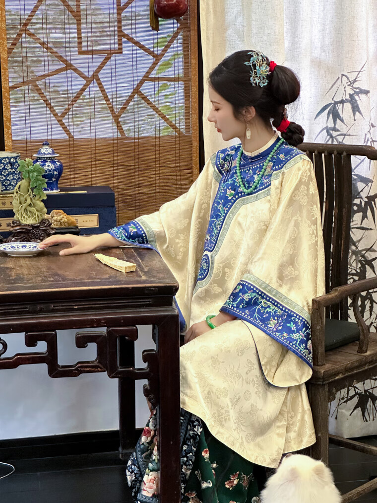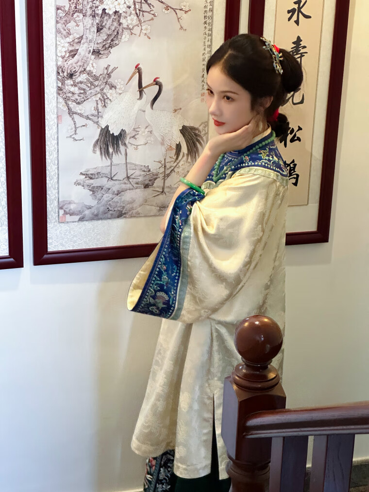 A city style catkins garden with deep flowers丨Autumn oriental simple luxury style retro Chinese embroidered blouse loose big-breasted embroidered original style robe beige big-breasted embroidered Qing Han women's robe S