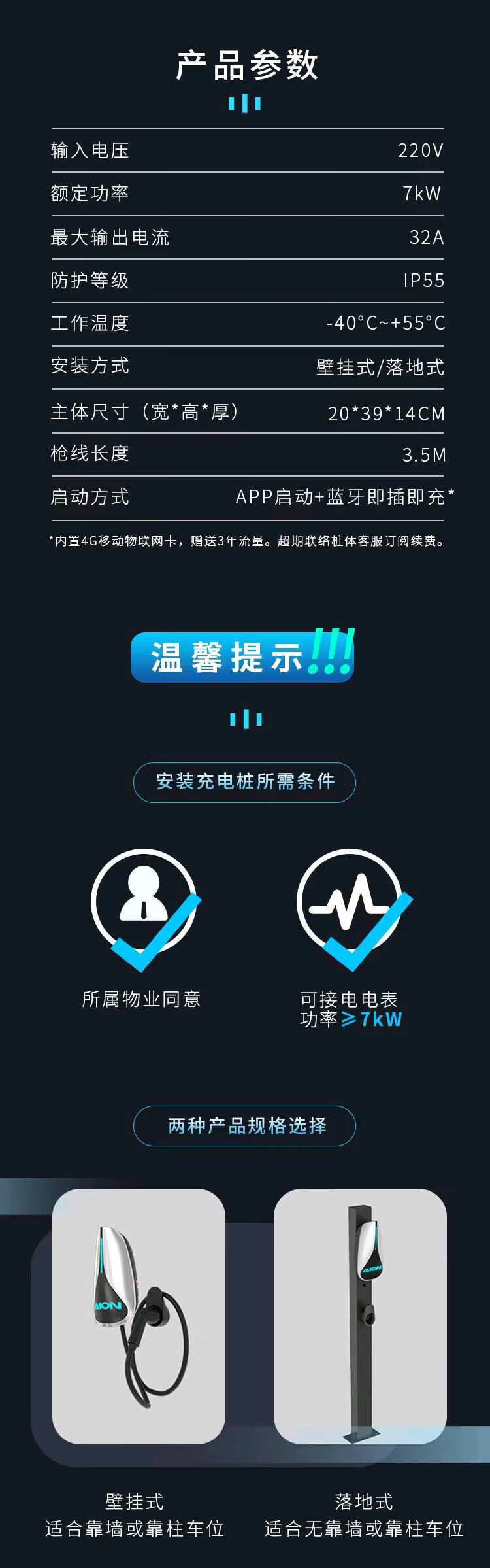 Aion GAC Aion original factory AION YVS Mei 580 Hyun S RT Haopin Trumpchi dedicated home charging pile 3.5 meters gun cable 7kw 4G + Bluetooth
