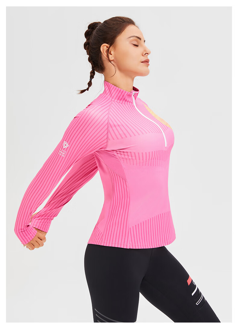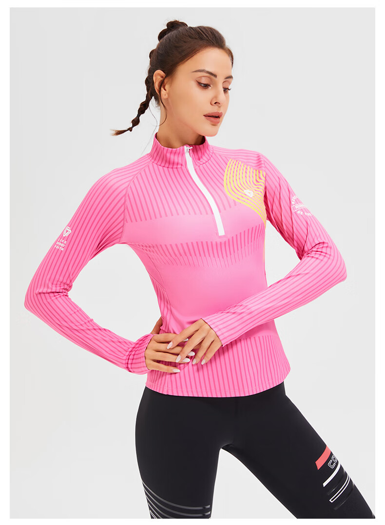 Corif fitness clothing women's autumn and winter half-zip slimming professional running training Pilates sports yoga clothing long-sleeved pomegranate powder 2XL