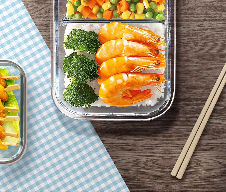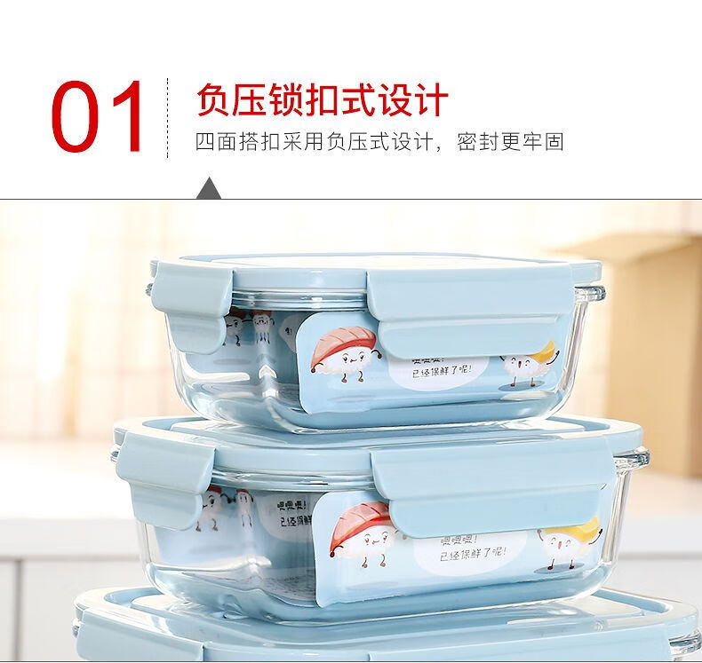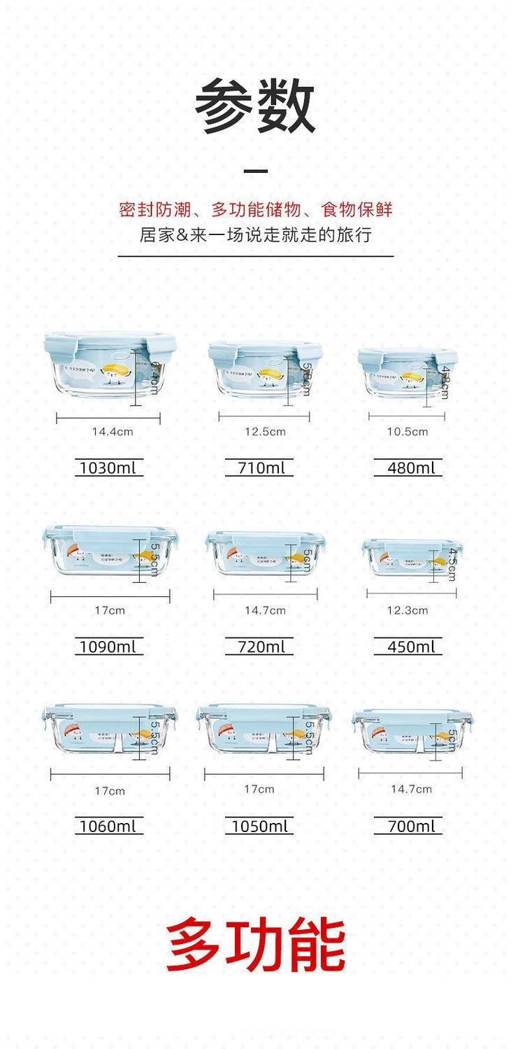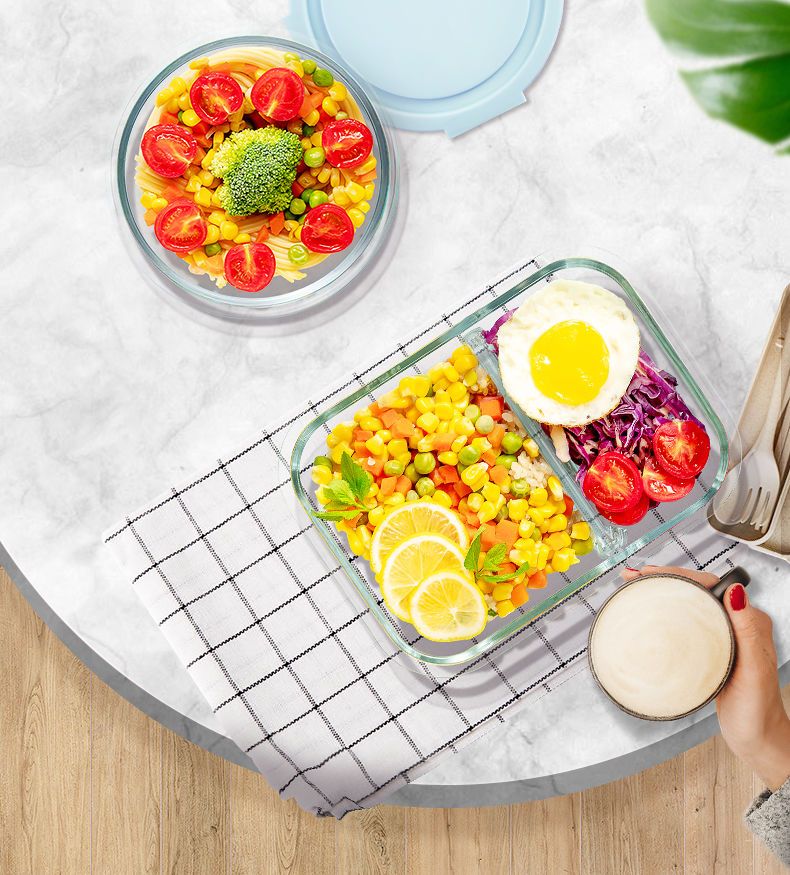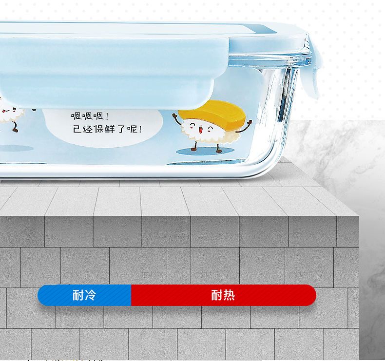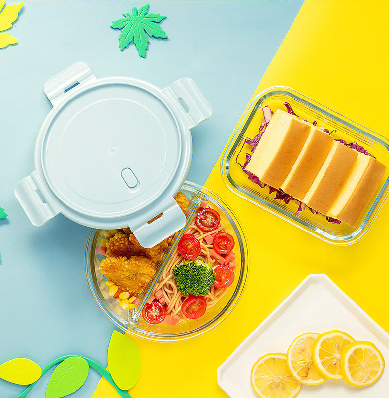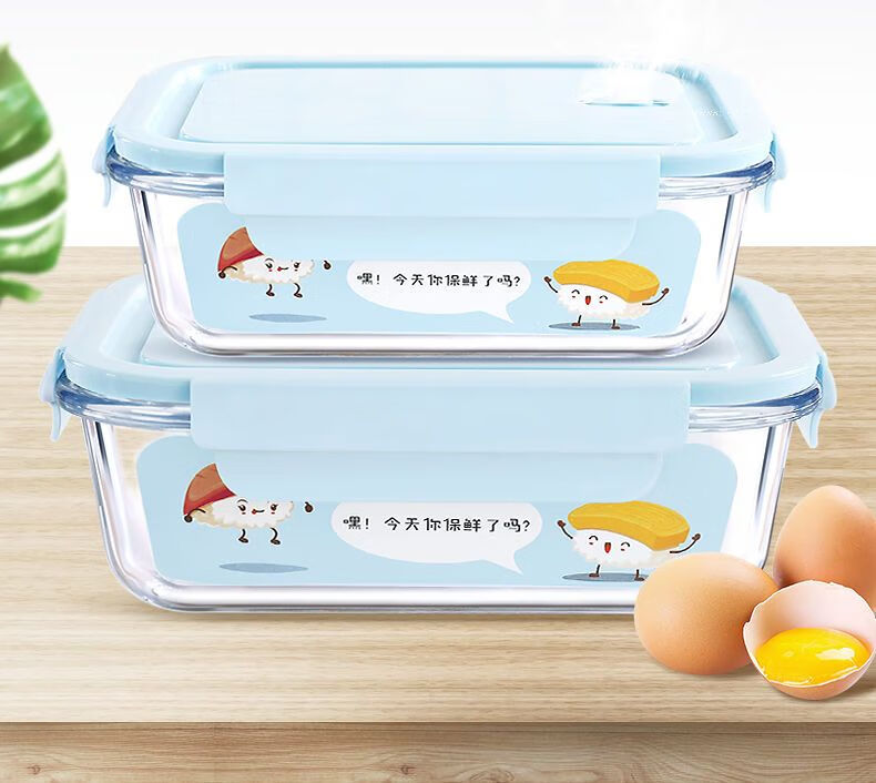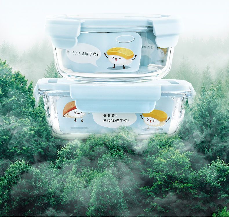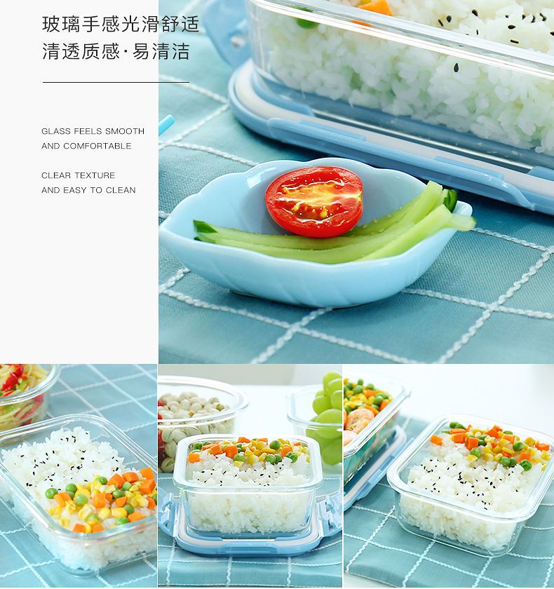 Xinmeiya Large Capacity Glass Fresh-keeping Box Lunch Box Sealed Lunch Box Lunch Box Kitchen Storage Box Refrigerator Freezer Box Dumpling Box Rock Blue Single Pack 720ml Medium Long