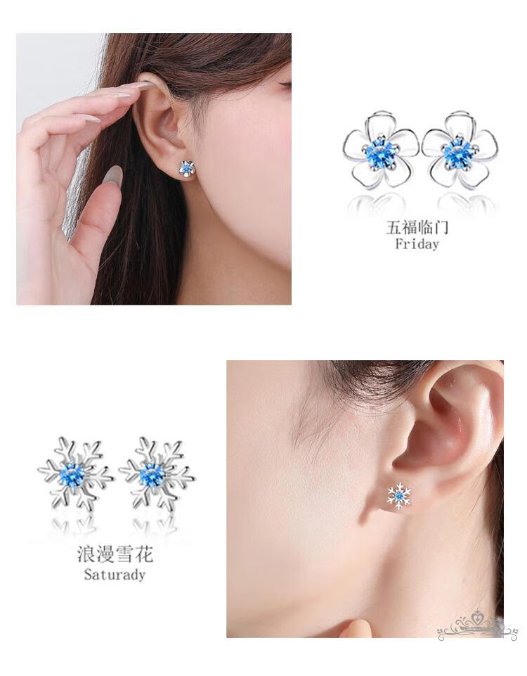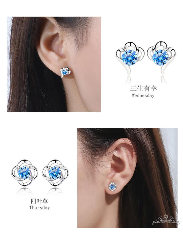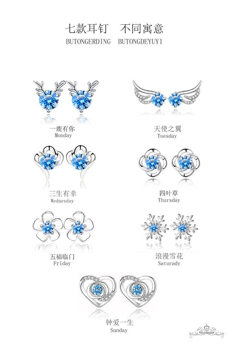 Haikai earrings, high-end women's one-week gift box, one-week set, luxury jewelry, Valentine's Day birthday gift, one-week earring set (999) silver