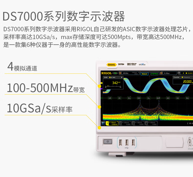 RIGOL Puyuan DS7014 four-channel 100MHz bandwidth 10GSa/s sampling rate DS7000 series digital oscilloscope DS7024 (four-channel 200M)