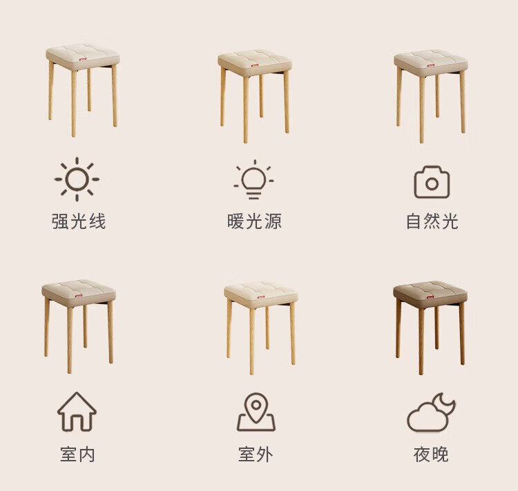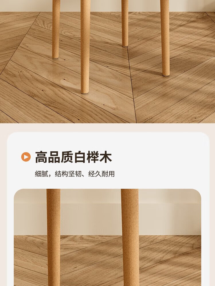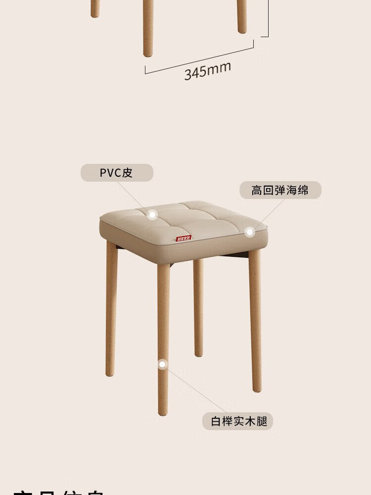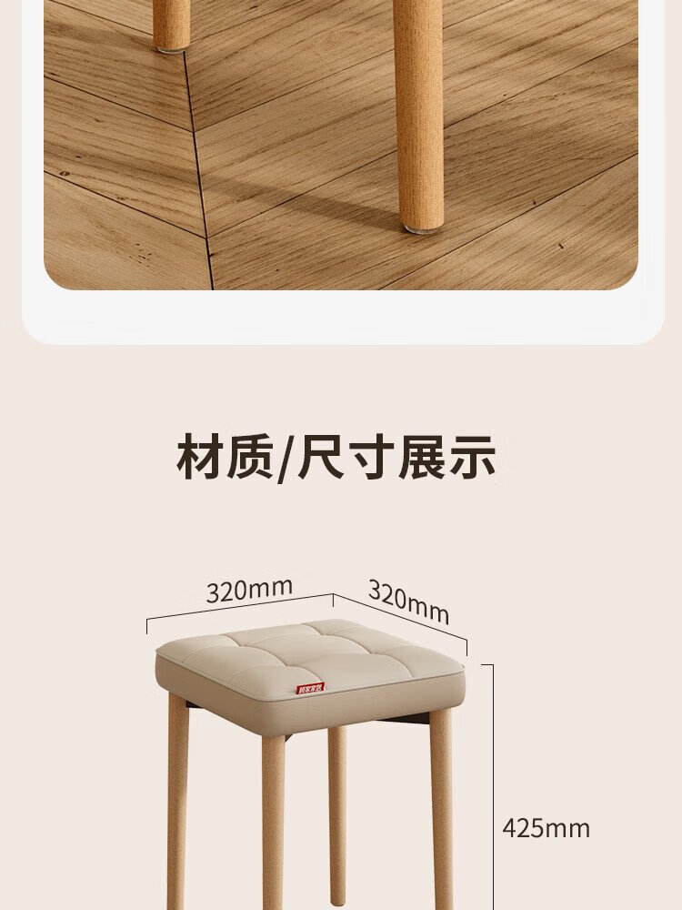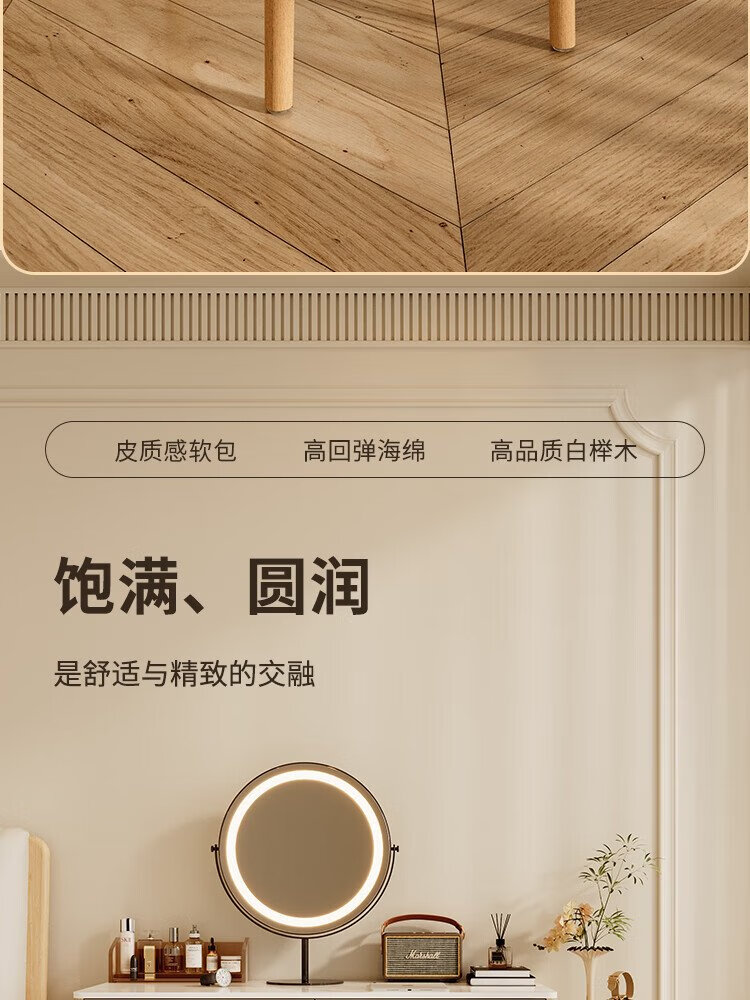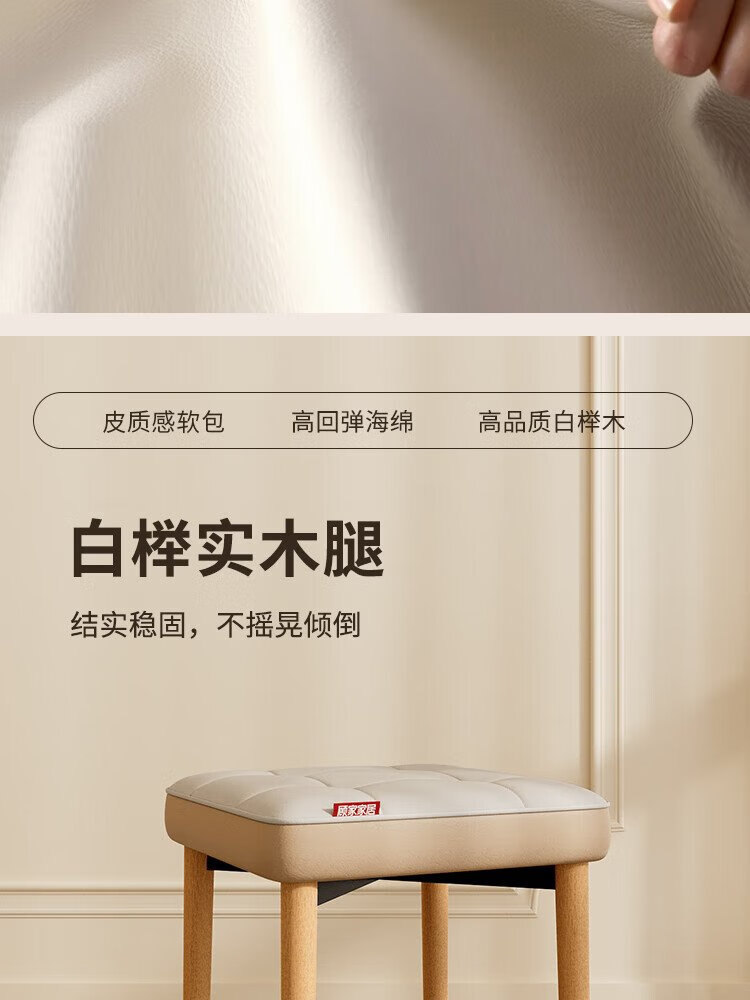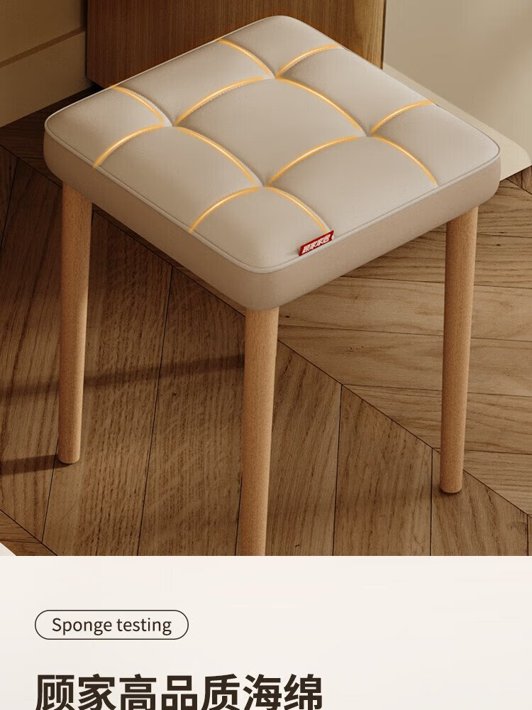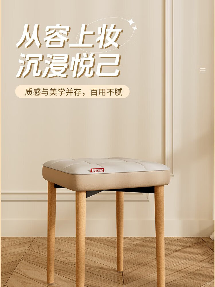 KUKA Gujia Wood Art Stool Cream Style Makeup Stool Dressing Table Chair Modern Simple Internet Celebrity Makeup Chair PT8011YQ Dressing Stool White Beech Solid Wood Legs