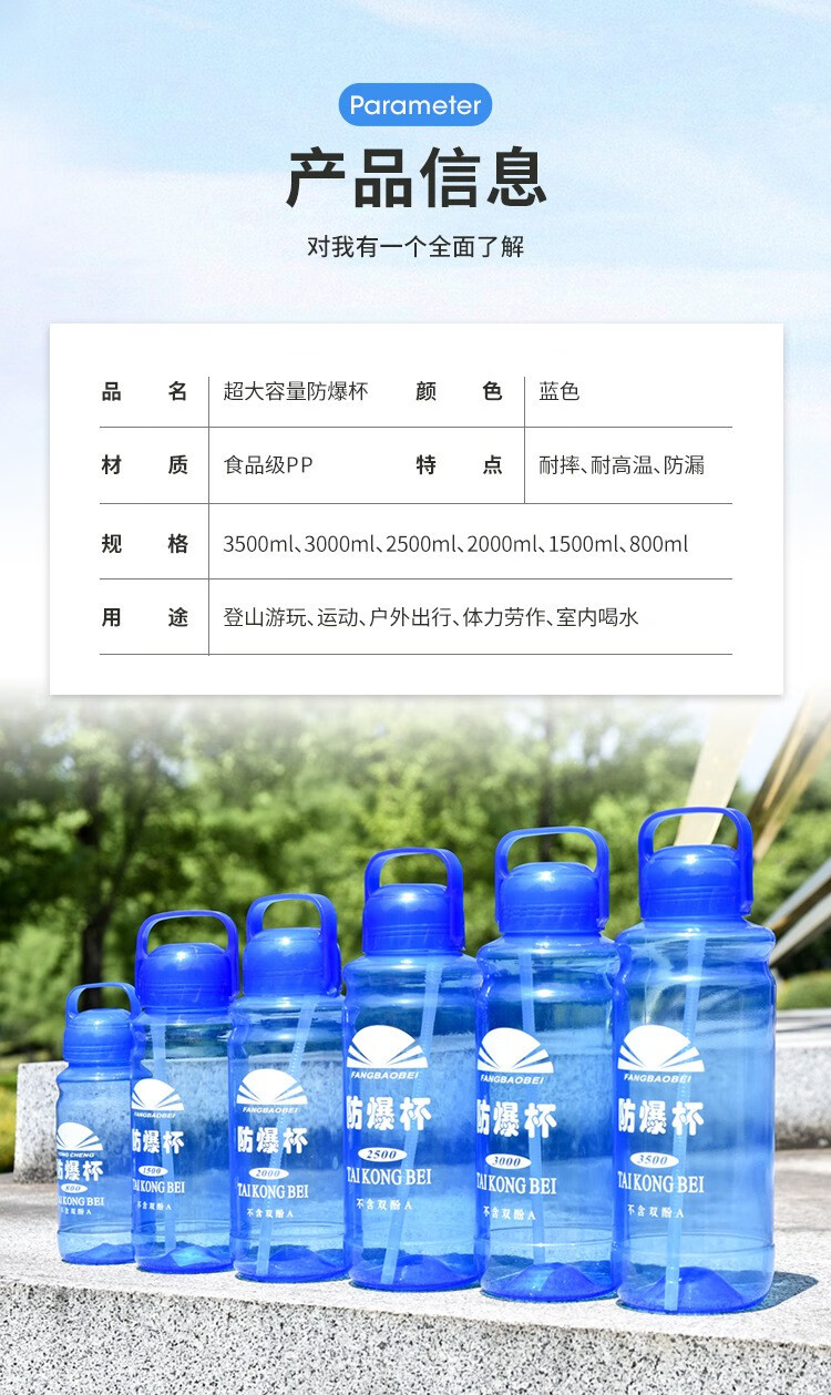 Hua'anjia thickened plastic cup, extra large water cup, space cup, travel cup, anti-fall and temperature-resistant migrant cup 3500ml