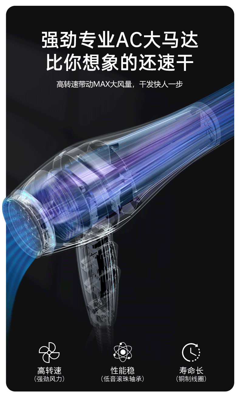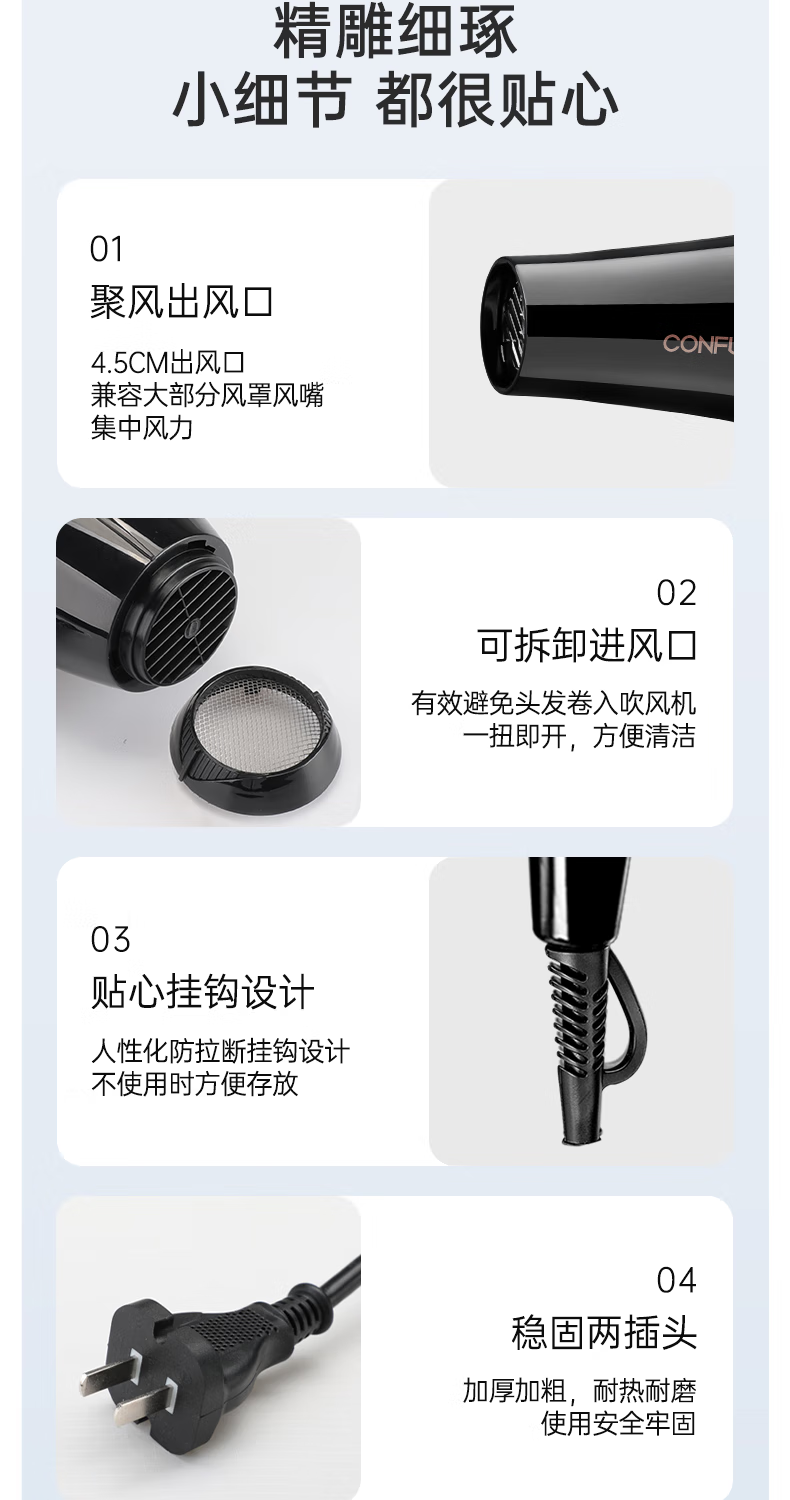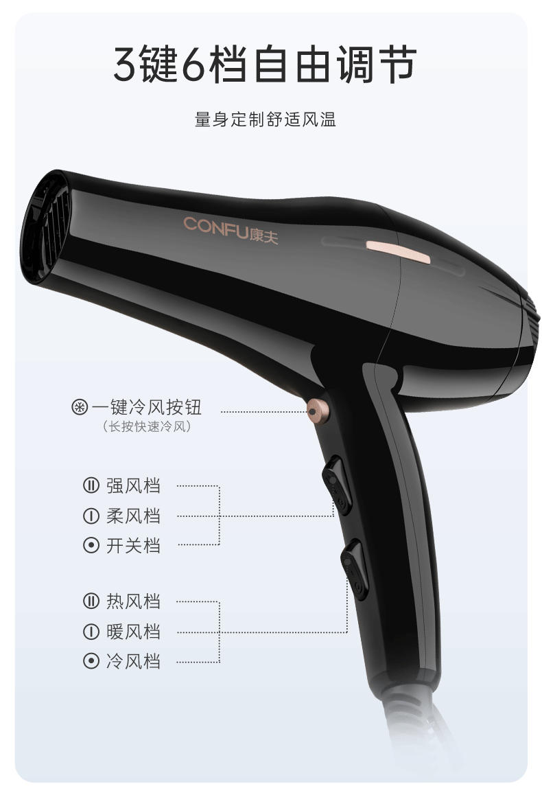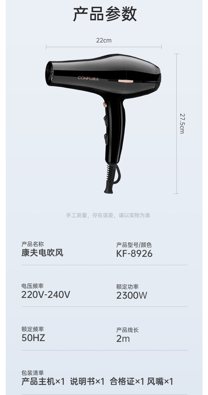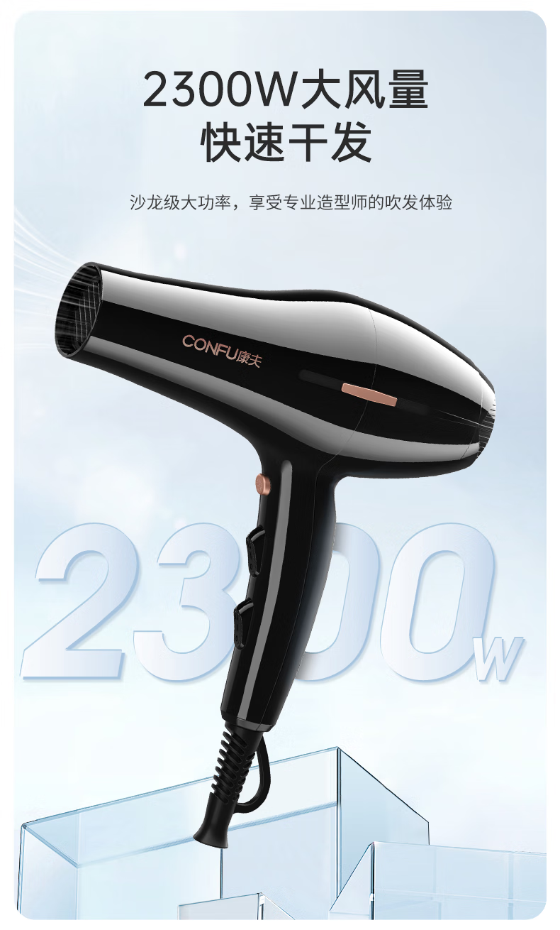 Kangfu hair dryer household high power 2200W hot and cold air professional hair salon level barber shop constant temperature hair dryer Kangfu KF-3130 pink 2200W foldable