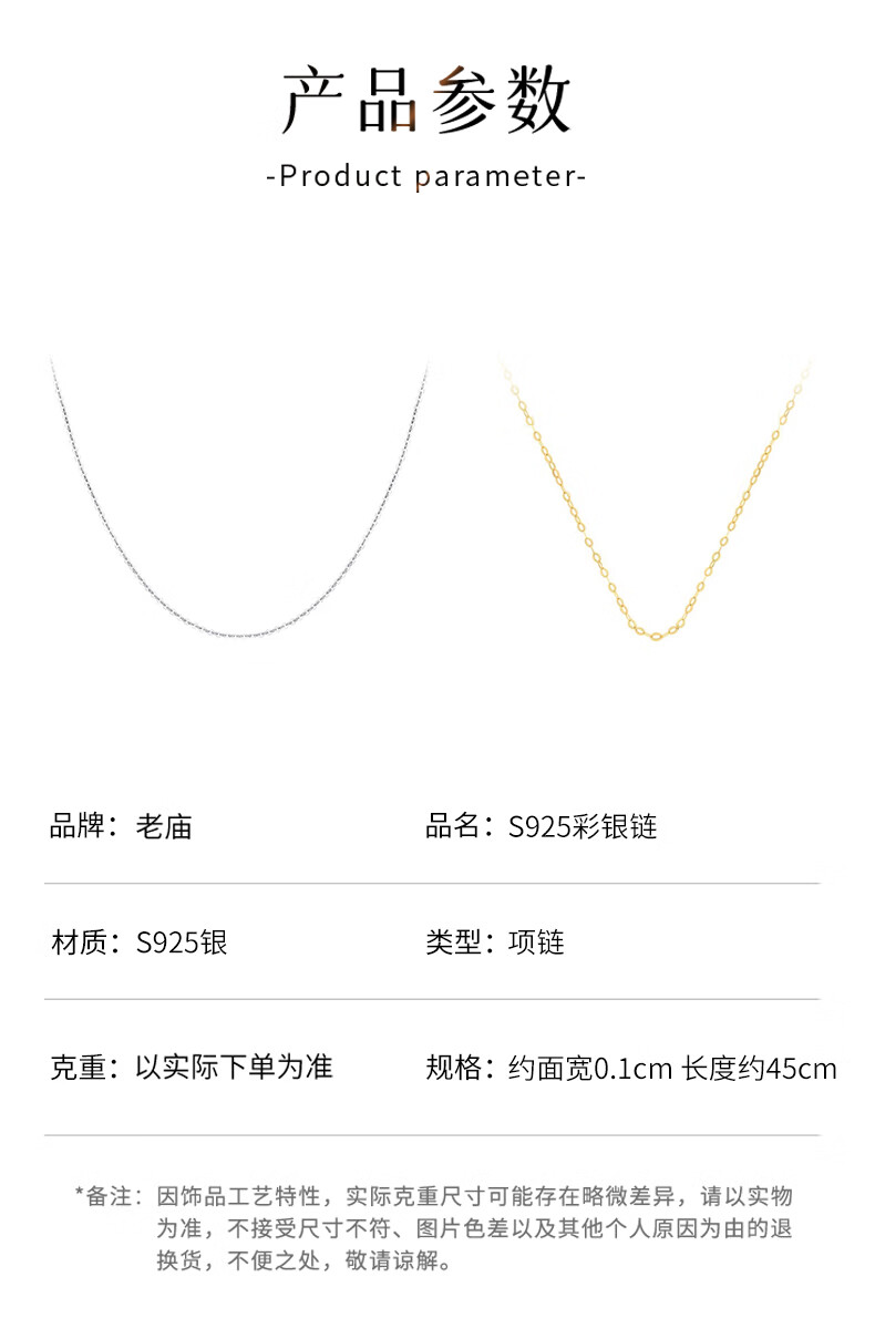 Old temple silver necklace for women with pendant plain chain O-shaped chain birthday gift for girlfriend and wife gold color O-shaped chain 45cm