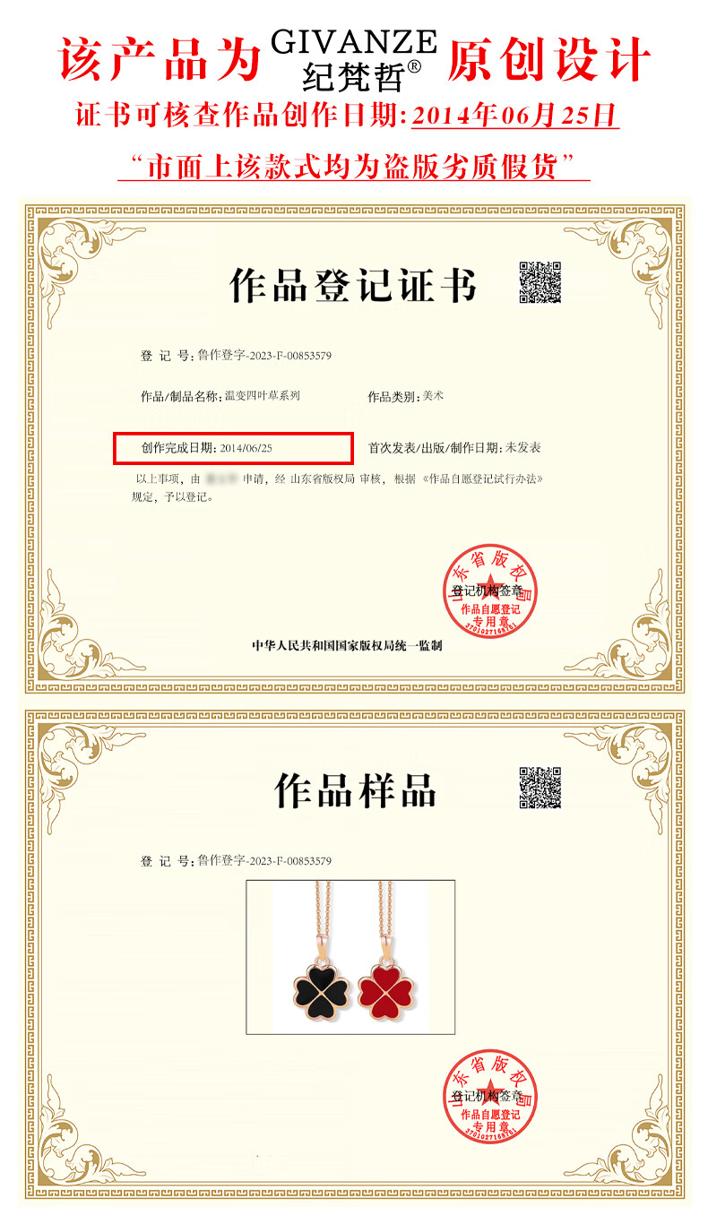 Givenchy light luxury four-leaf clover necklace women's pendant bracelet anniversary jewelry birthday gift for girlfriend and wife black and red double-sided (red temperature change)
