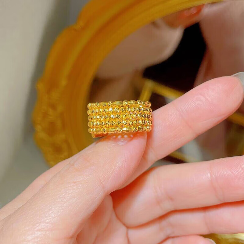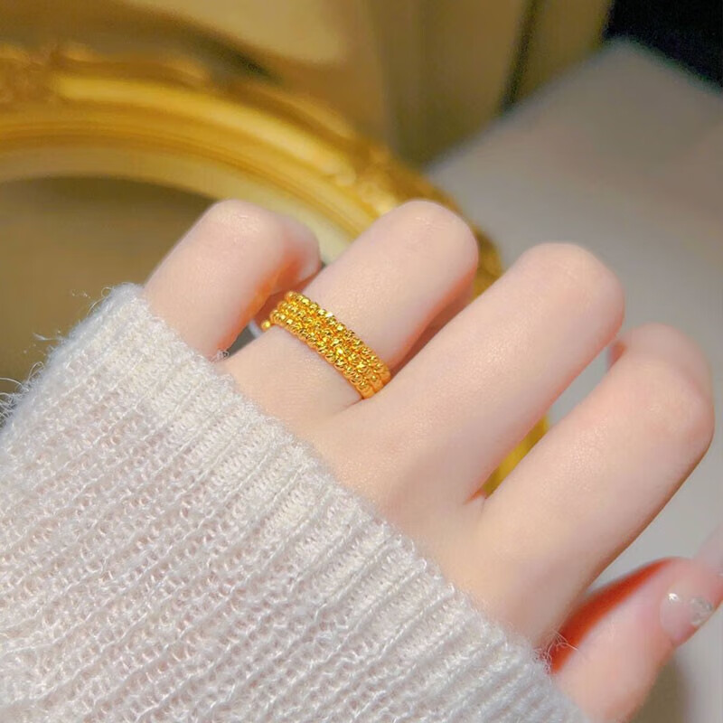 Ruinuo 5G gold bungee spring circle memory ring women's 999 solid gold flash bead open ring birthday gift for girlfriend, 5 circles 12-13, gold weight about 3.83 grams