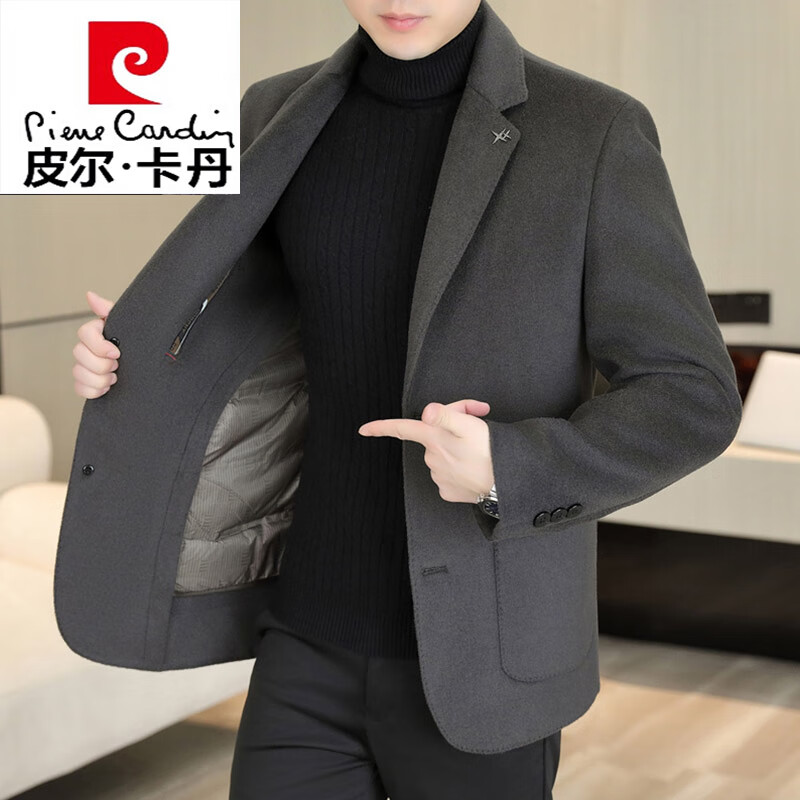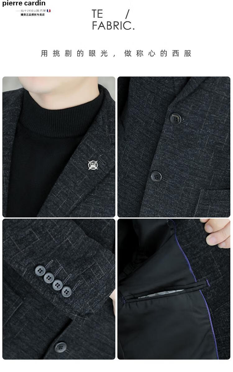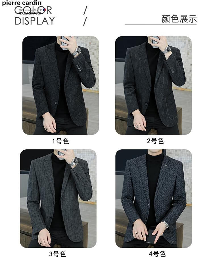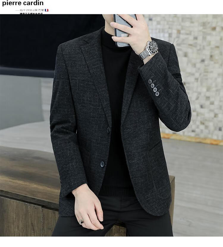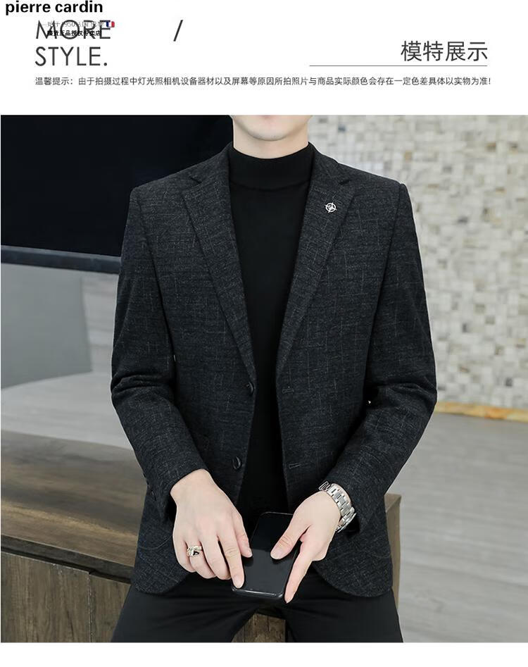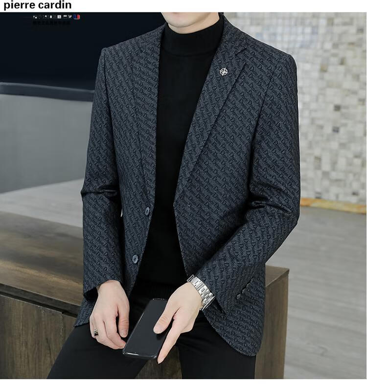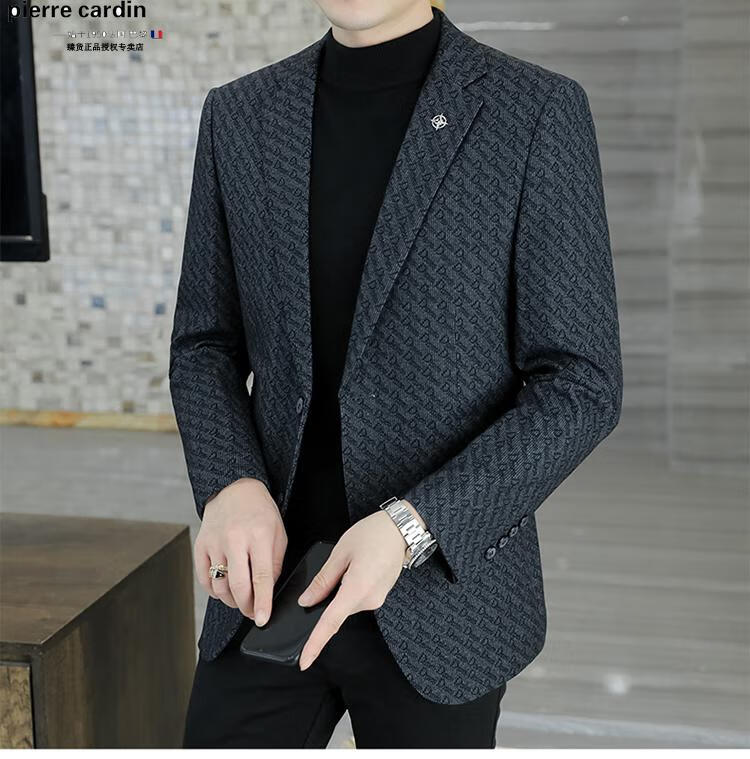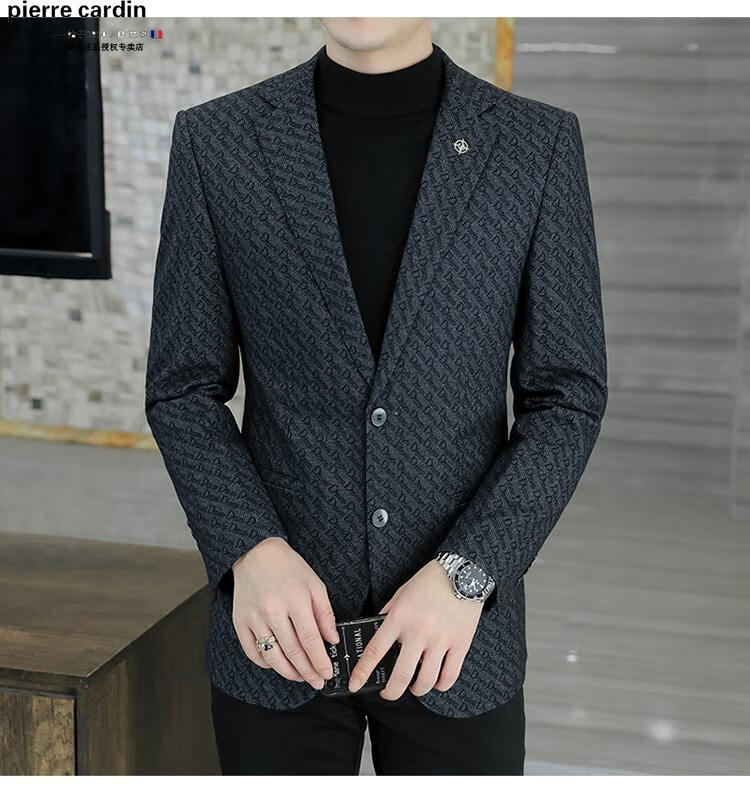 Pierre Cardin small blazer men's business casual tops high-end brand woolen striped suit commuting drape single suit black dark pattern 6001-1 2XL 185 recommended 150-165Jin Jin equals 0.5 kg