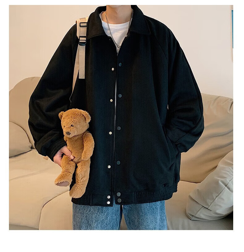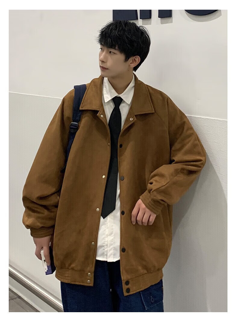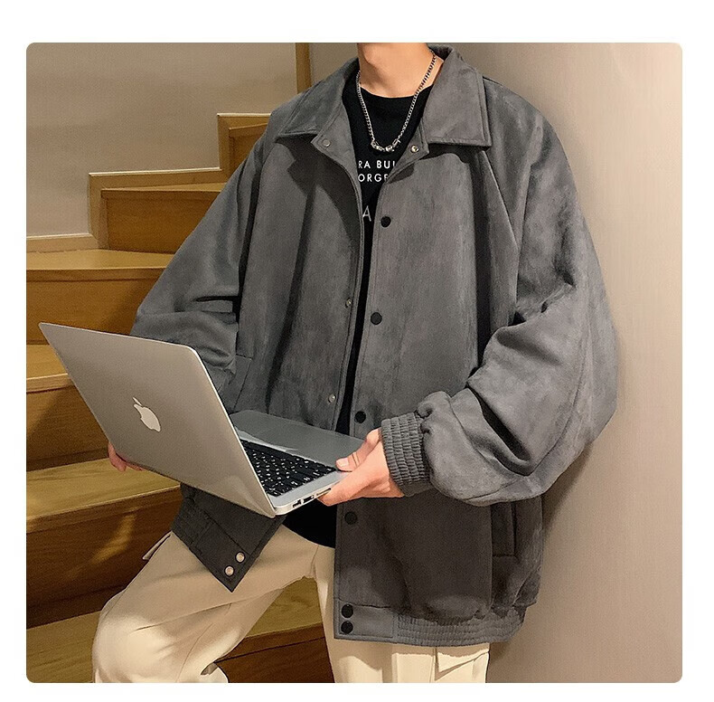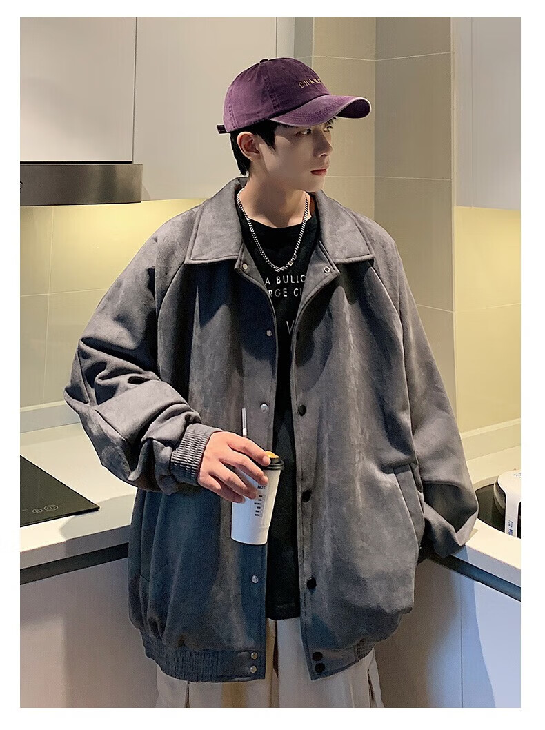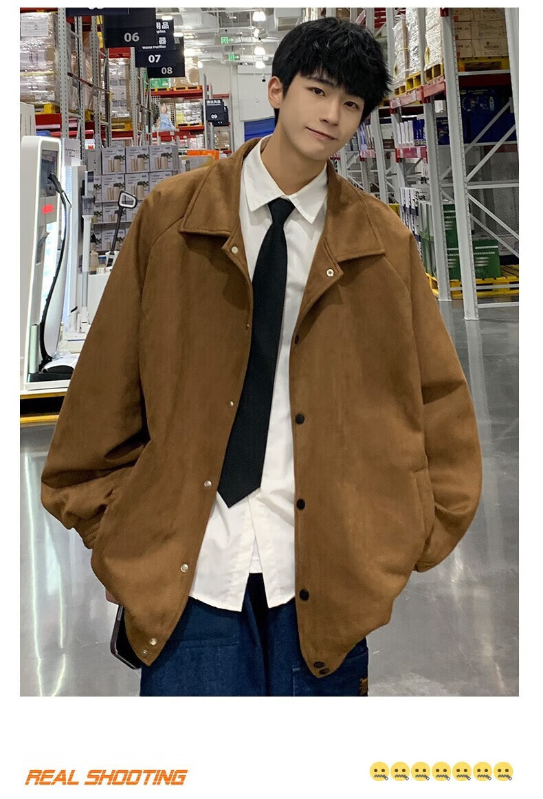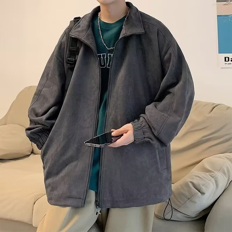 Black box white suede jacket men's autumn and winter clothing multi-wear autumn and winter trendy brand American retro handsome simple jacket men's clothing joint XZWP-W07 dark gray 2XL