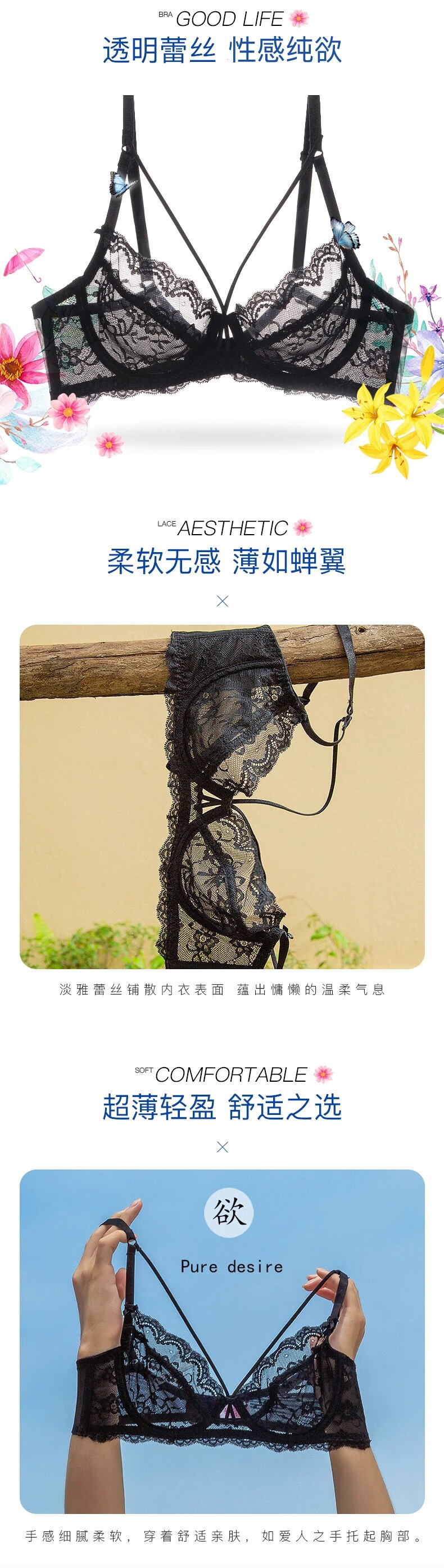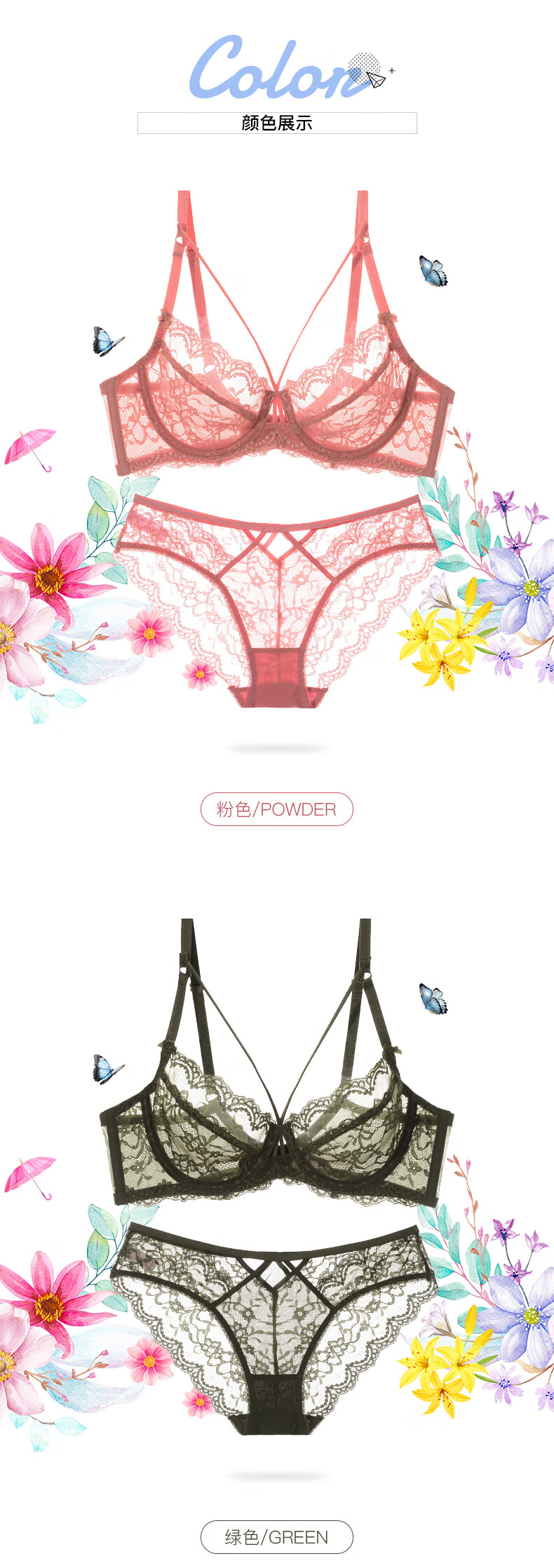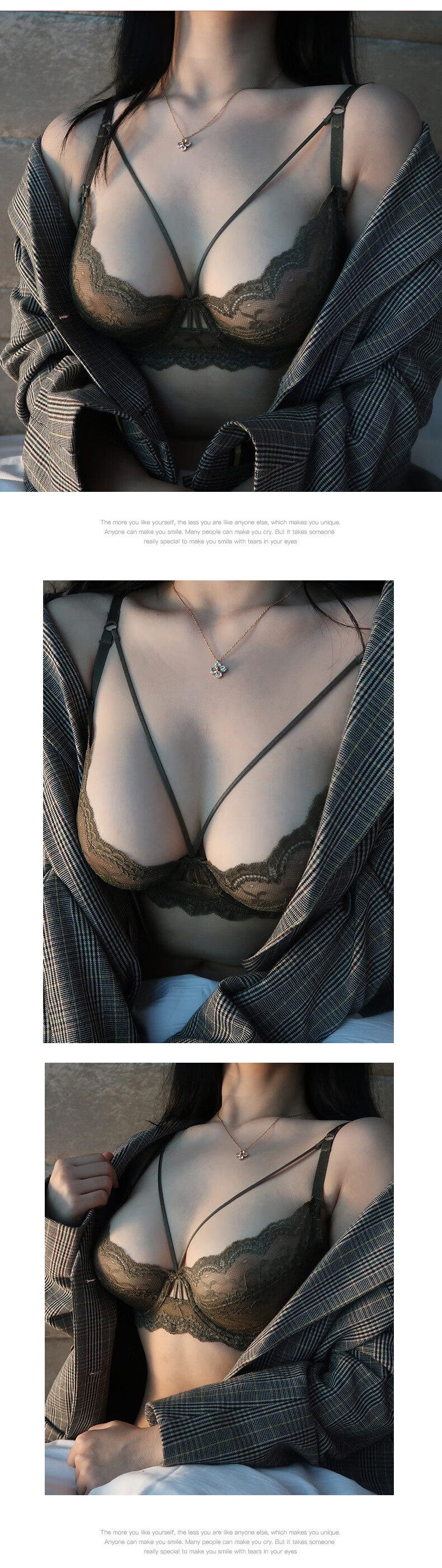 Xuan Sifu Pure Desire Sexy Bra Set Sentimental Underwear Women's Lace Transparent Breast Control Hot Bra Push Up Big Breasts Make Smaller Green Set (Bra + Panties) 80C /36C