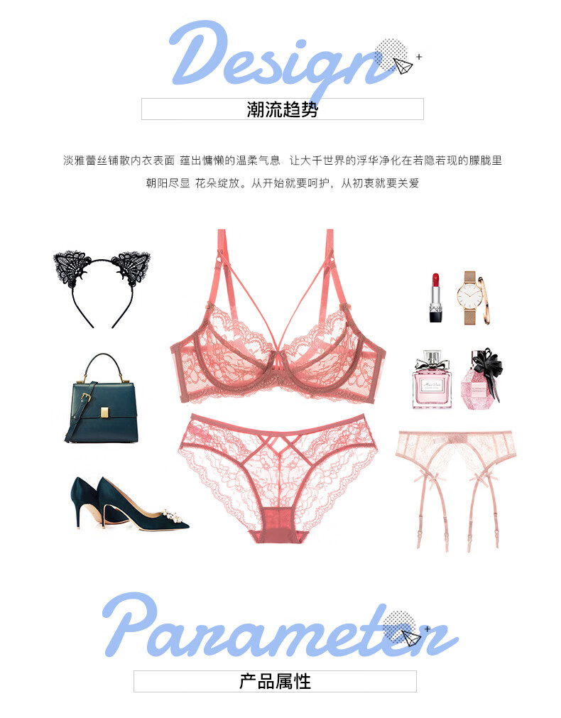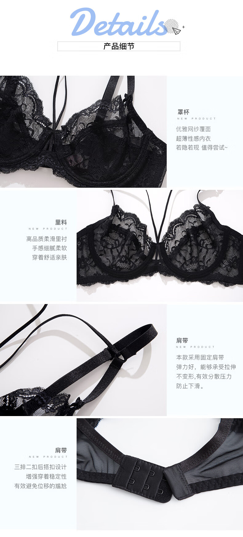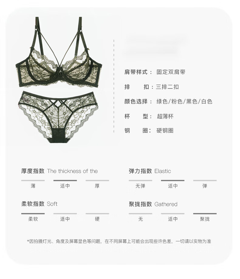 Xuan Sifu Pure Desire Sexy Bra Set Sentimental Underwear Women's Lace Transparent Breast Control Hot Bra Push Up Big Breasts Make Smaller Green Set (Bra + Panties) 80C /36C