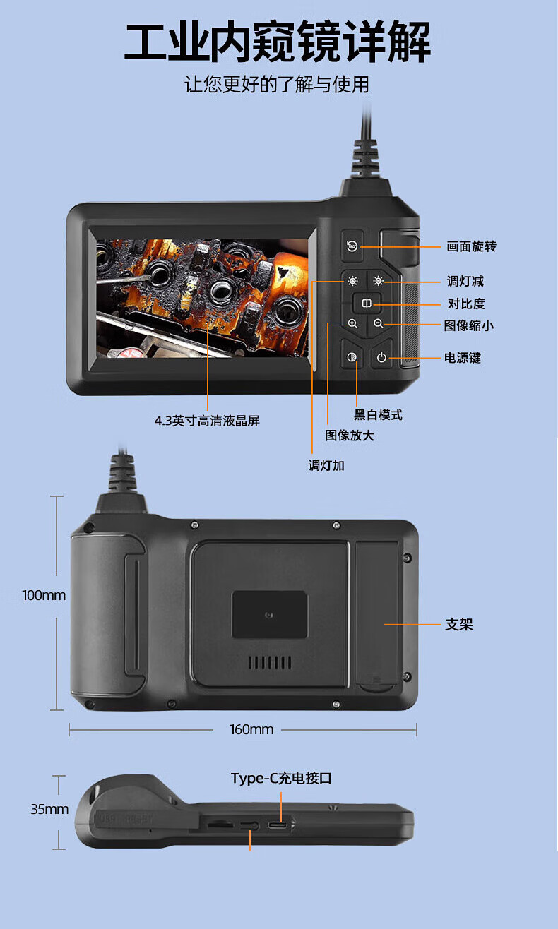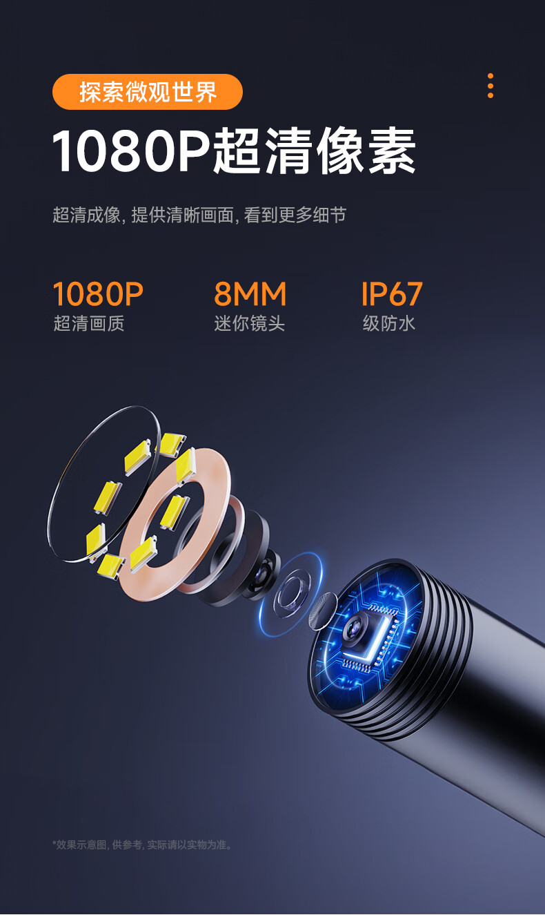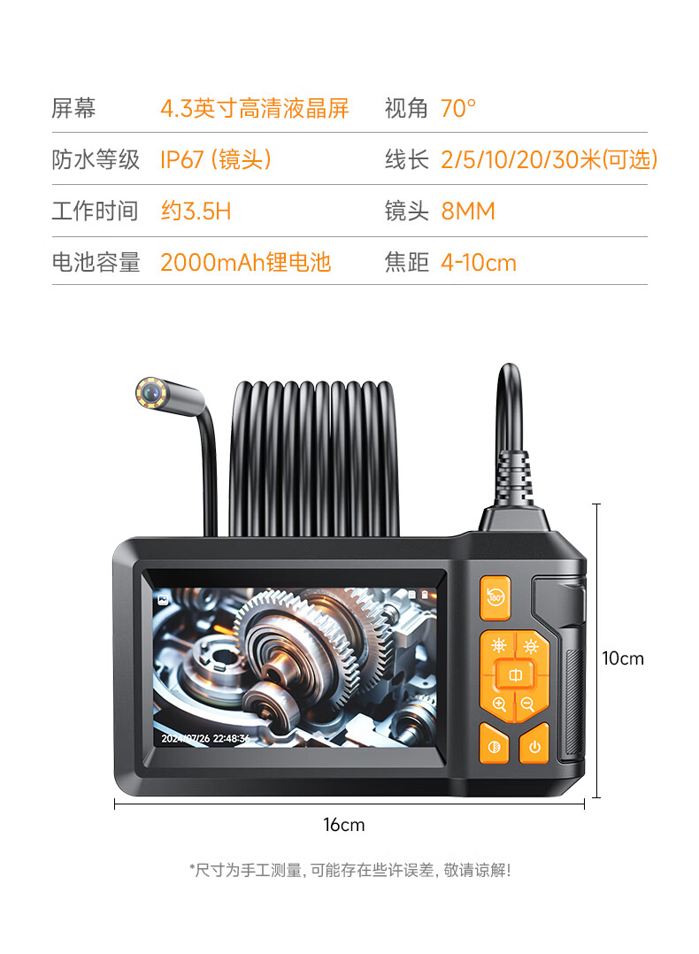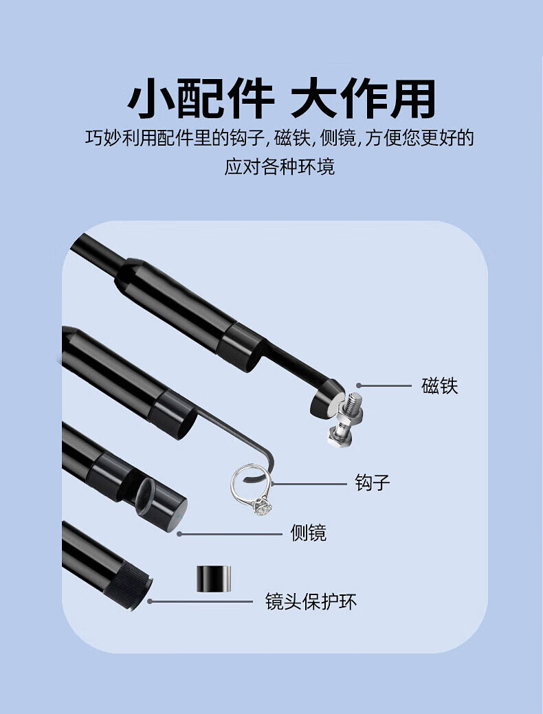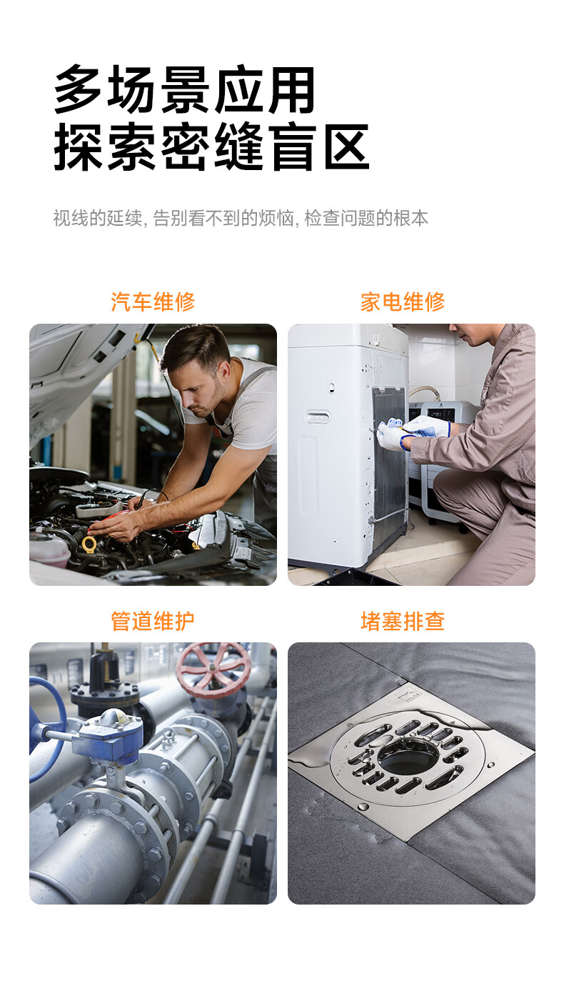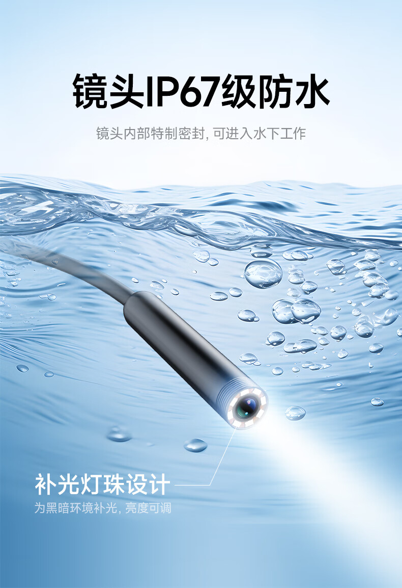 Bianchean endoscope, special high-definition camera for car sewer pipe repair, industrial waterproof probe, visual mobile phone detection, 10-meter hard line + 8mm high-definition large screen single lens
