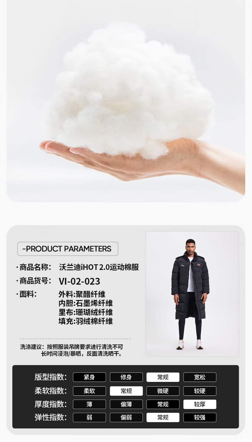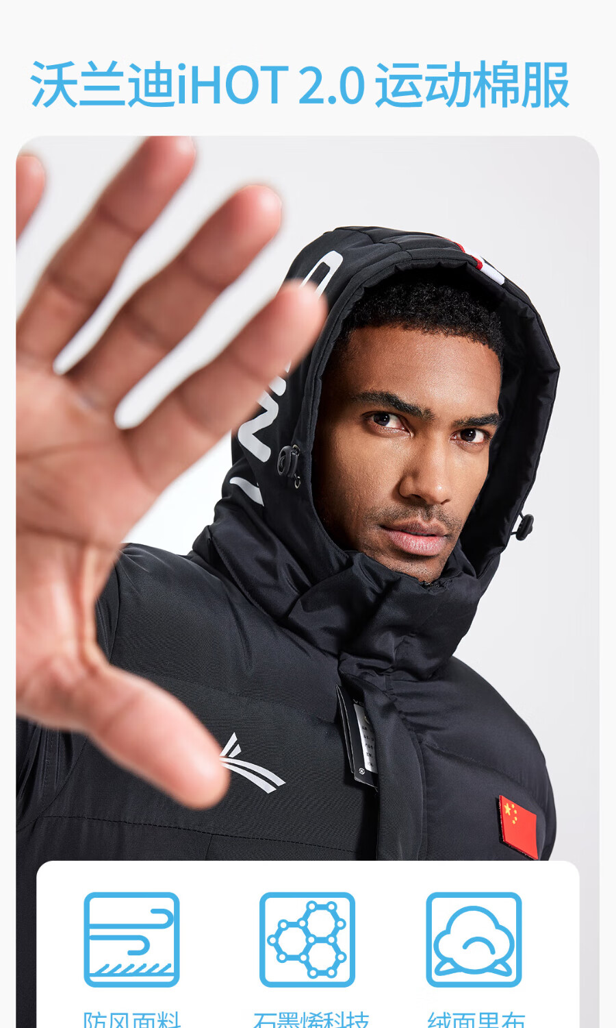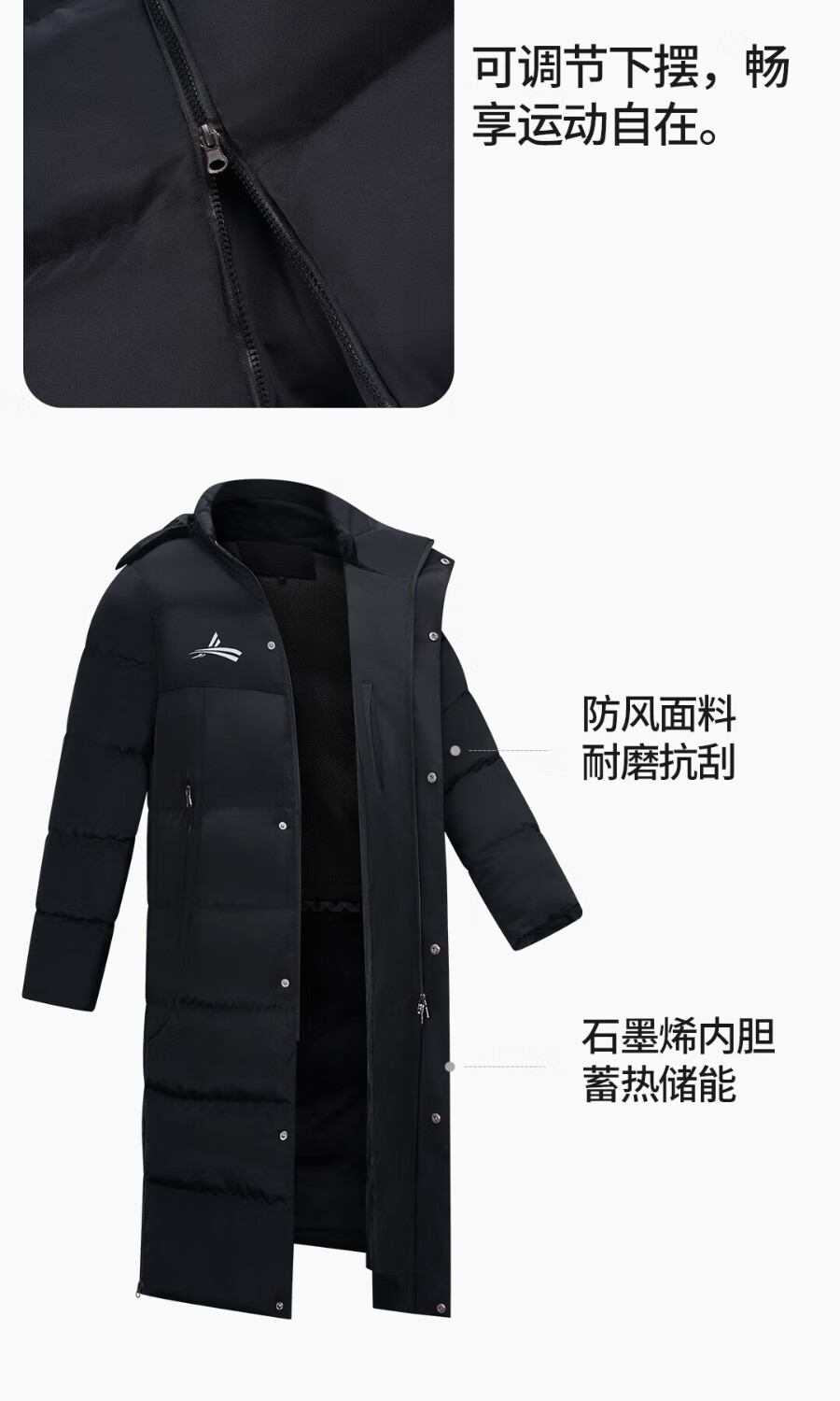 Volandi iHOT national team sports cotton coat plus velvet to keep warm in winter training to prevent cold men and women's over-the-knee long coat, non-down jacket, black XL