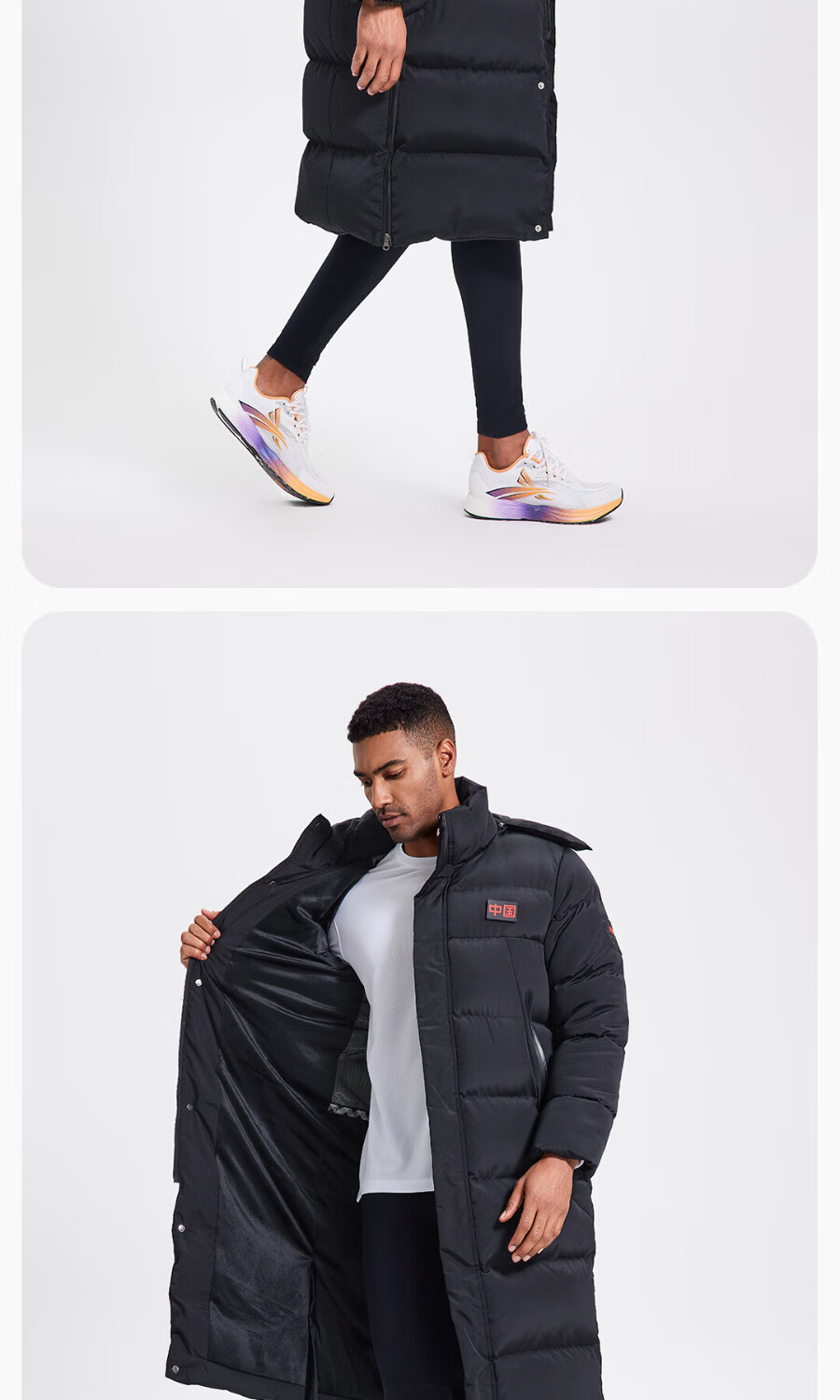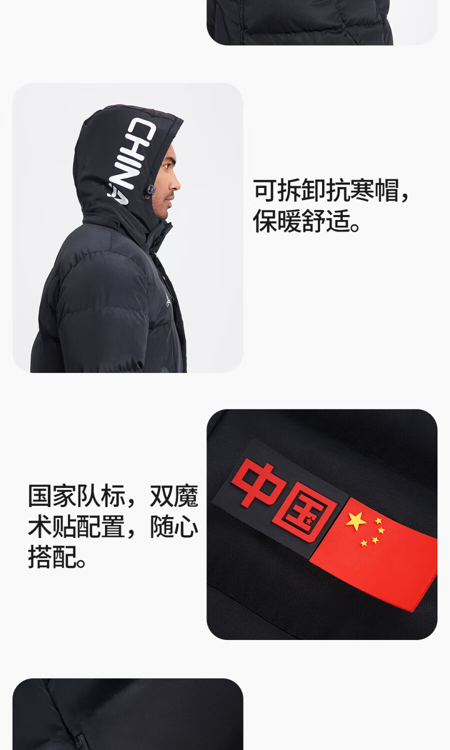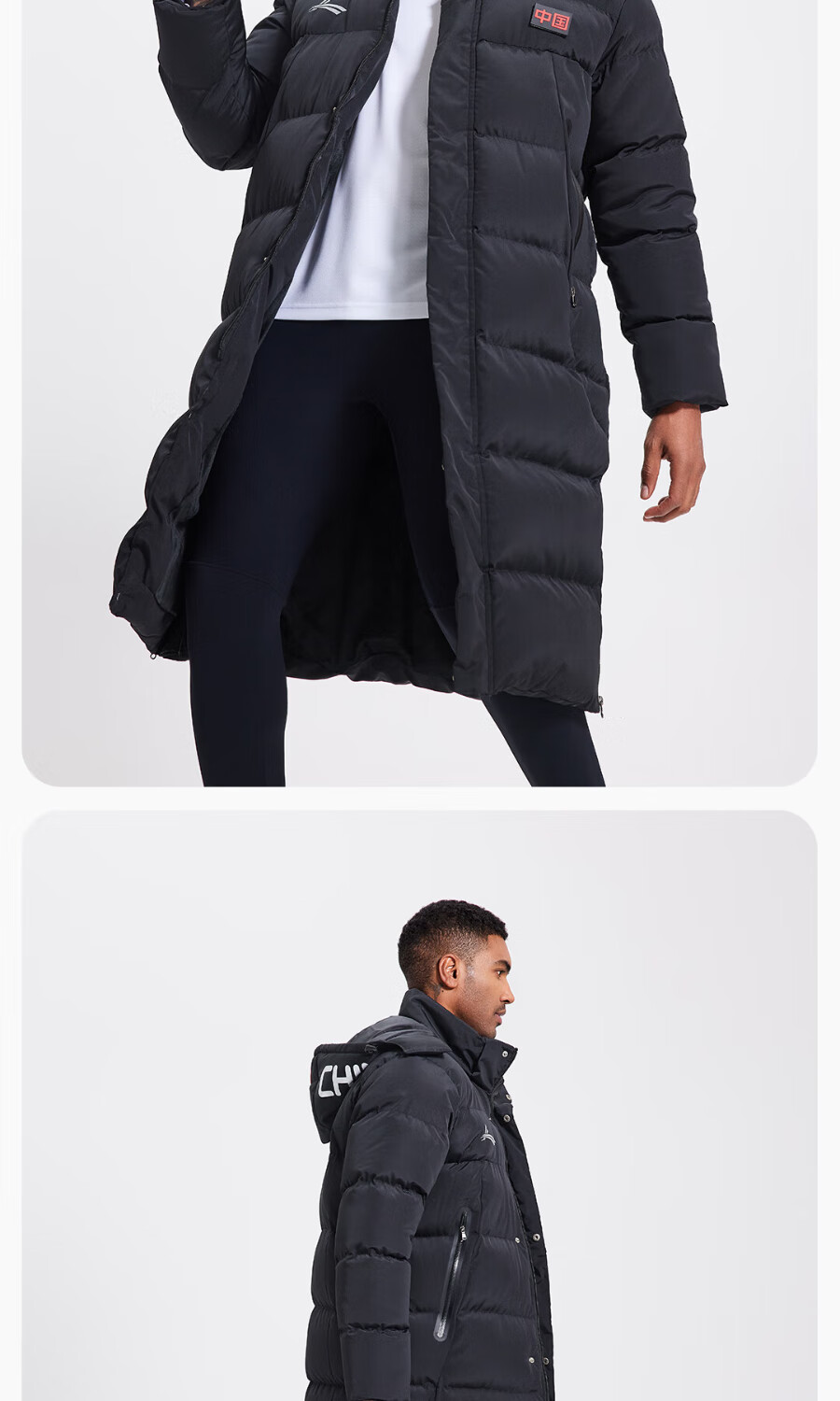 Volandi iHOT national team sports cotton coat plus velvet to keep warm in winter training to prevent cold men and women's over-the-knee long coat, non-down jacket, black XL