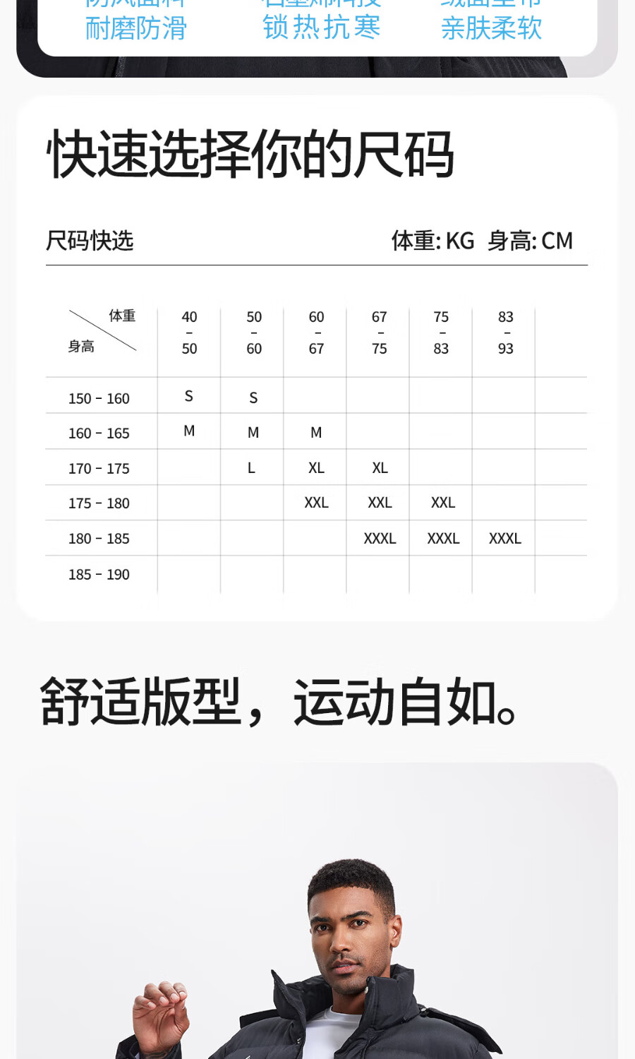 China (cm) 165 / 88-90 170 / 96-98 175 / 108-110 180 / 118-122 185 / 126-130