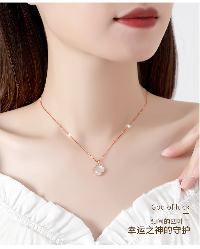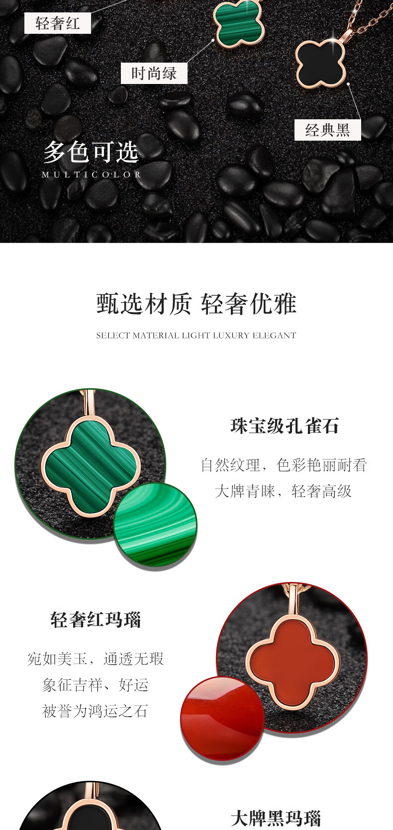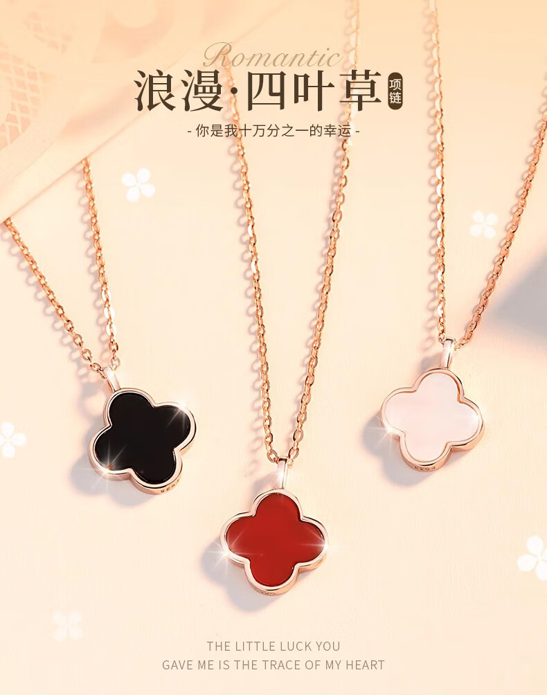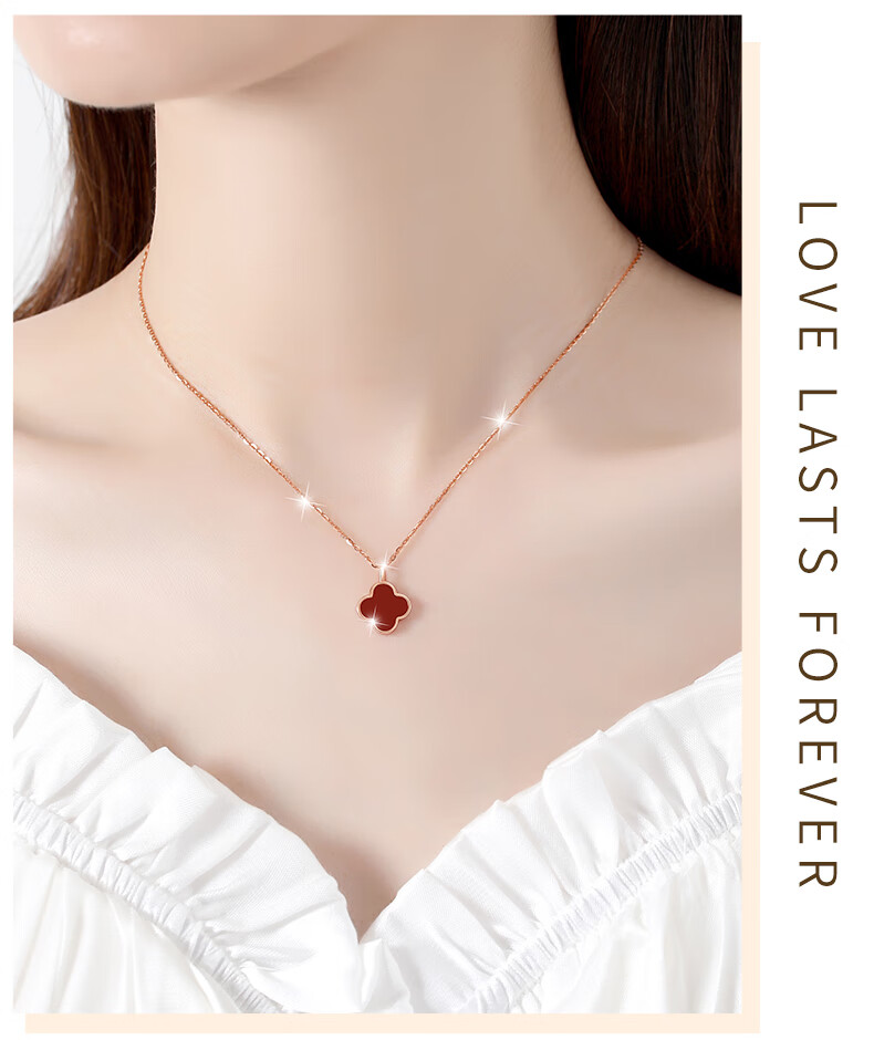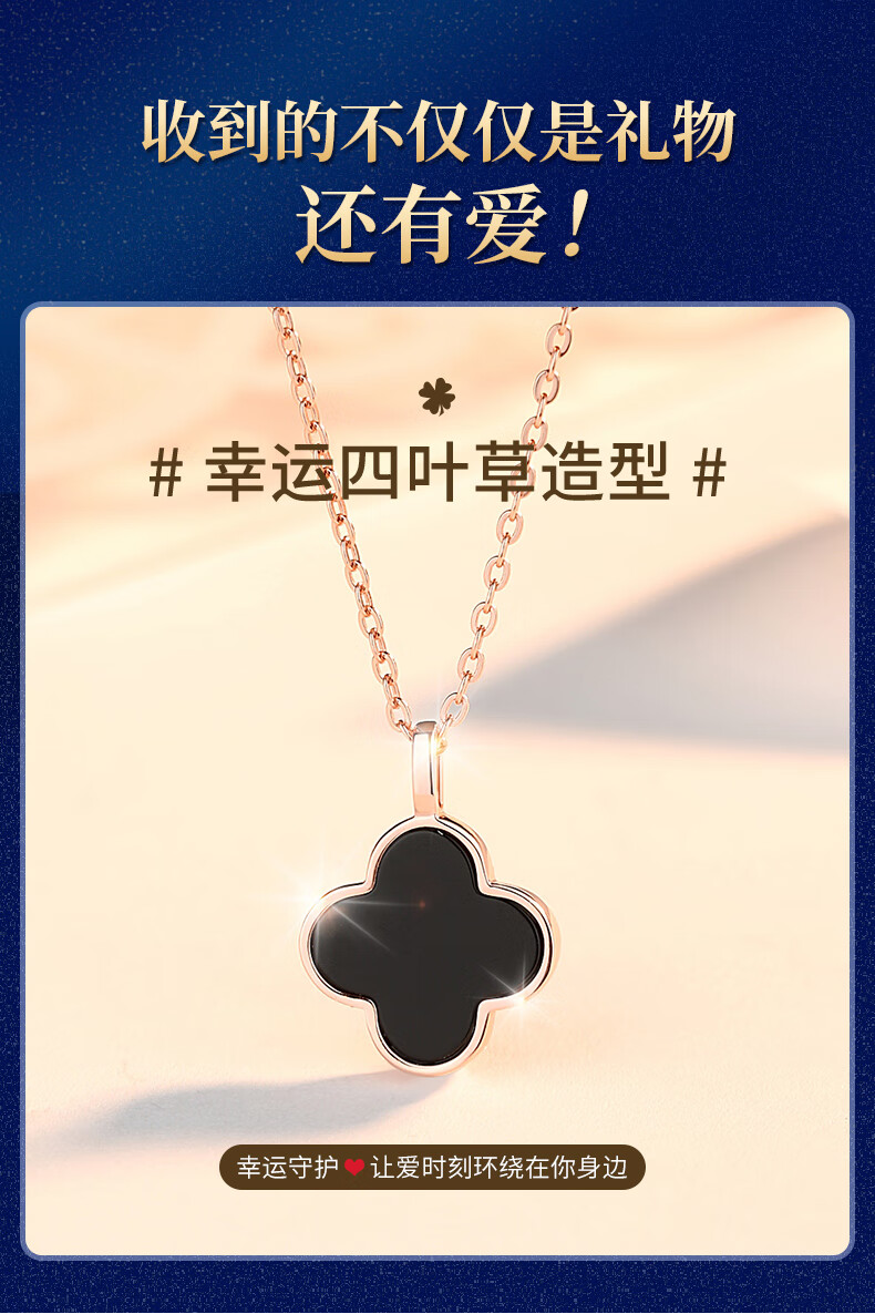 Ji Sifan light luxury jewelry fashion jewelry lucky four-leaf clover necklace anniversary gift birthday gift for wife and girlfriend four-leaf clover necklace - black onyx B style fashion