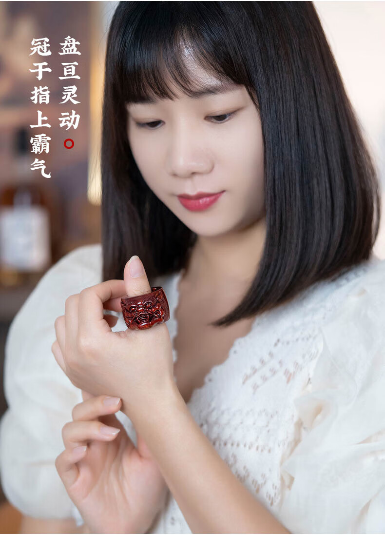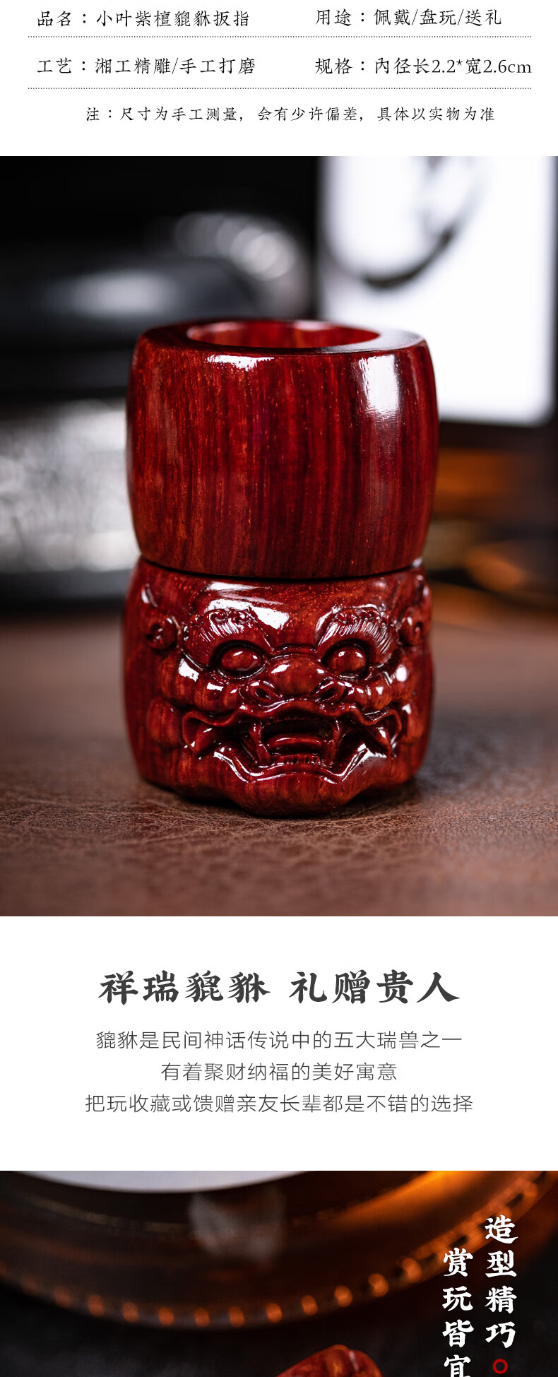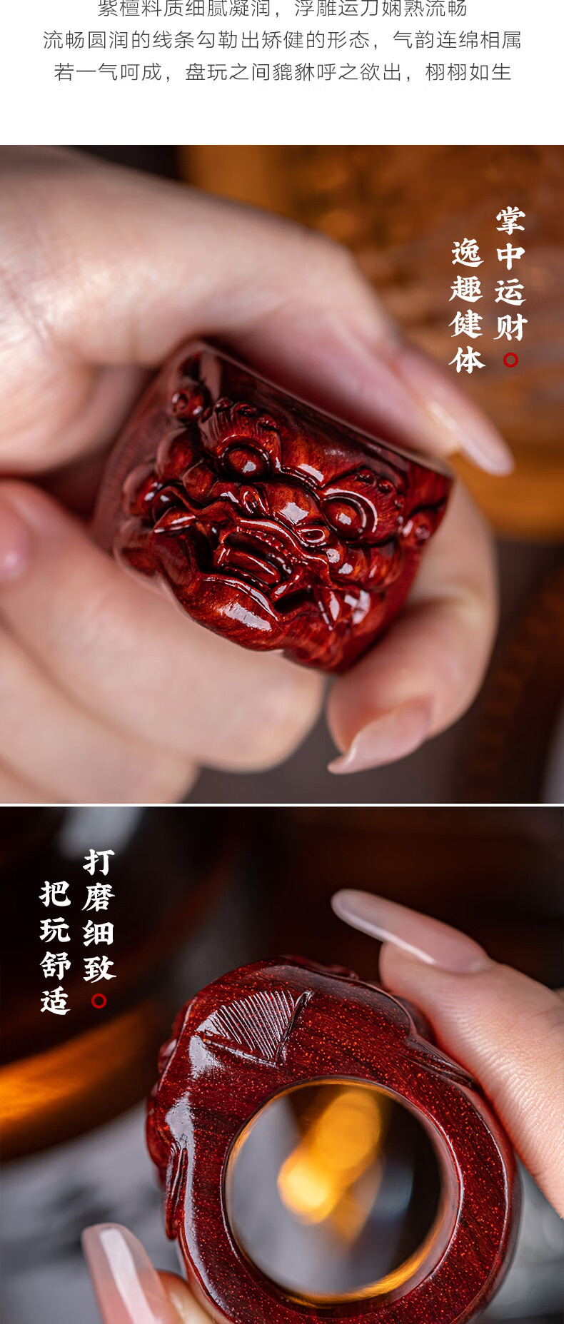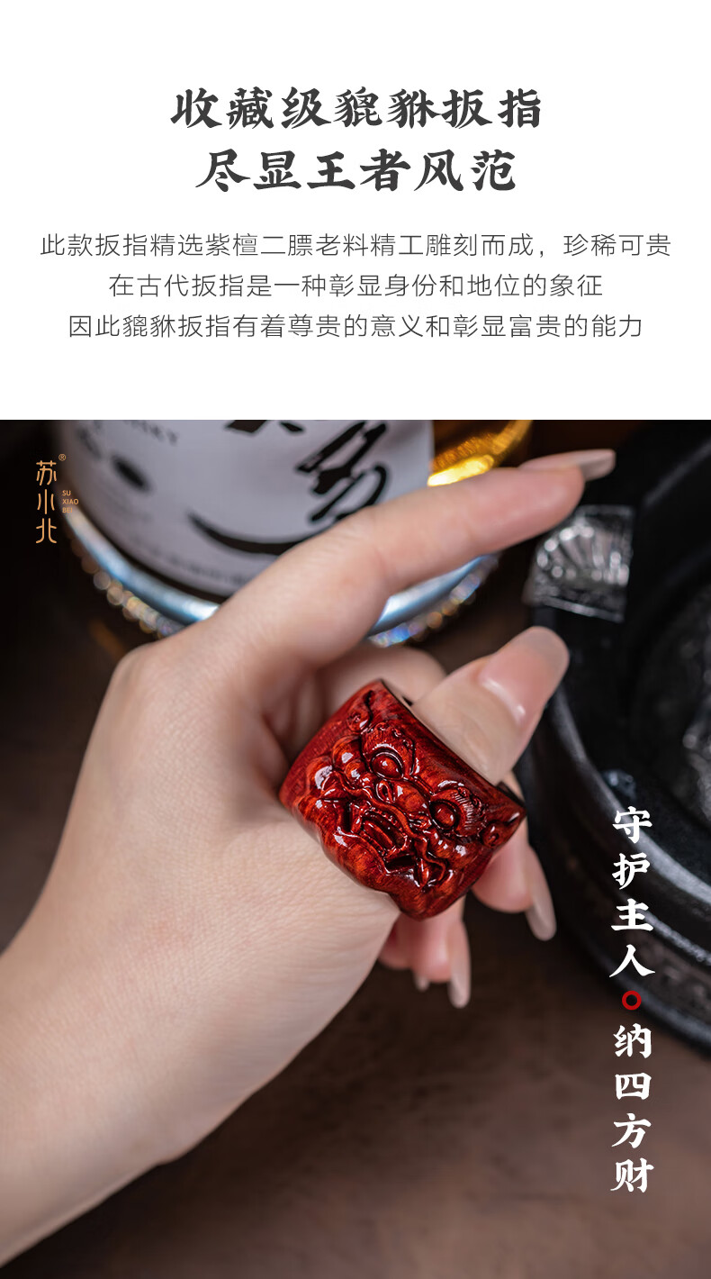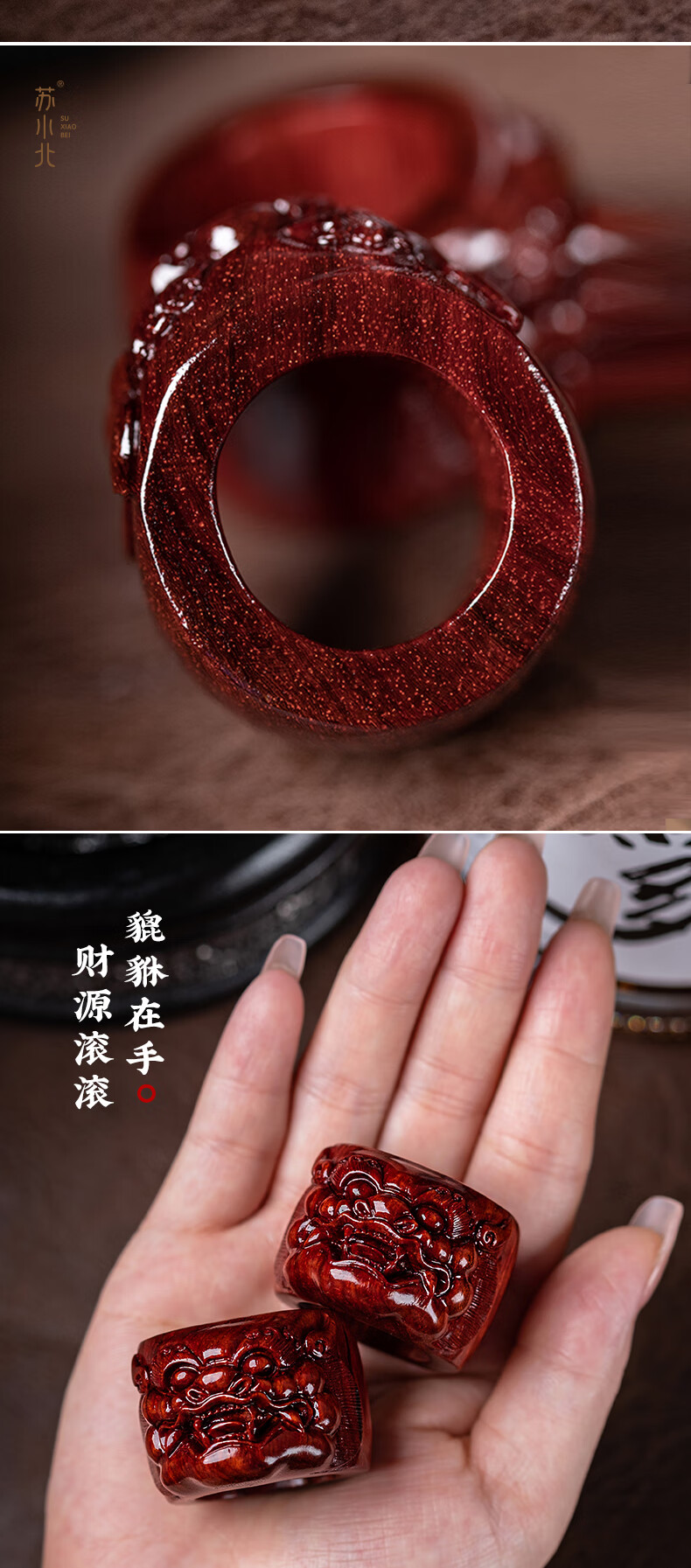 Mu silk Indian small-leaf red sandalwood thumb ring men's Pixiu thumb ring sandalwood mahogany carved handle piece stationery ring color gift Pixiu thumb ring (inner diameter is about 2.2*width 2.6cm