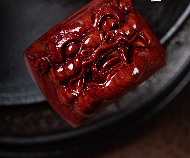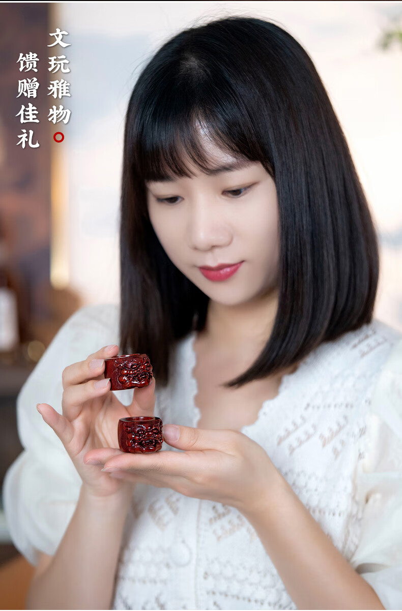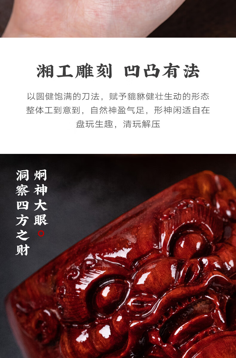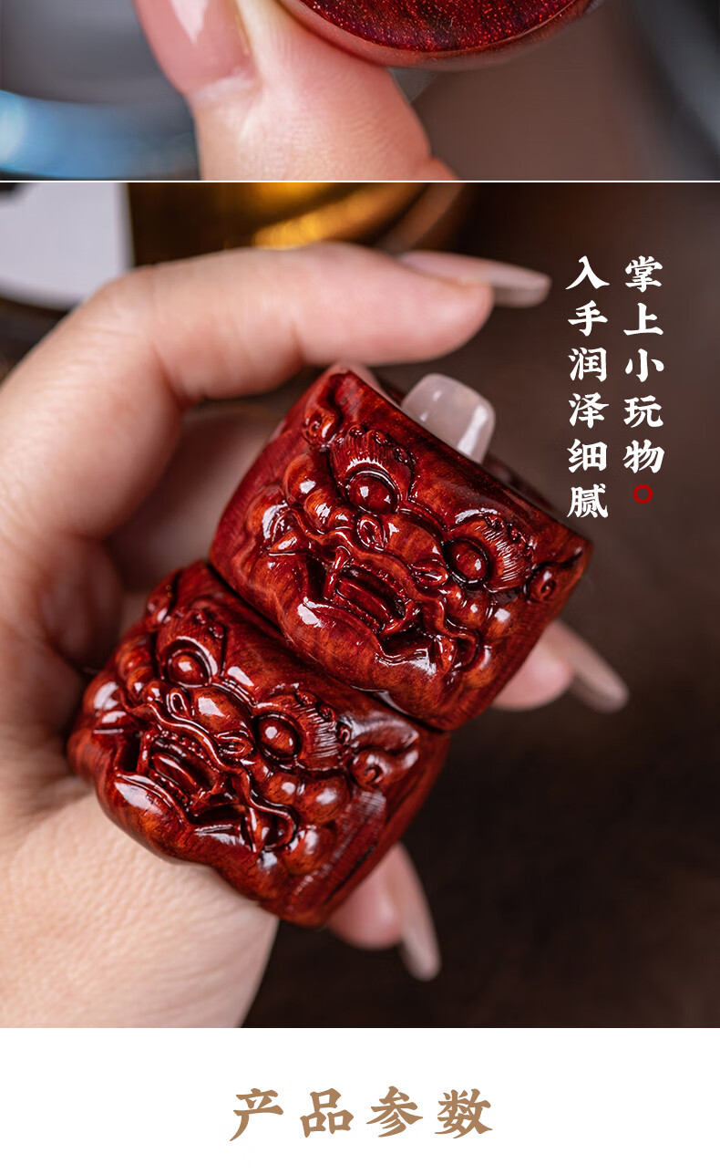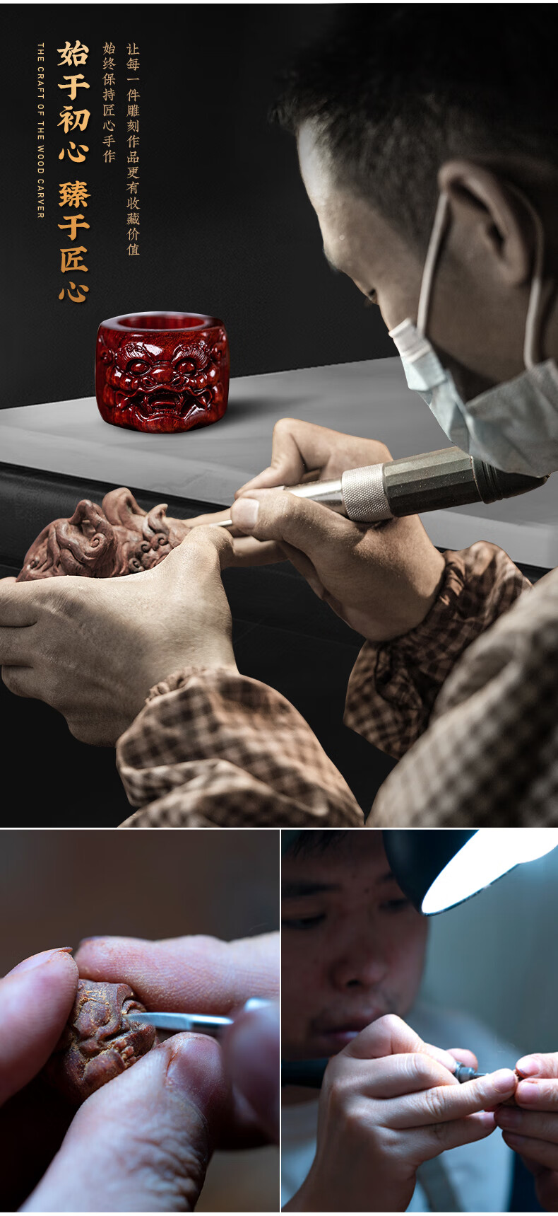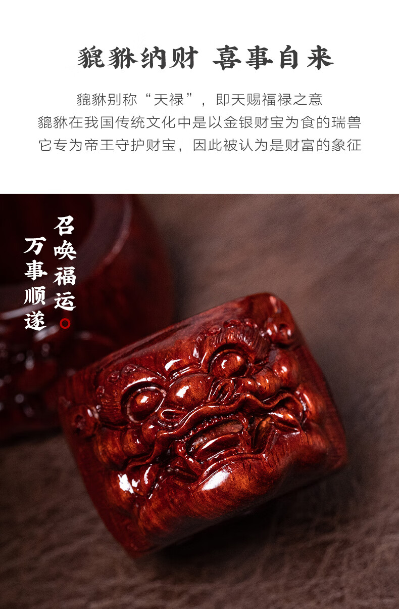 Mu silk Indian small-leaf red sandalwood thumb ring men's Pixiu thumb ring sandalwood mahogany carved handle piece stationery ring color gift Pixiu thumb ring (inner diameter is about 2.2*width 2.6cm
