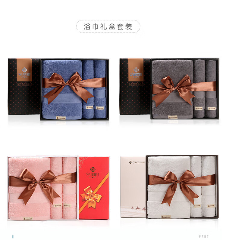 Jie Liya (grace) bath towel gift box three-piece set pure cotton thickened one bath towel and two towels set wedding gift customization 0474 gray one bath towel and two towels business box