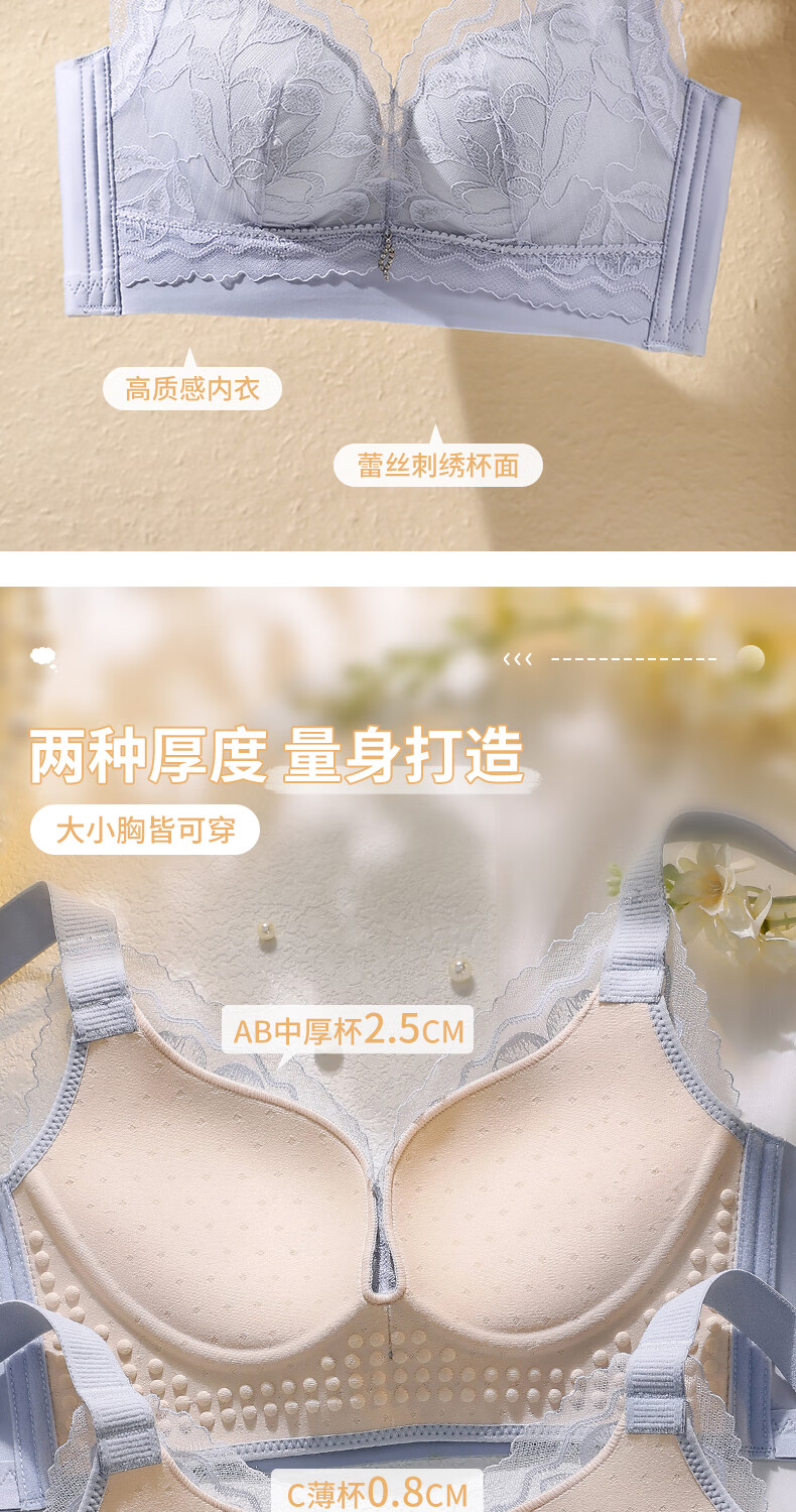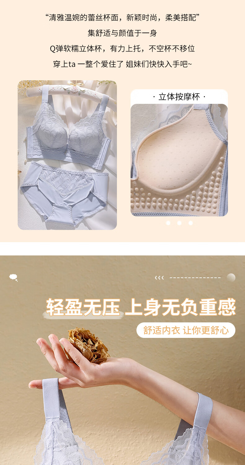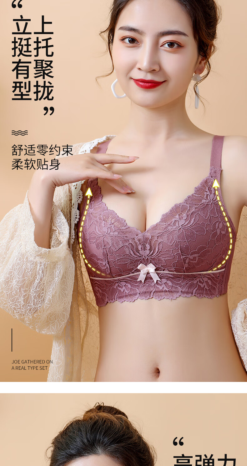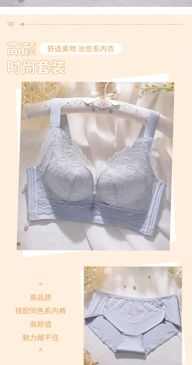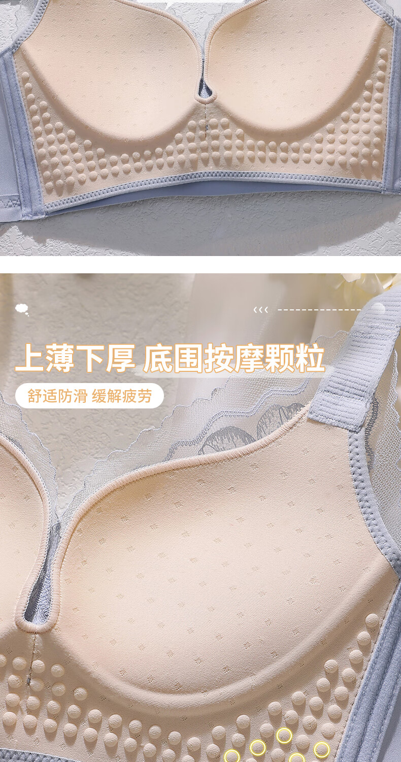 Blue Aegean Sea Wire-free Small Breasts Show Big Four-breasted Push-Up Bra Women's Upper Breast Holding Bra Anti-Sagging Bra Set Purple Set 75A/34A