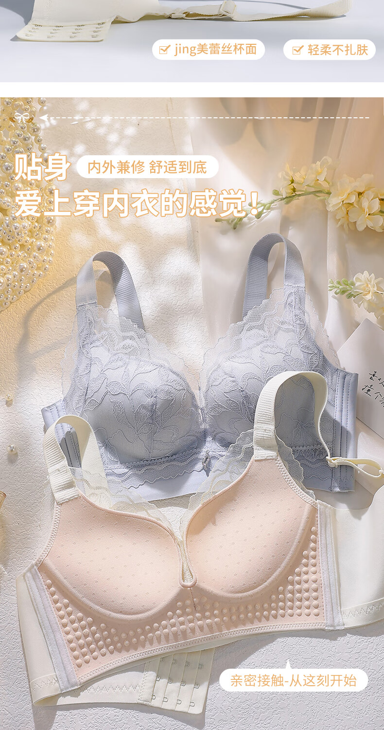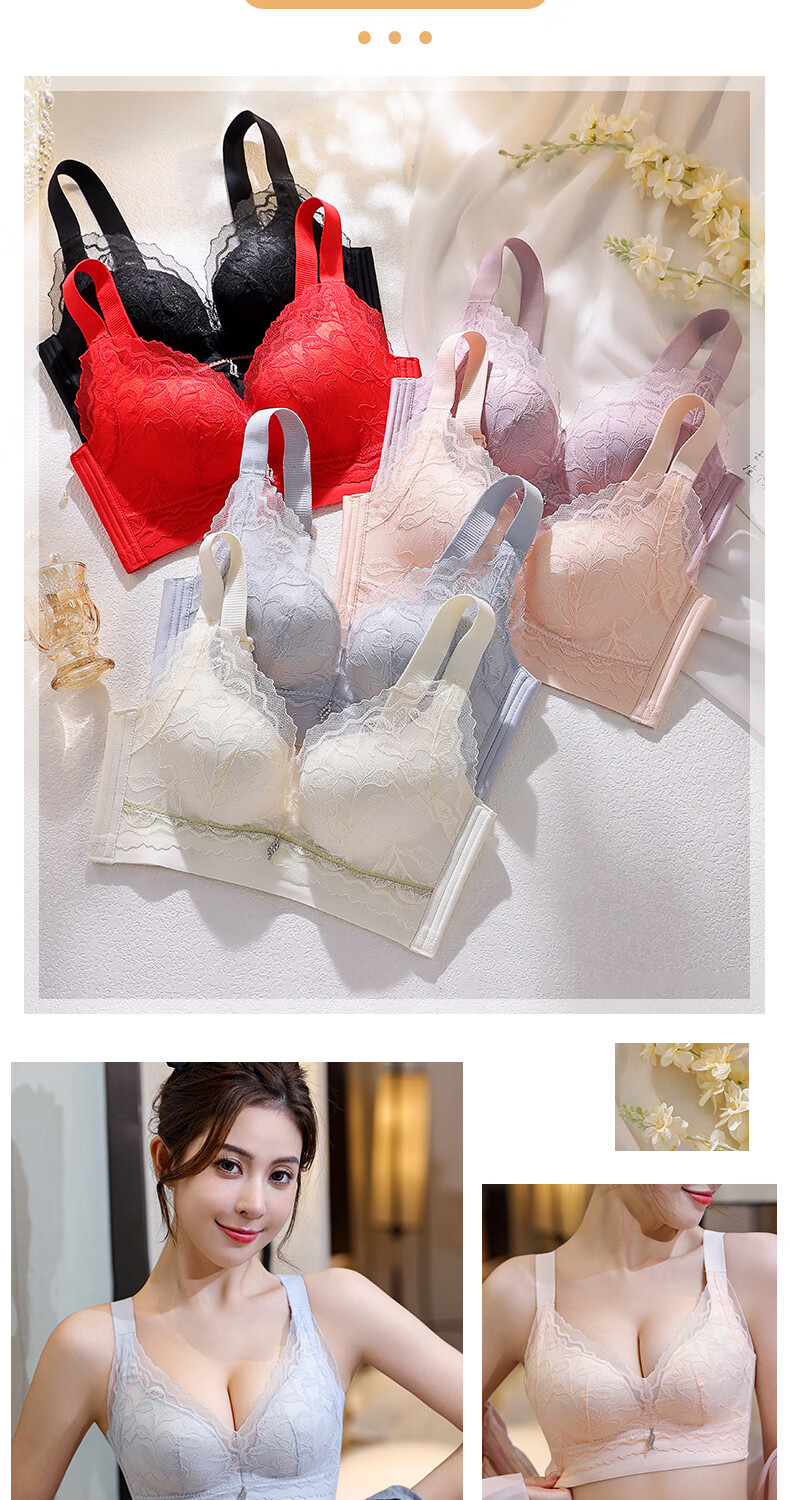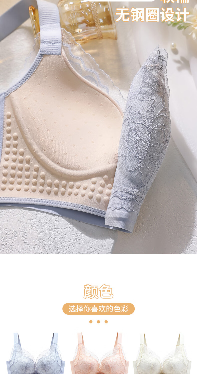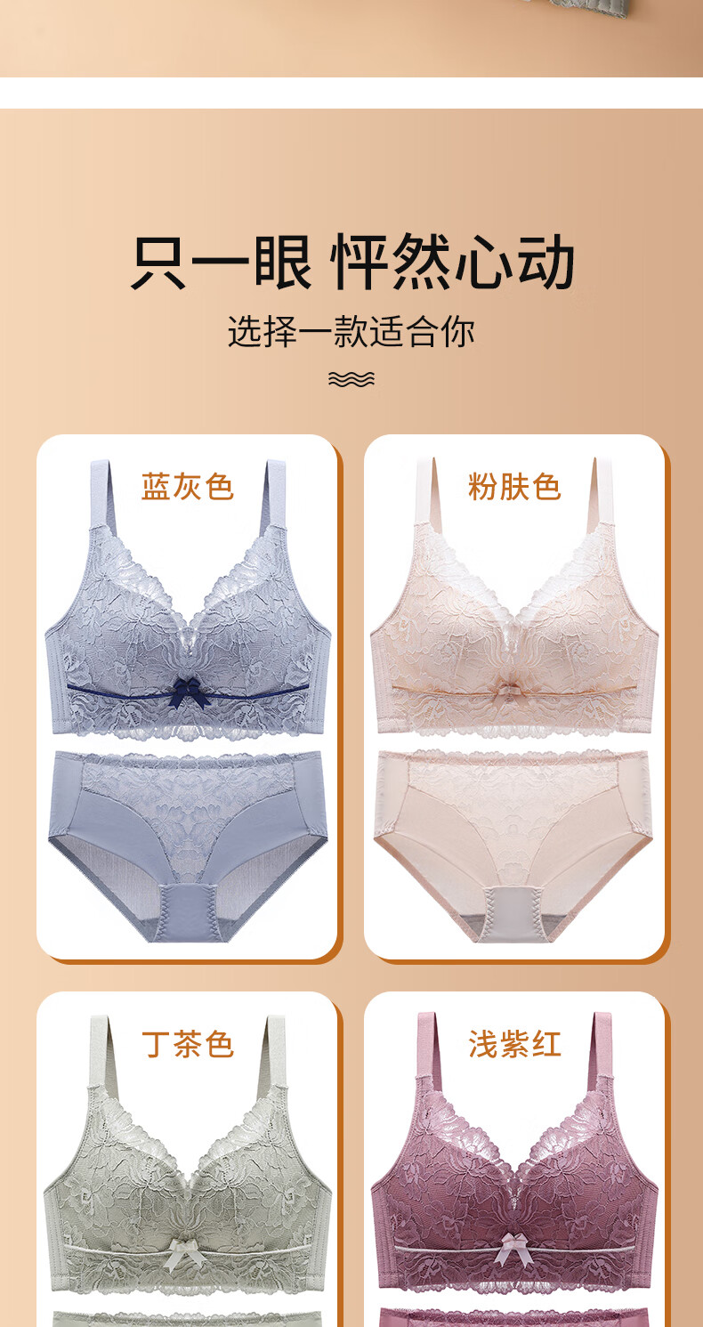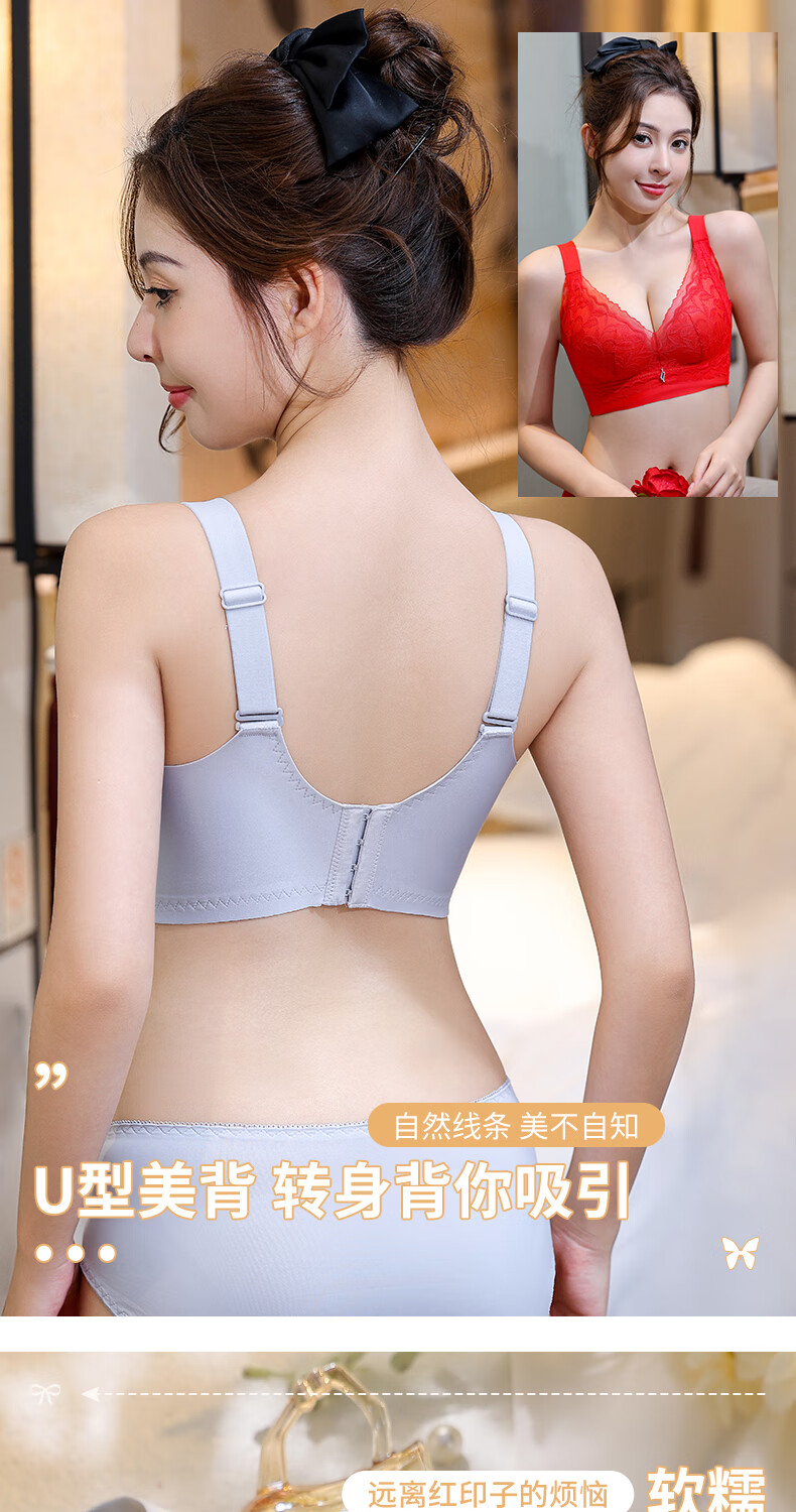 Blue Aegean Sea Wire-free Small Breasts Show Big Four-breasted Push-Up Bra Women's Upper Breast Holding Bra Anti-Sagging Bra Set Purple Set 75A/34A