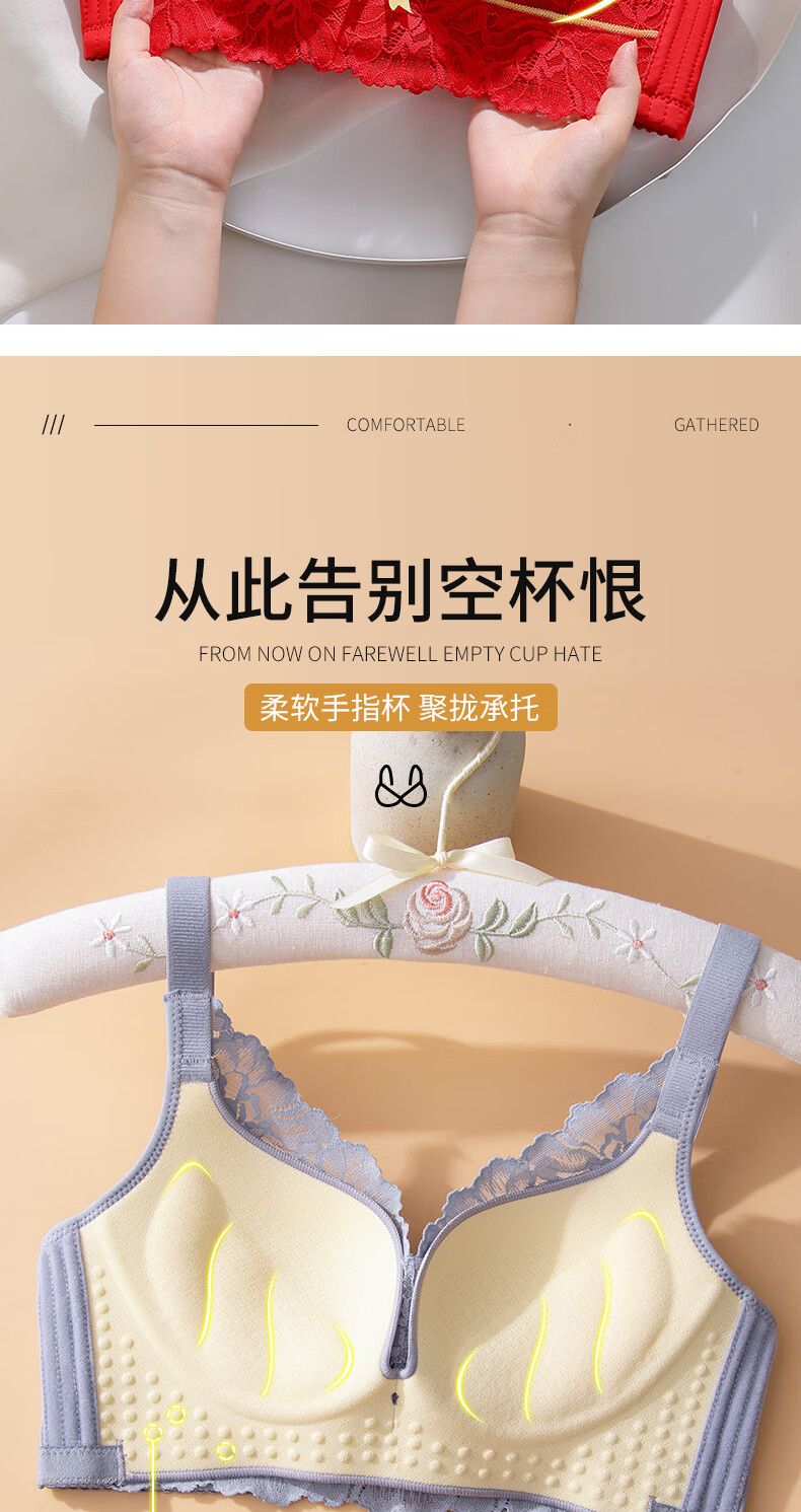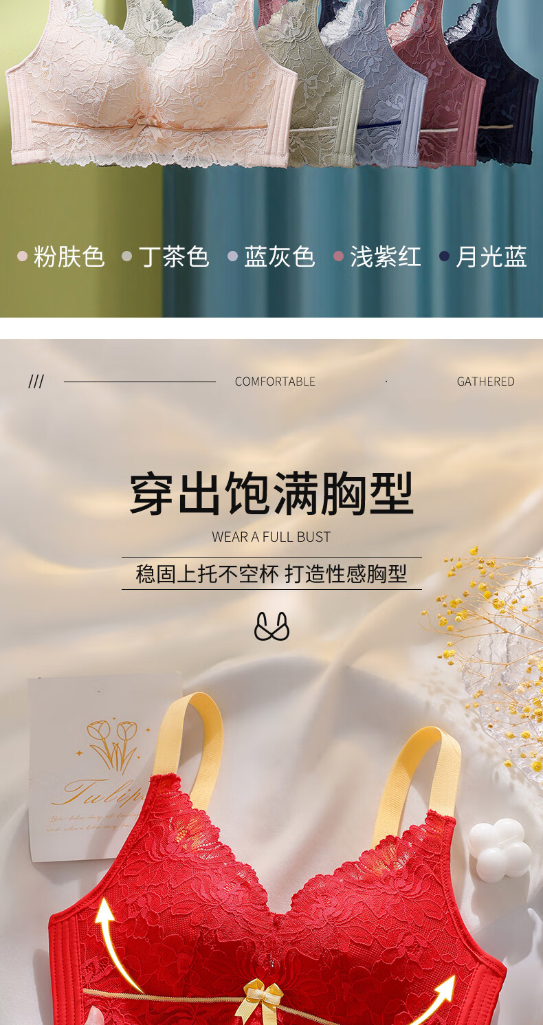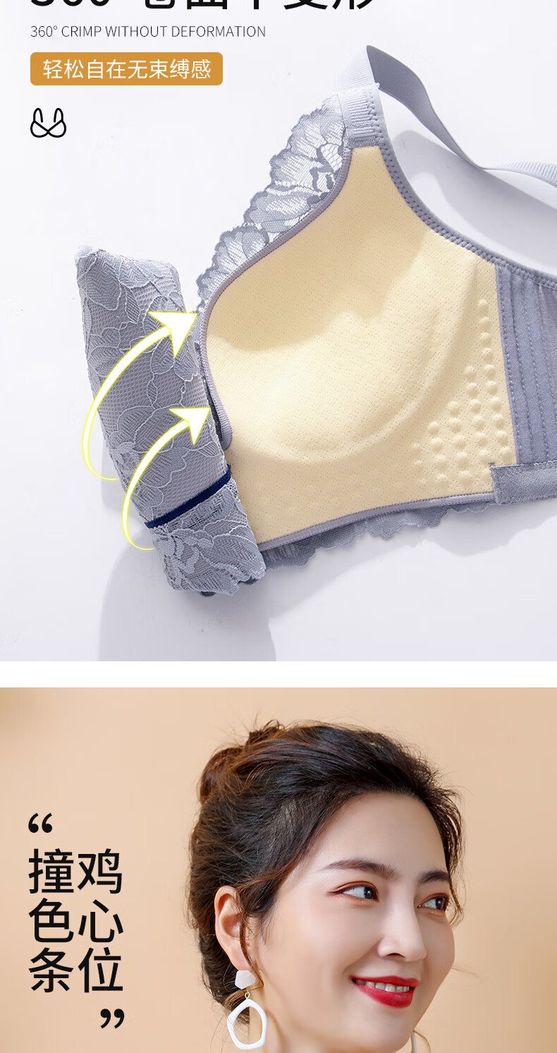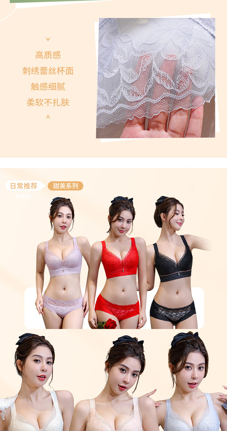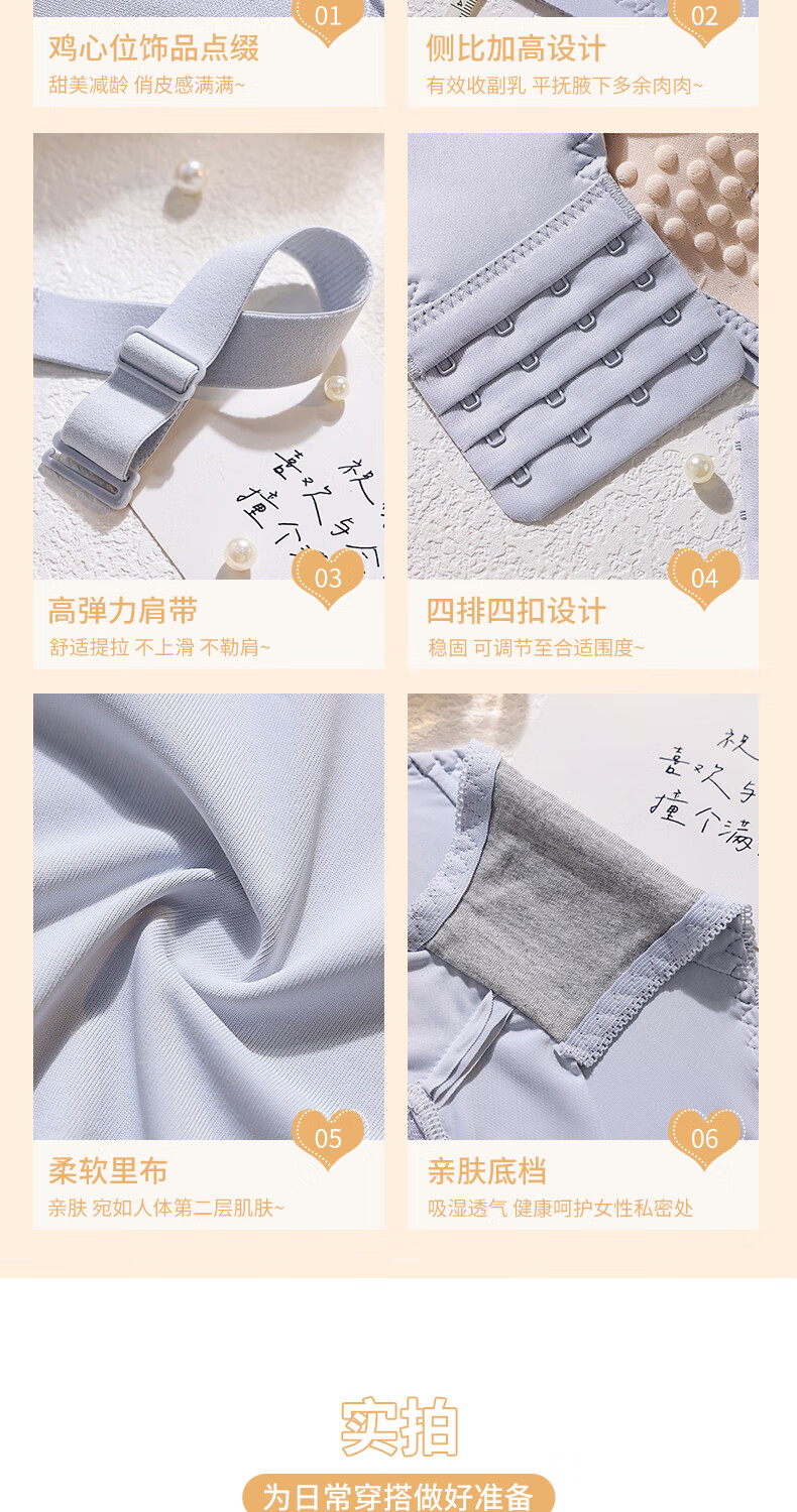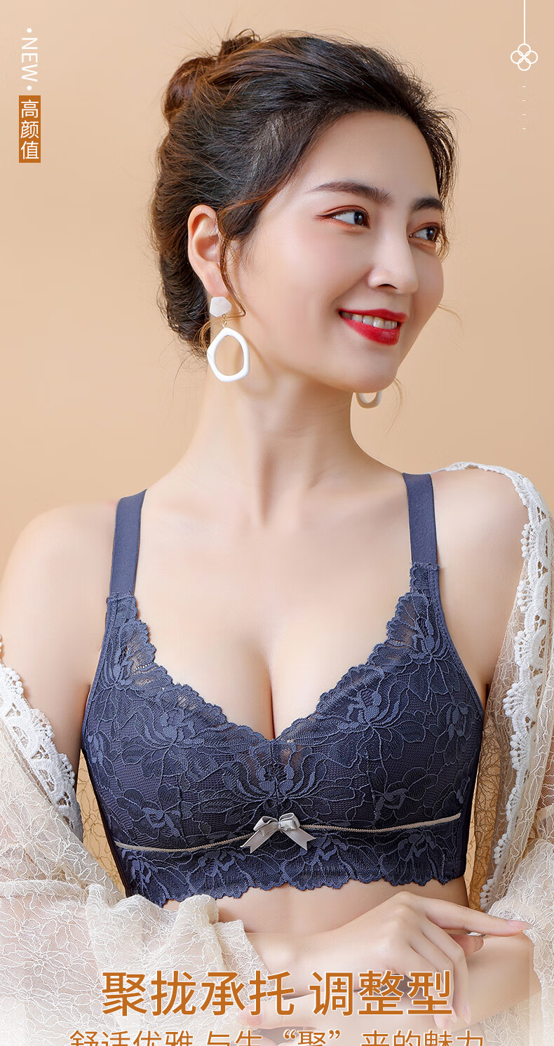 Blue Aegean Sea Wire-free Small Breasts Show Big Four-breasted Push-Up Bra Women's Upper Breast Holding Bra Anti-Sagging Bra Set Purple Set 75A/34A