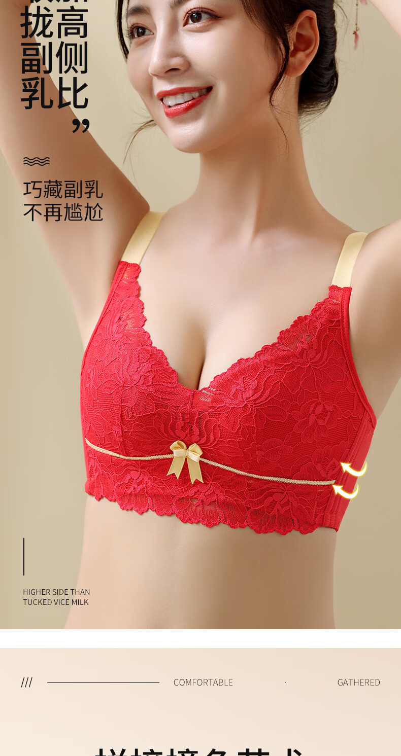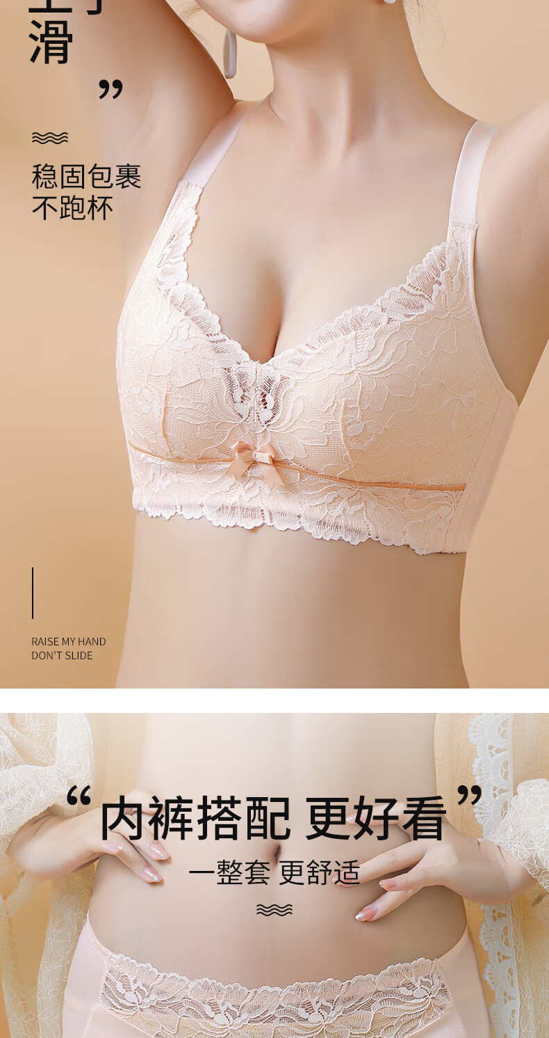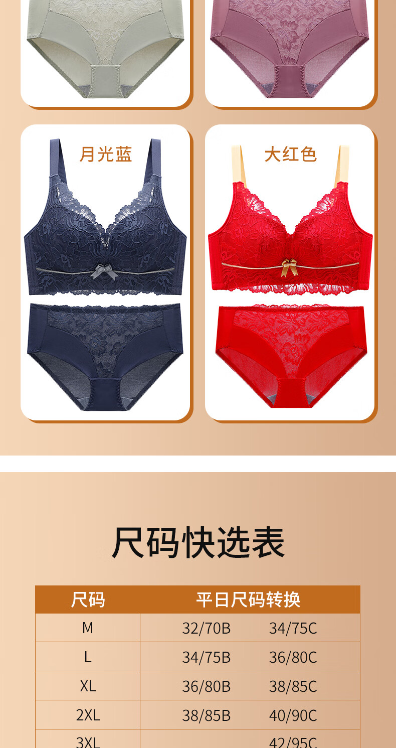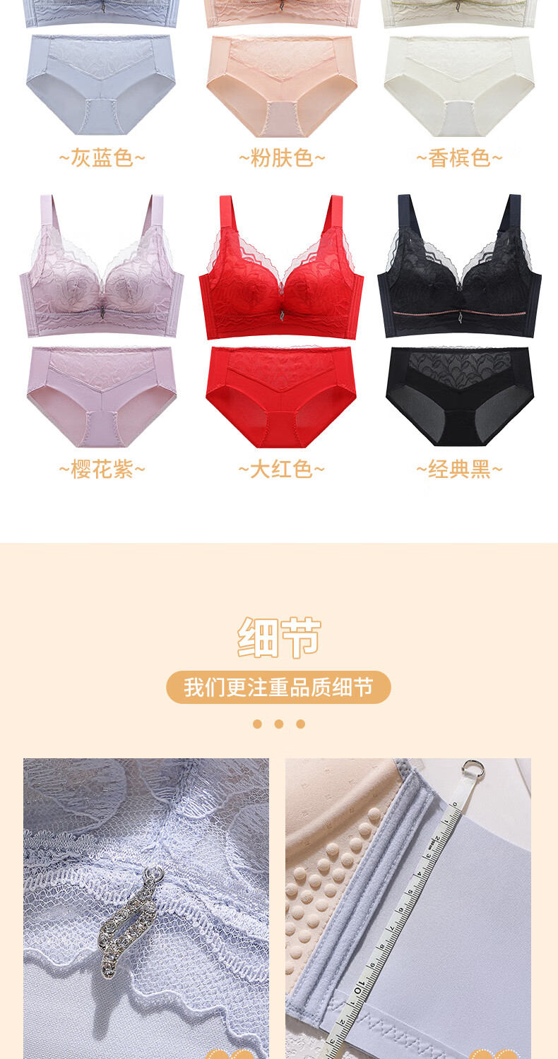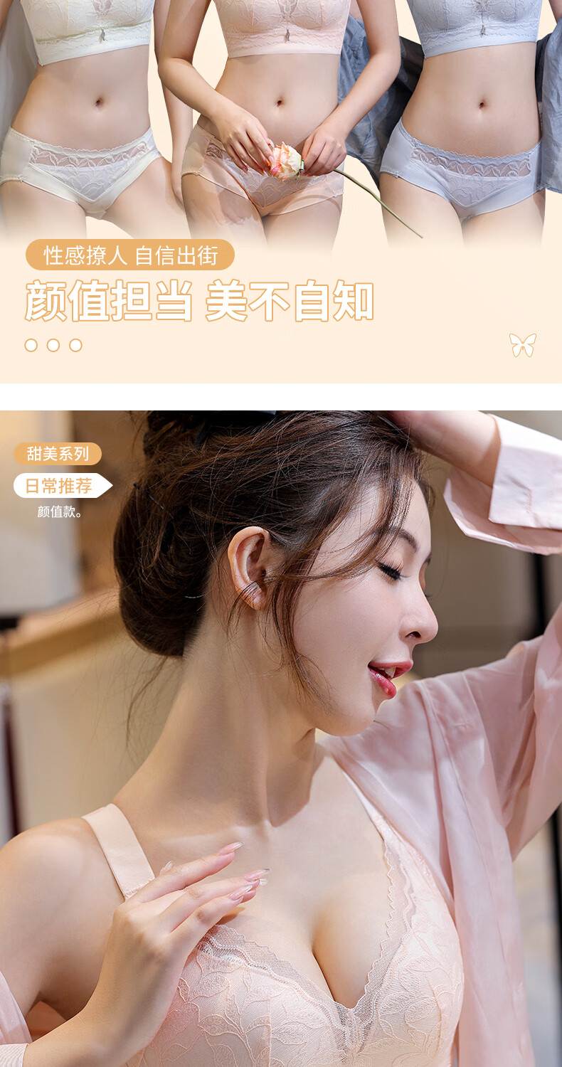 Blue Aegean Sea Wire-free Small Breasts Show Big Four-breasted Push-Up Bra Women's Upper Breast Holding Bra Anti-Sagging Bra Set Purple Set 75A/34A