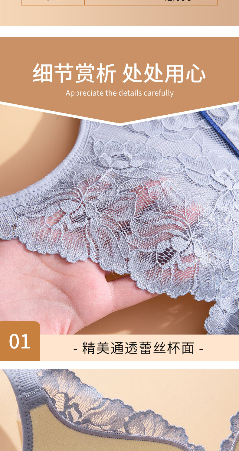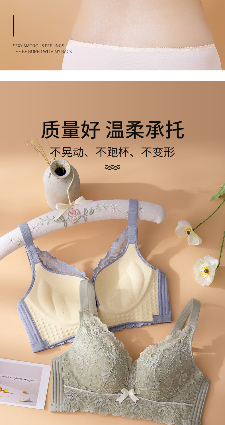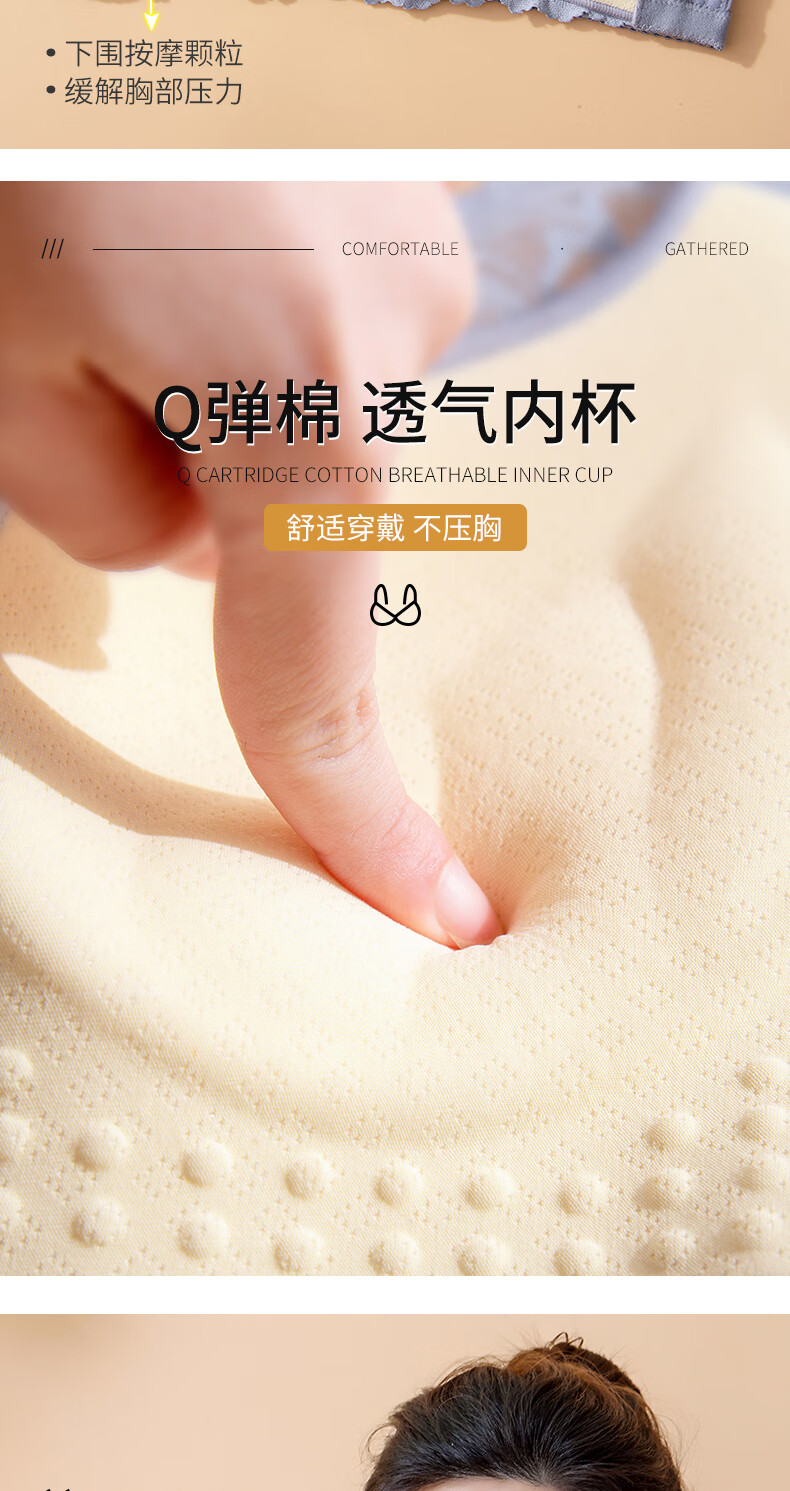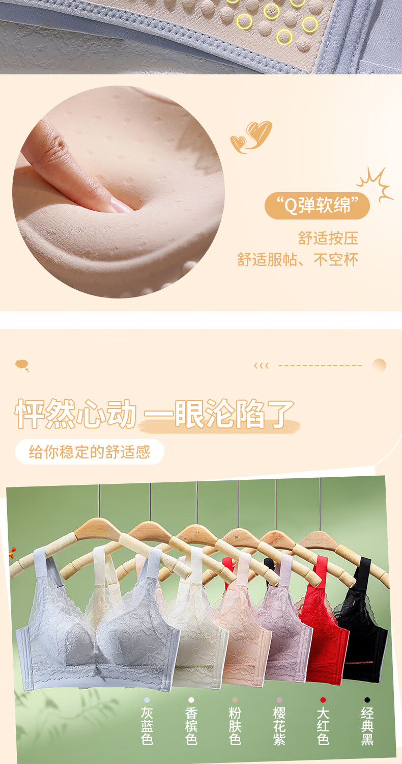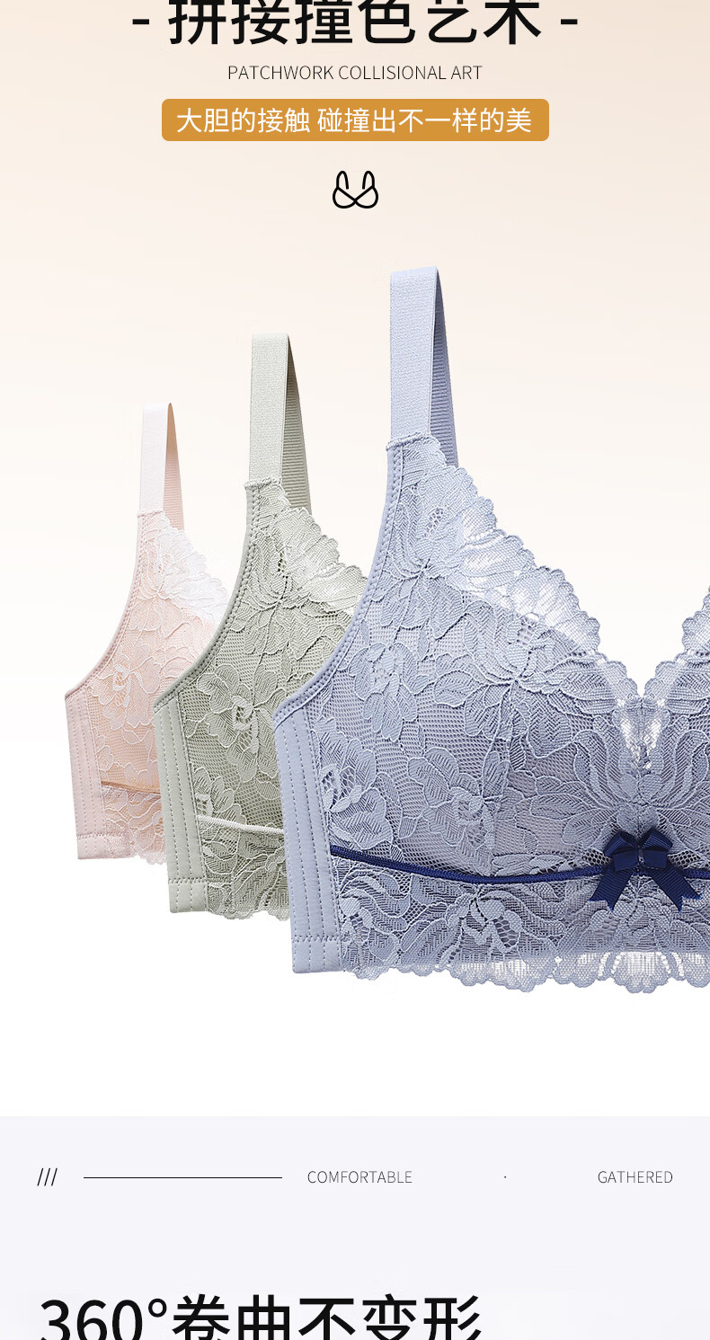 Blue Aegean Sea Wire-free Small Breasts Show Big Four-breasted Push-Up Bra Women's Upper Breast Holding Bra Anti-Sagging Bra Set Purple Set 75A/34A